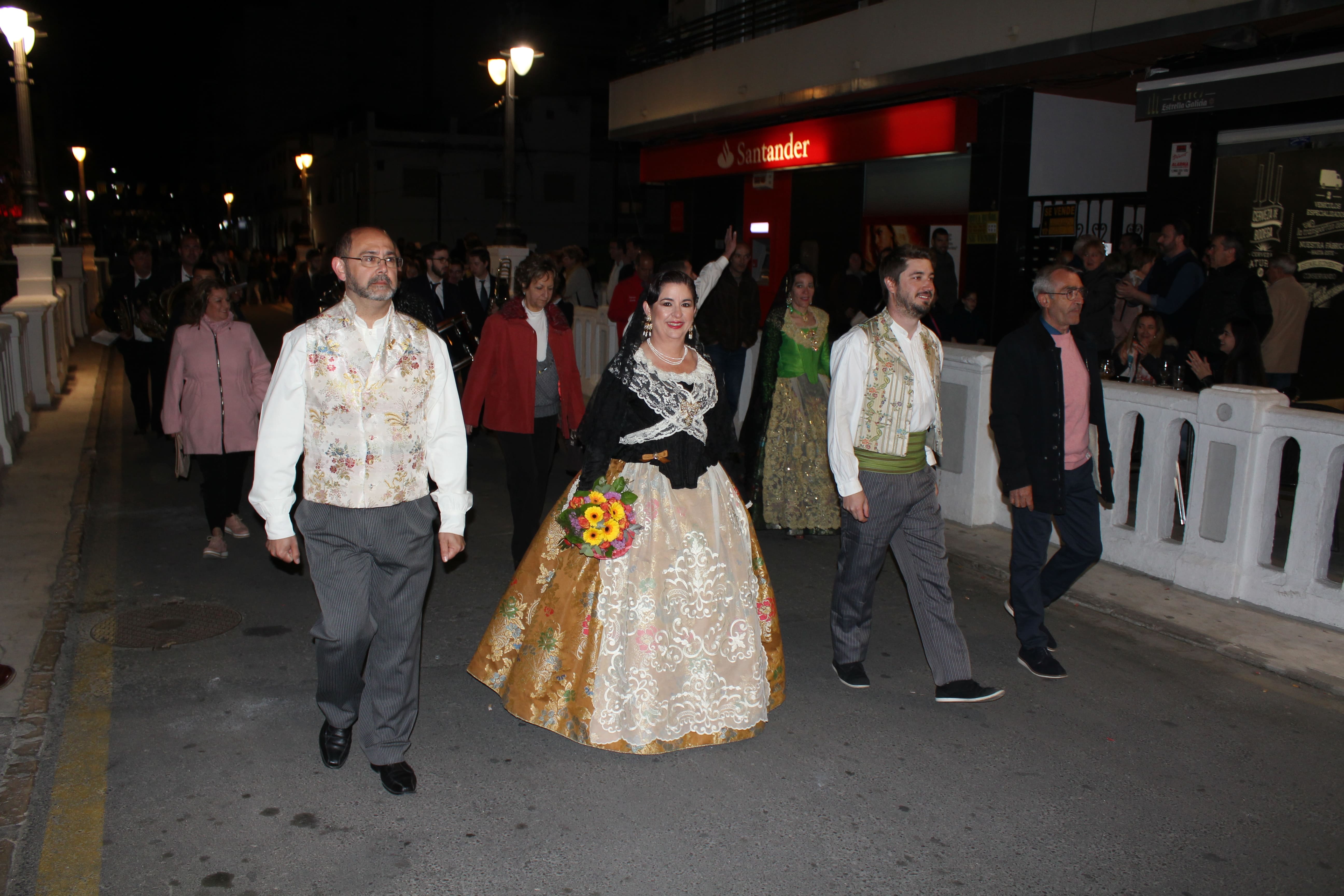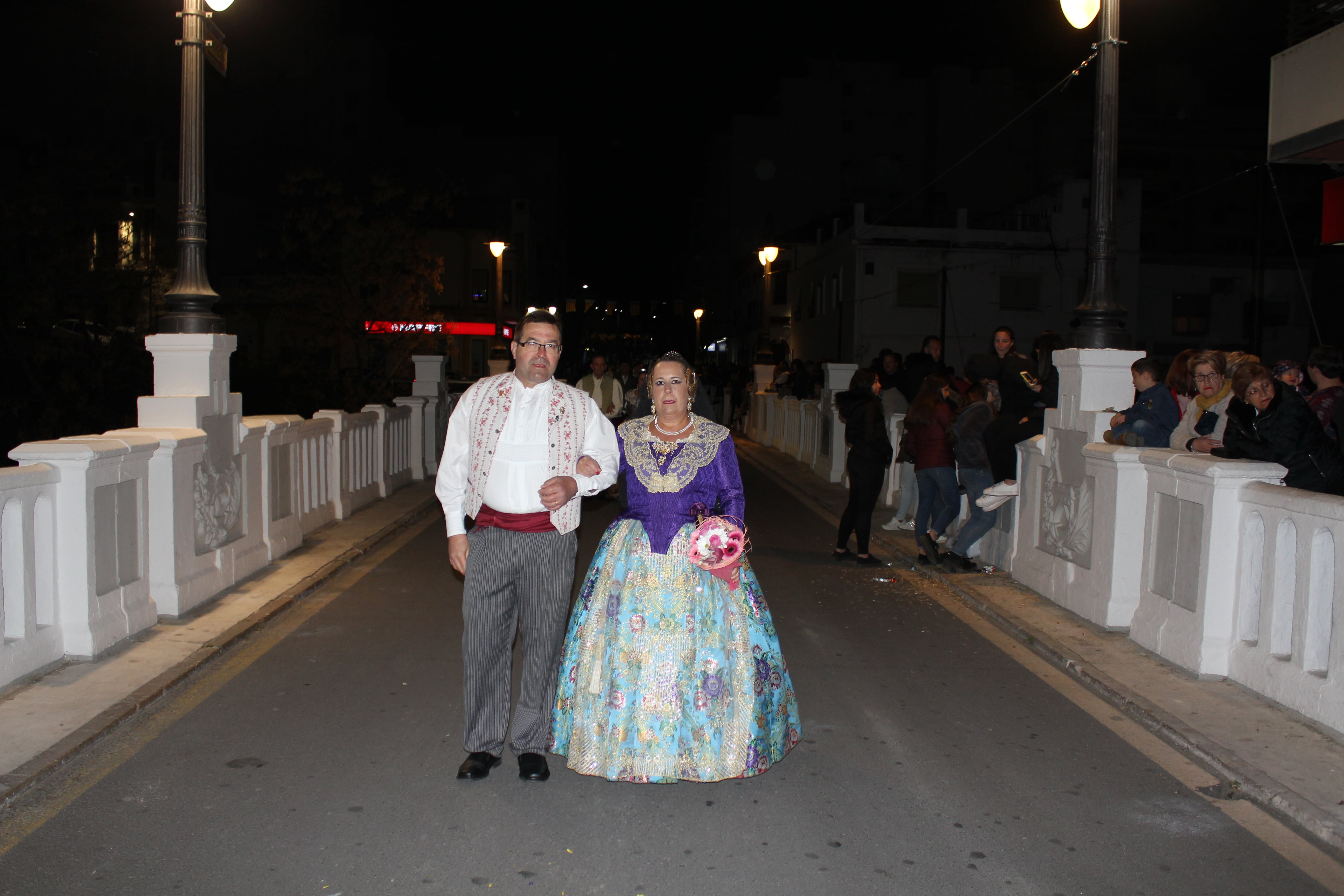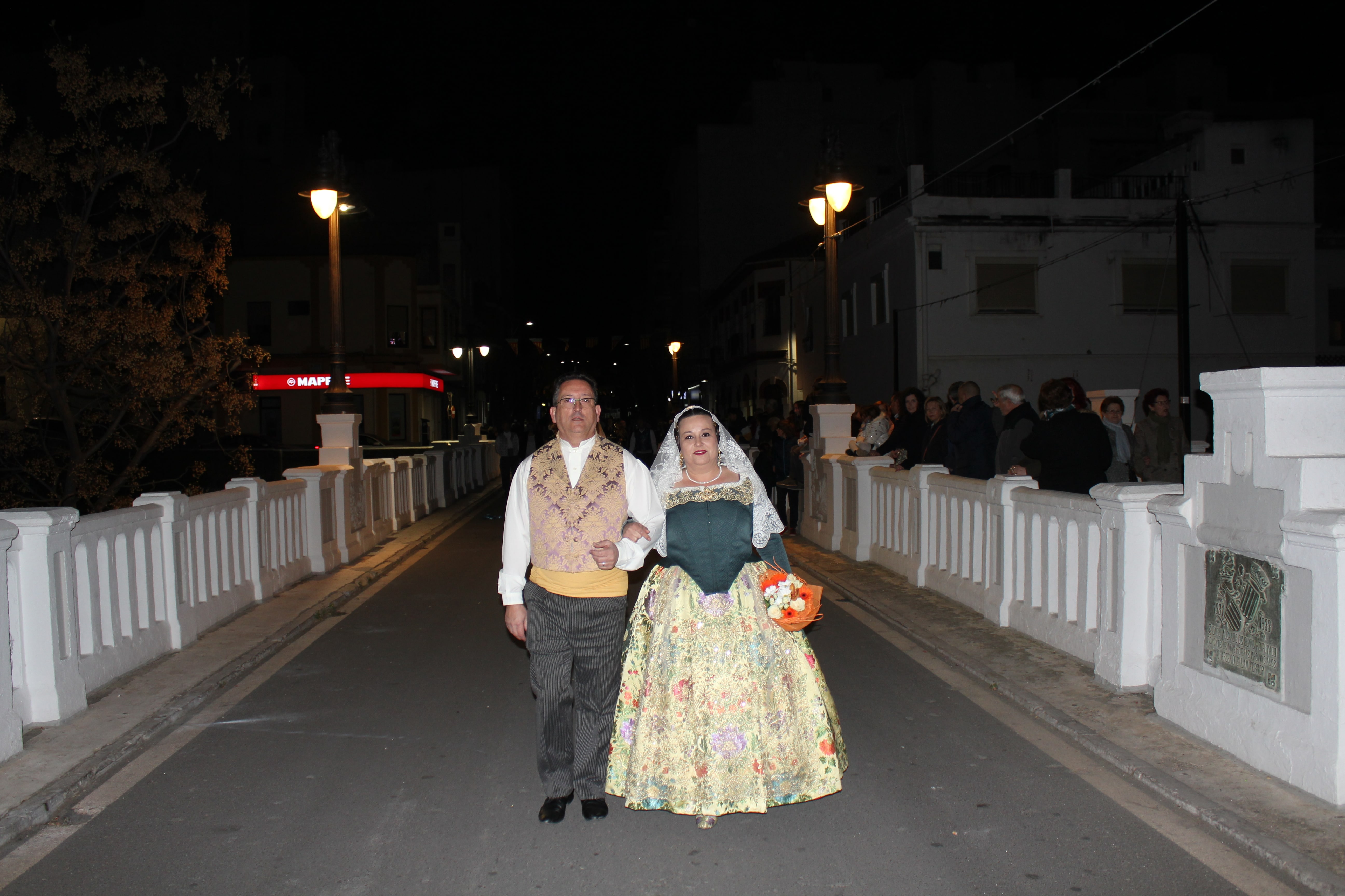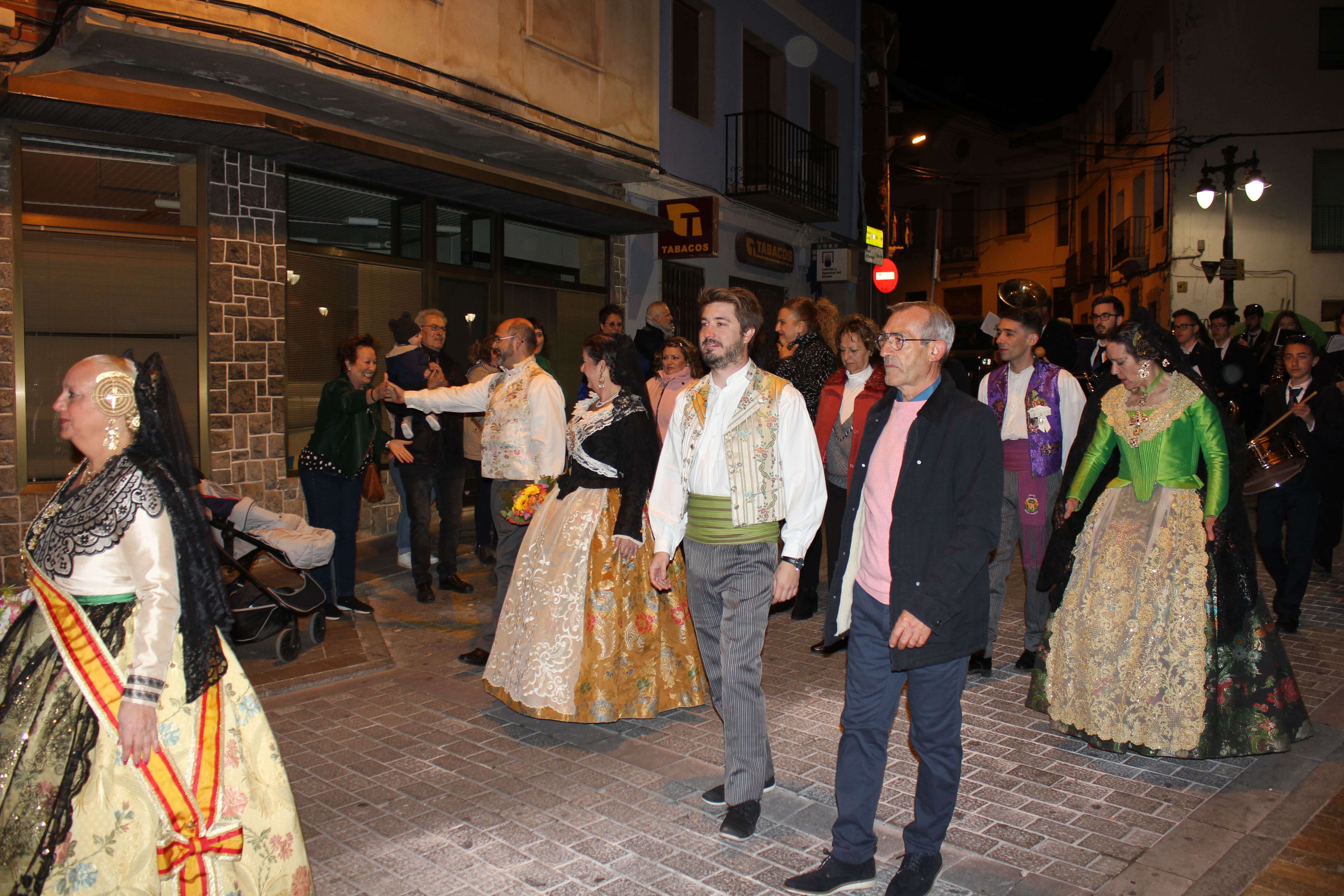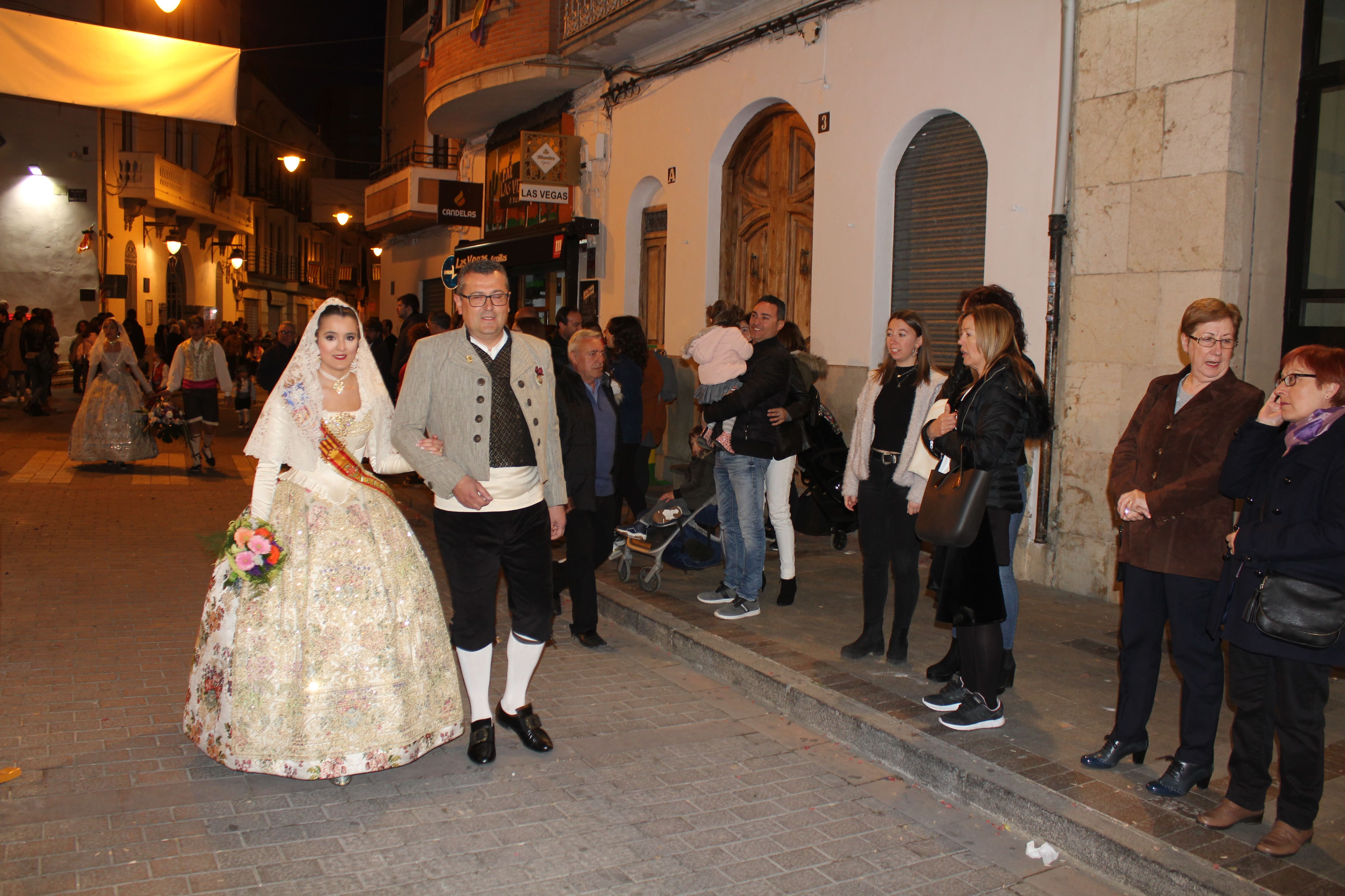 Por cierto, cabe destacar que en la ofrenda de este año se vistió de fallera la alcaldesa de Buñol, Juncal Carrascosa, que estuvo acompañada, por el primer teniente de alcalde de la localidad, Rafael Pérez, que también se vistió para la ocasión.