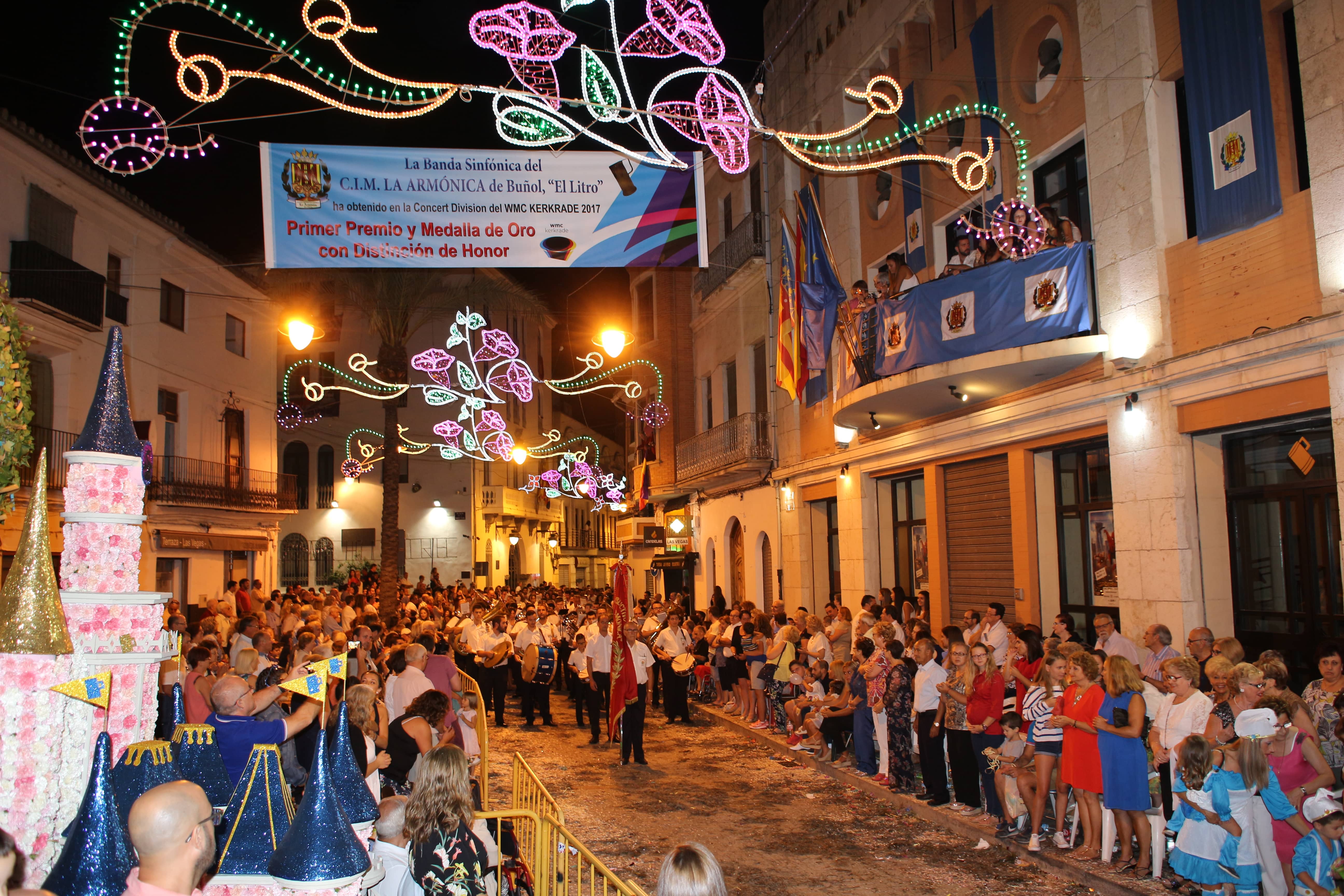 El día grande de «La Armónica» de Buñol se completó ayer sábado por la tarde con la gran cabalgata, encabezada por las tradicionales y vistosas «filás» moras. Desde los máss pequeños, hasta los más mayores fueron defilando con vestimentas expectaculares y a ritmo de timbales por el recorrido habitual de las cabalgatas. Todas las «filás», con sus respectivos capitanes levantaron el aplauso del numeroso público que se congregaba a uno y otro lado de las aceras.