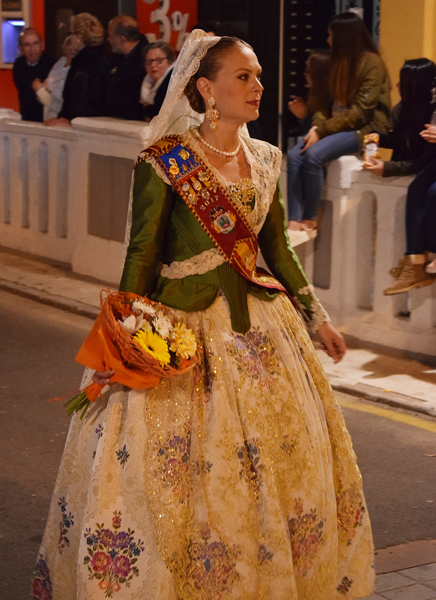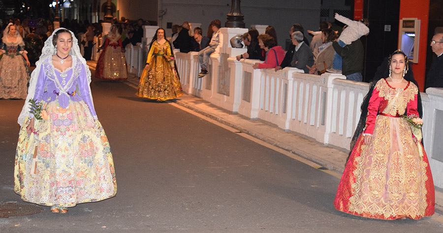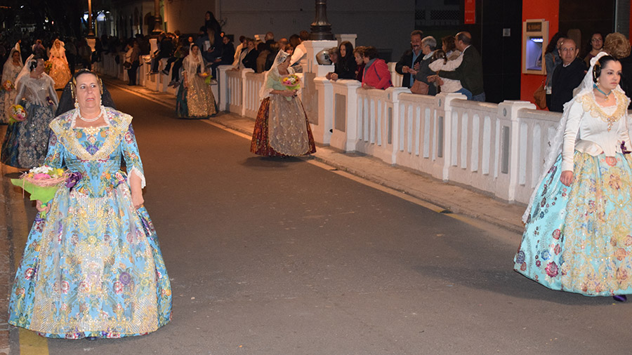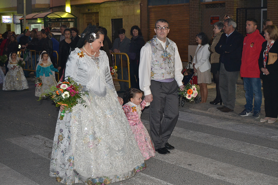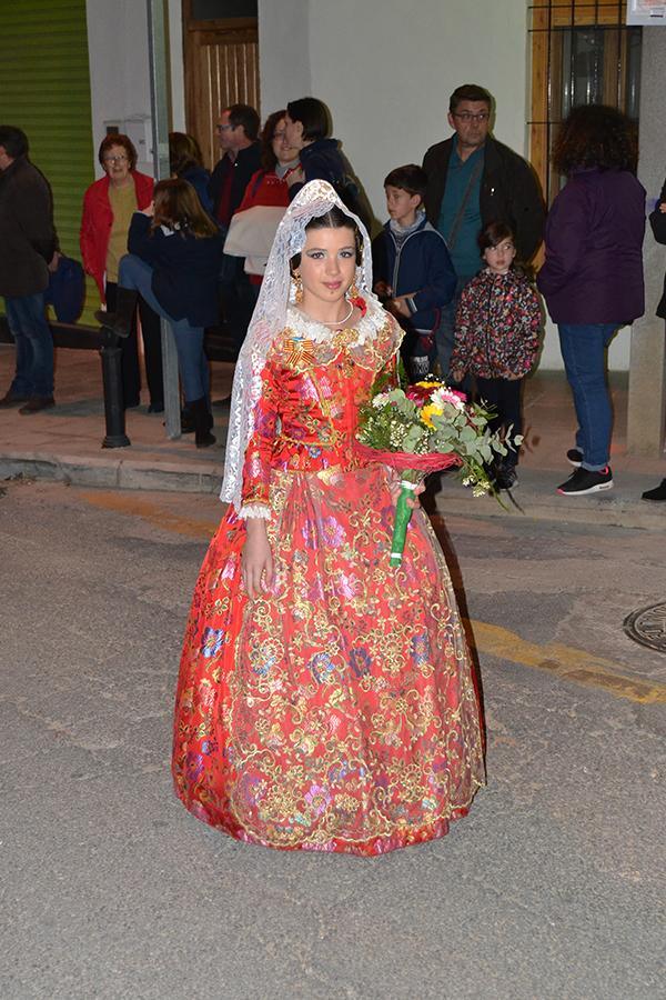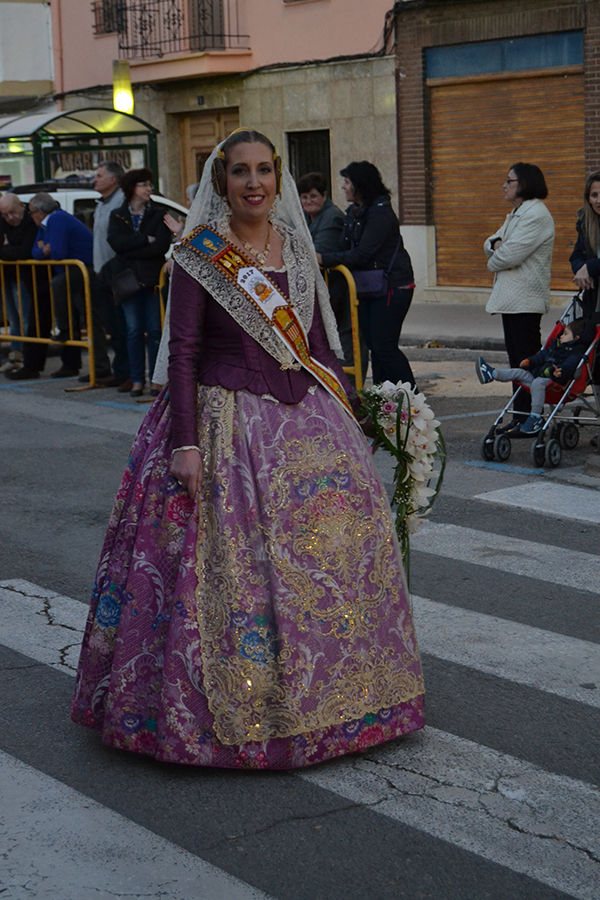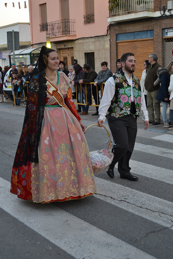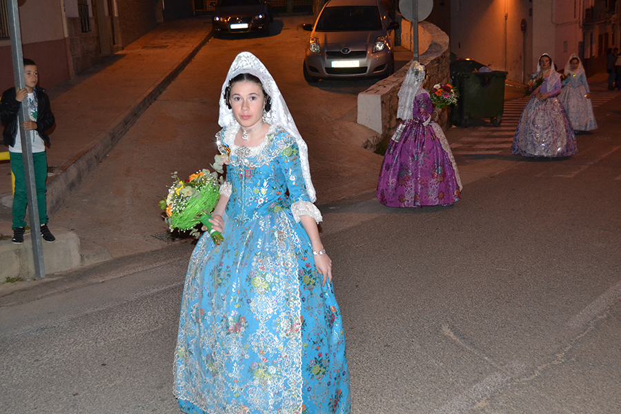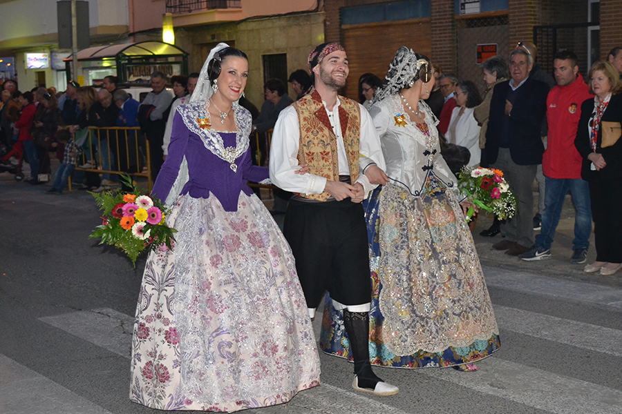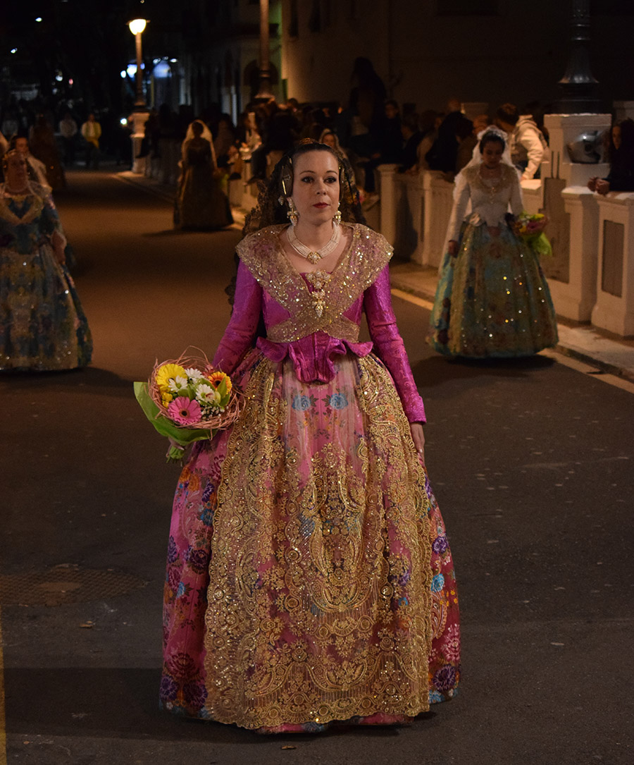 Las Fallas de Buñol han celebrado uno de los actos centrales más emotivos de las fiestas josefinas, la Ofrenda. Este año el acto ha comenzado en la Plaza Rivero,desde donde las comisiones de El Prado y Las Ventas, acompañados de la Fallera Mayor de la Junta Local, Sonia Llopis, que ha encabezado el desfile, han ofrendado a la Virgen de los Dolores. El “puente de la Venta”, así como la Calle Condes de Buñol estaban abarrotadas para observar a decenas de falleros y falleras, en una de las tardes más especiales de las fiestas Josefinas. Nuria Barbancho, llena de emoción depositó su ramo y más tarde se hizo la foto de familia con su comisión de El Prado. Igualmente emocionadas se mostraron, Aurora Medard e Isabel Guillamón de la comisión de Las Ventas, que repitieron instantánea con toda su familia fallera.