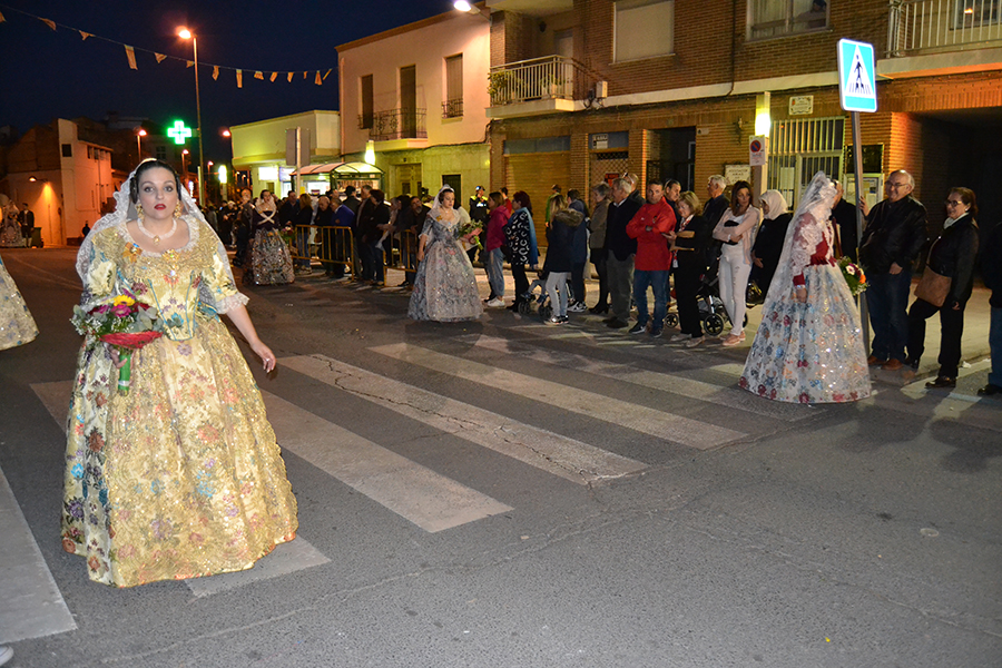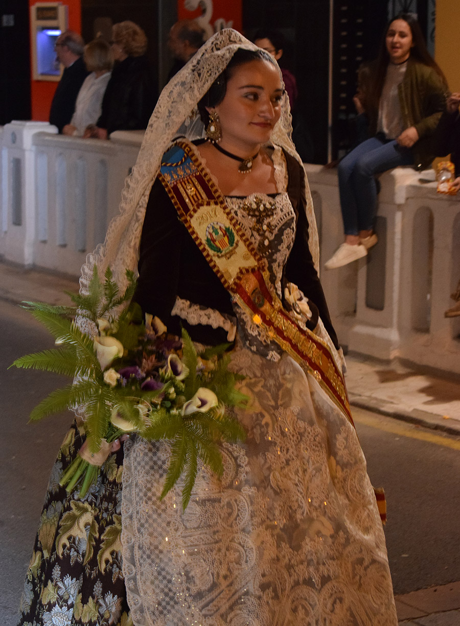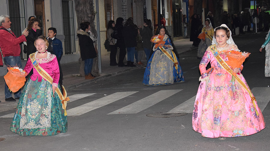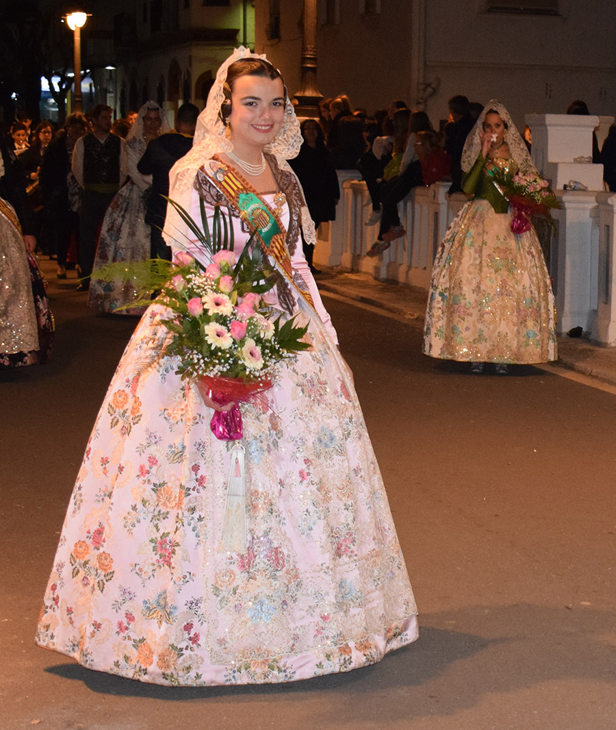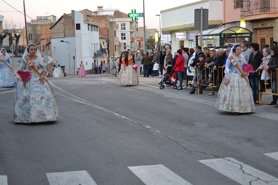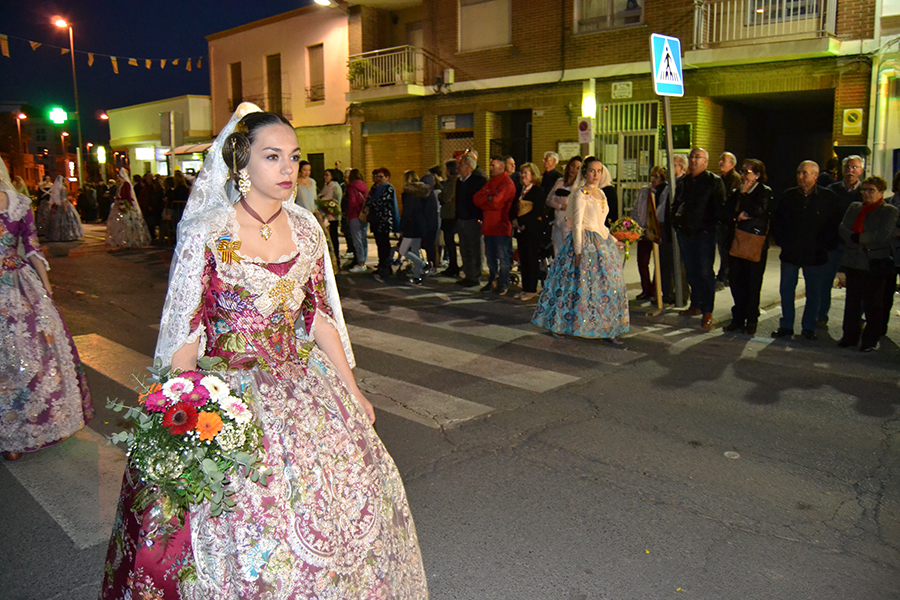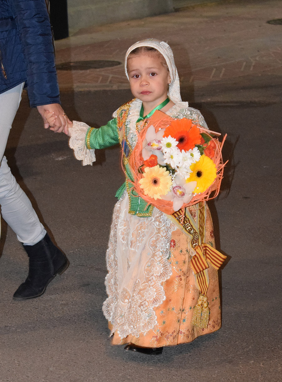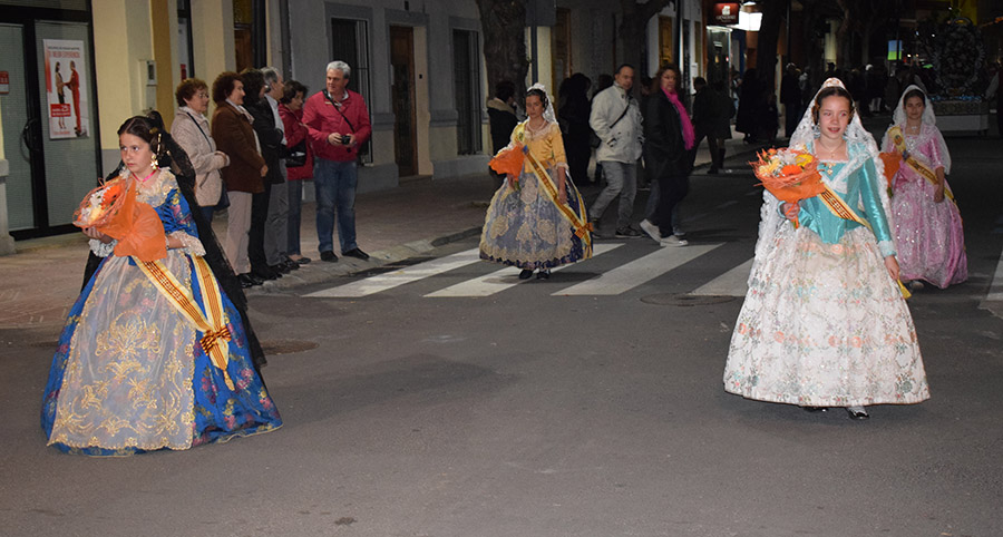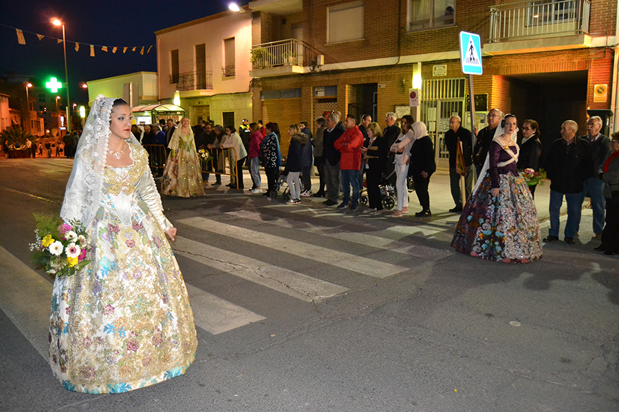 Las Fallas de Buñol han celebrado uno de los actos centrales más emotivos de las fiestas josefinas, la Ofrenda. Este año el acto ha comenzado en la Plaza Rivero,desde donde las comisiones de El Prado y Las Ventas, acompañados de la Fallera Mayor de la Junta Local, Sonia Llopis, que ha encabezado el desfile, han ofrendado a la Virgen de los Dolores. El “puente de la Venta”, así como la Calle Condes de Buñol estaban abarrotadas para observar a decenas de falleros y falleras, en una de las tardes más especiales de las fiestas Josefinas. Nuria Barbancho, llena de emoción depositó su ramo y más tarde se hizo la foto de familia con su comisión de El Prado. Igualmente emocionadas se mostraron, Aurora Medard e Isabel Guillamón de la comisión de Las Ventas, que repitieron instantánea con toda su familia fallera.