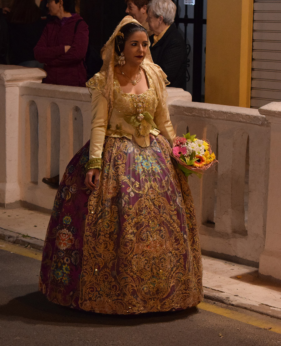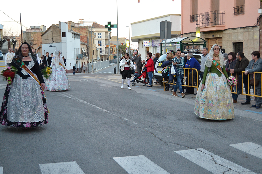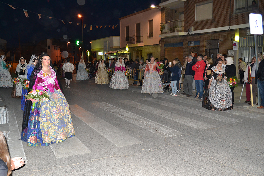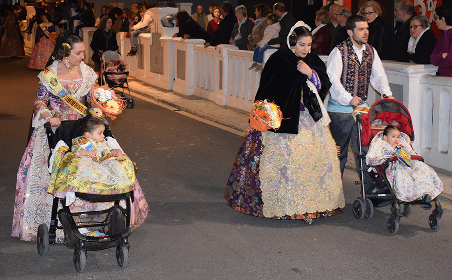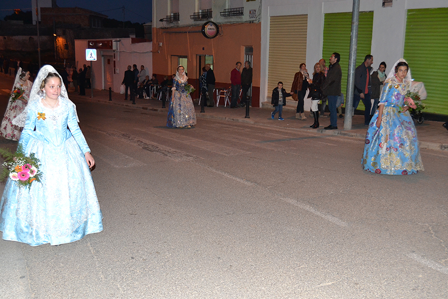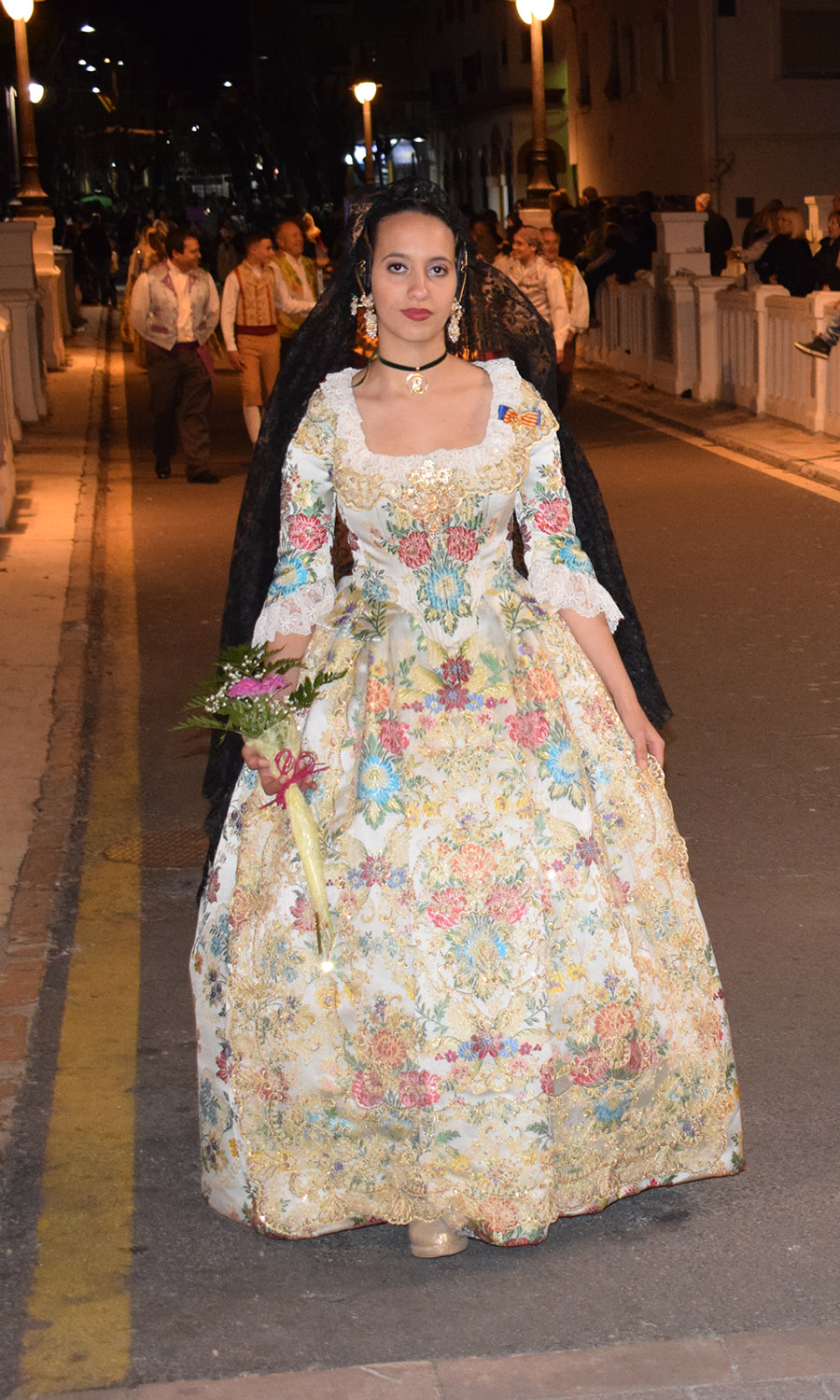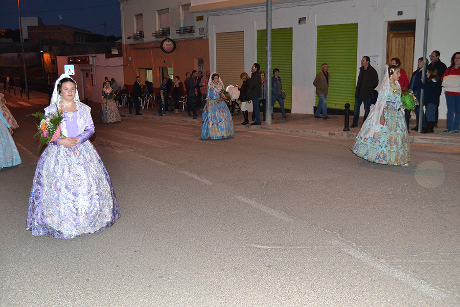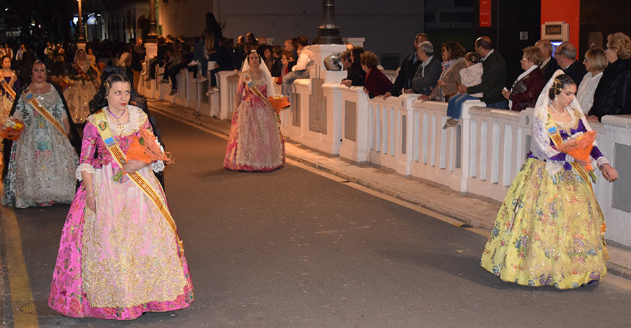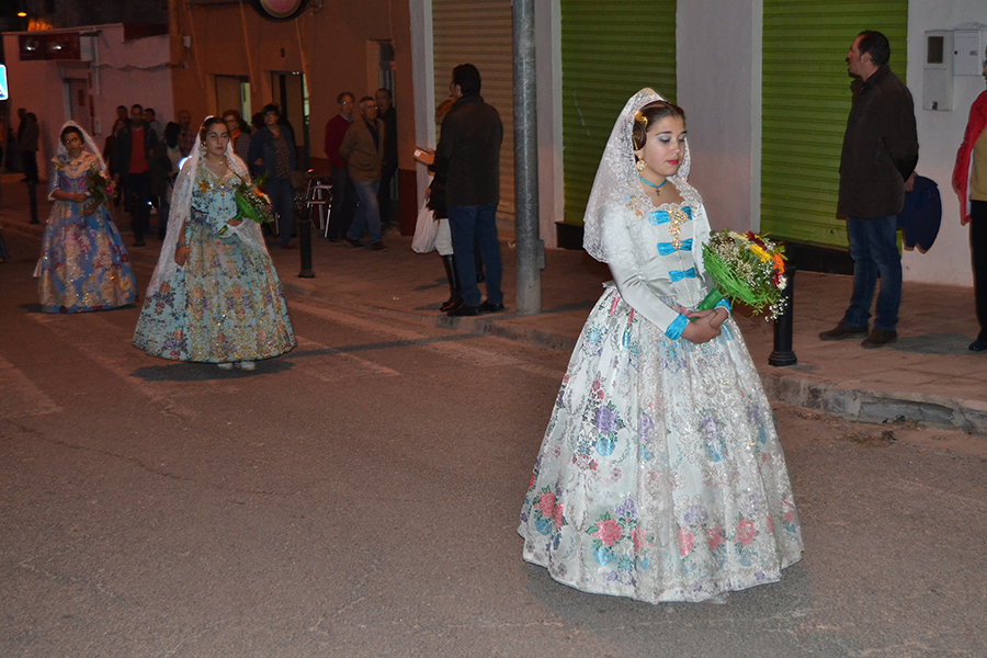 Las Fallas de Buñol han celebrado uno de los actos centrales más emotivos de las fiestas josefinas, la Ofrenda. Este año el acto ha comenzado en la Plaza Rivero,desde donde las comisiones de El Prado y Las Ventas, acompañados de la Fallera Mayor de la Junta Local, Sonia Llopis, que ha encabezado el desfile, han ofrendado a la Virgen de los Dolores. El “puente de la Venta”, así como la Calle Condes de Buñol estaban abarrotadas para observar a decenas de falleros y falleras, en una de las tardes más especiales de las fiestas Josefinas. Nuria Barbancho, llena de emoción depositó su ramo y más tarde se hizo la foto de familia con su comisión de El Prado. Igualmente emocionadas se mostraron, Aurora Medard e Isabel Guillamón de la comisión de Las Ventas, que repitieron instantánea con toda su familia fallera.