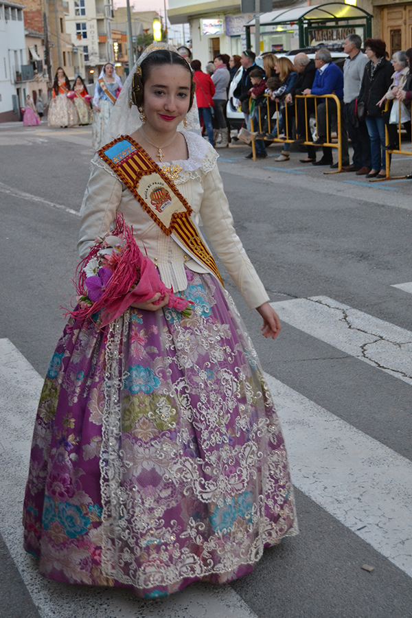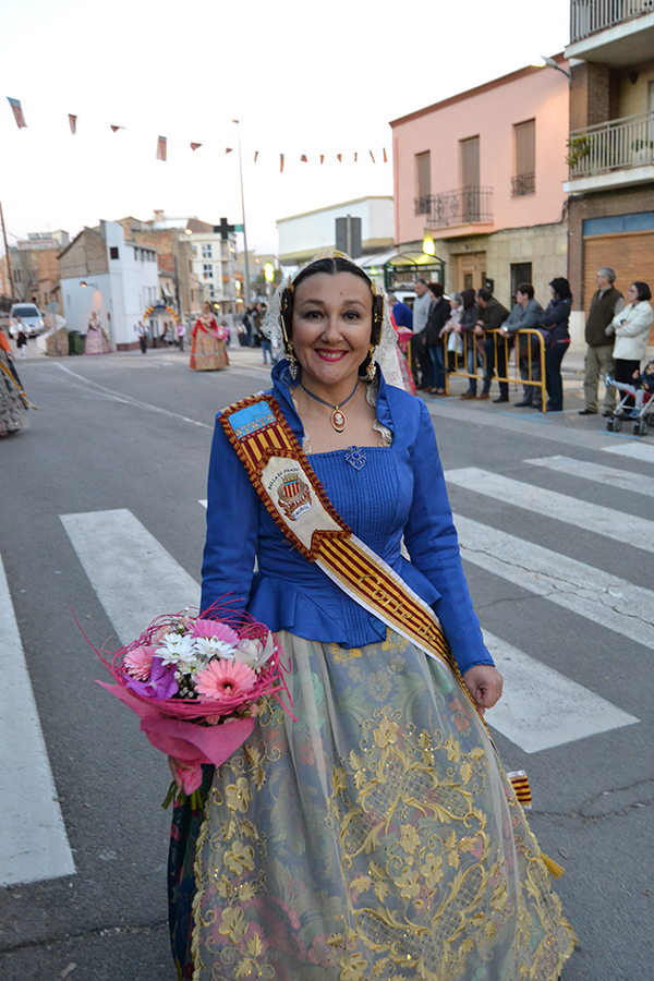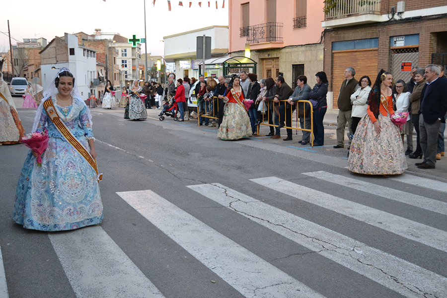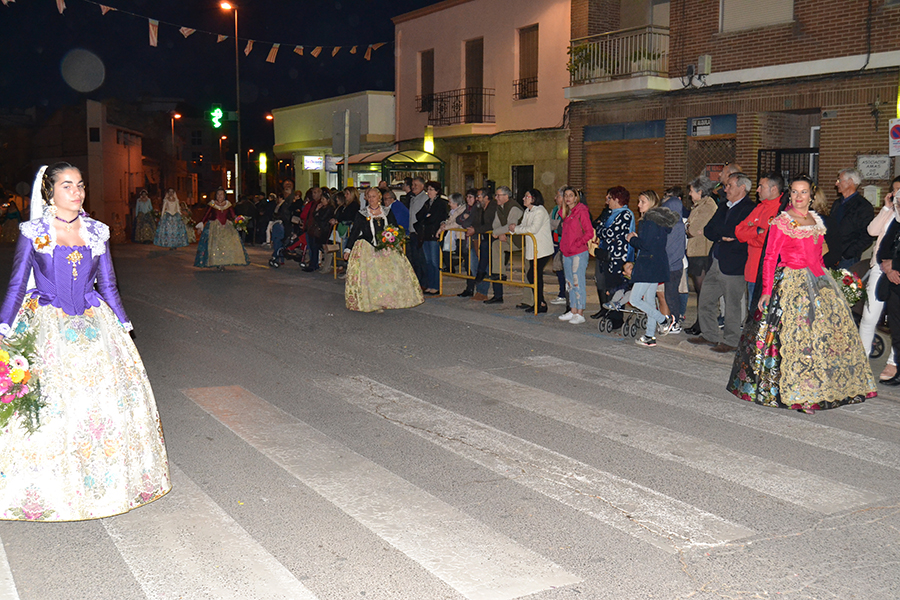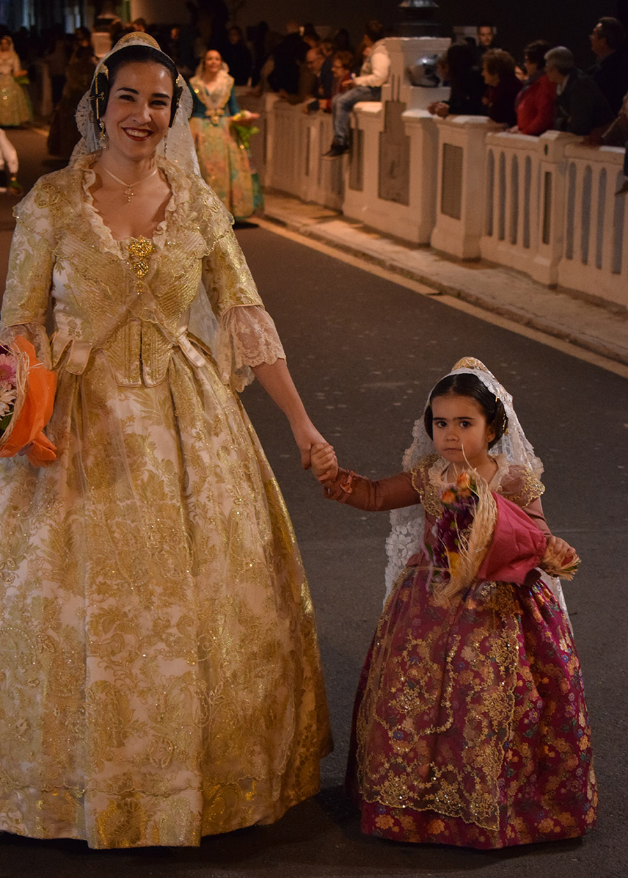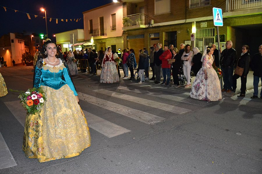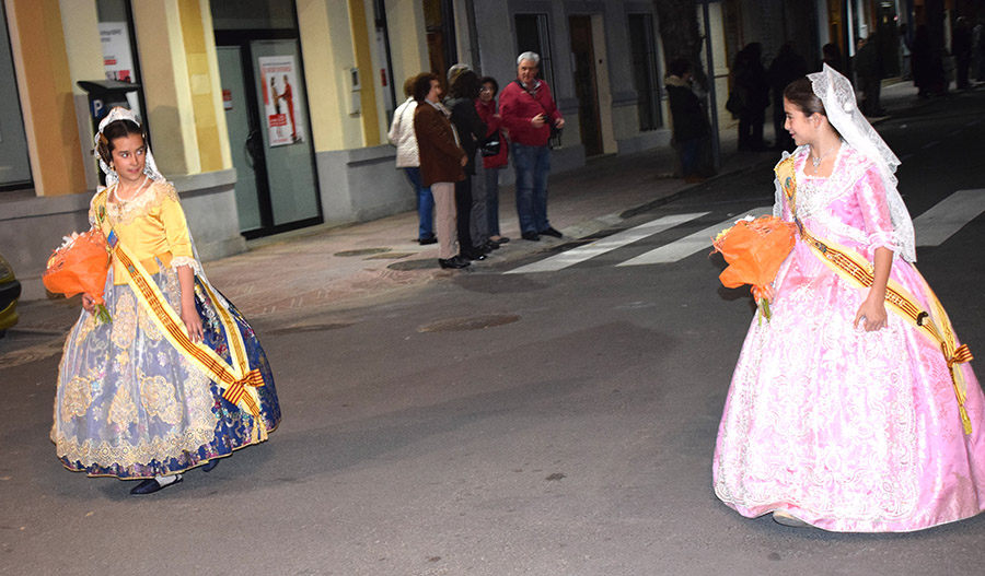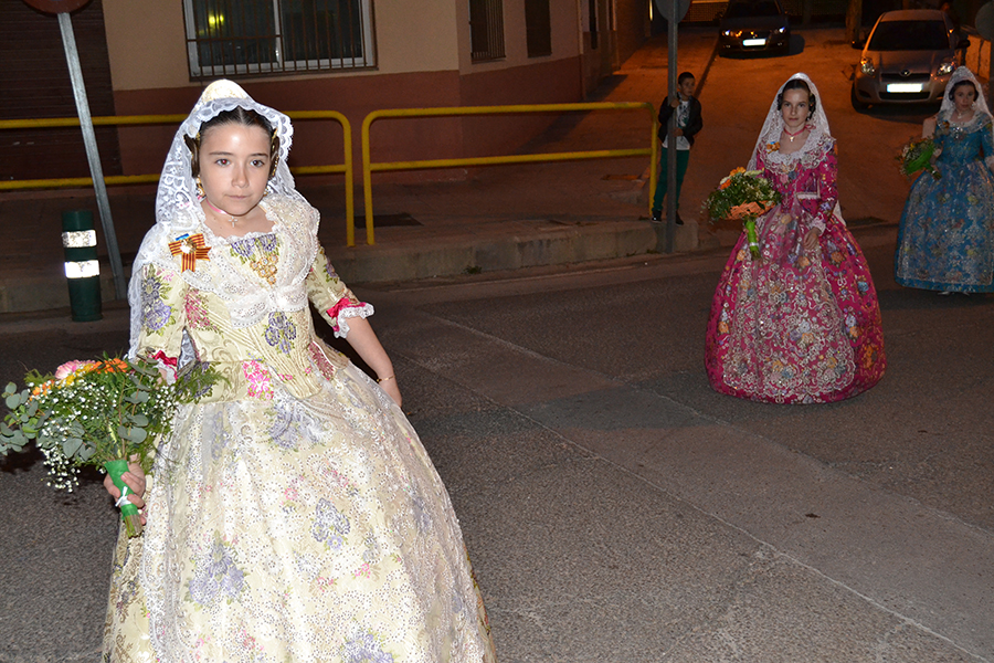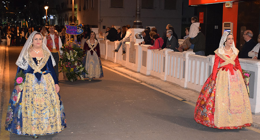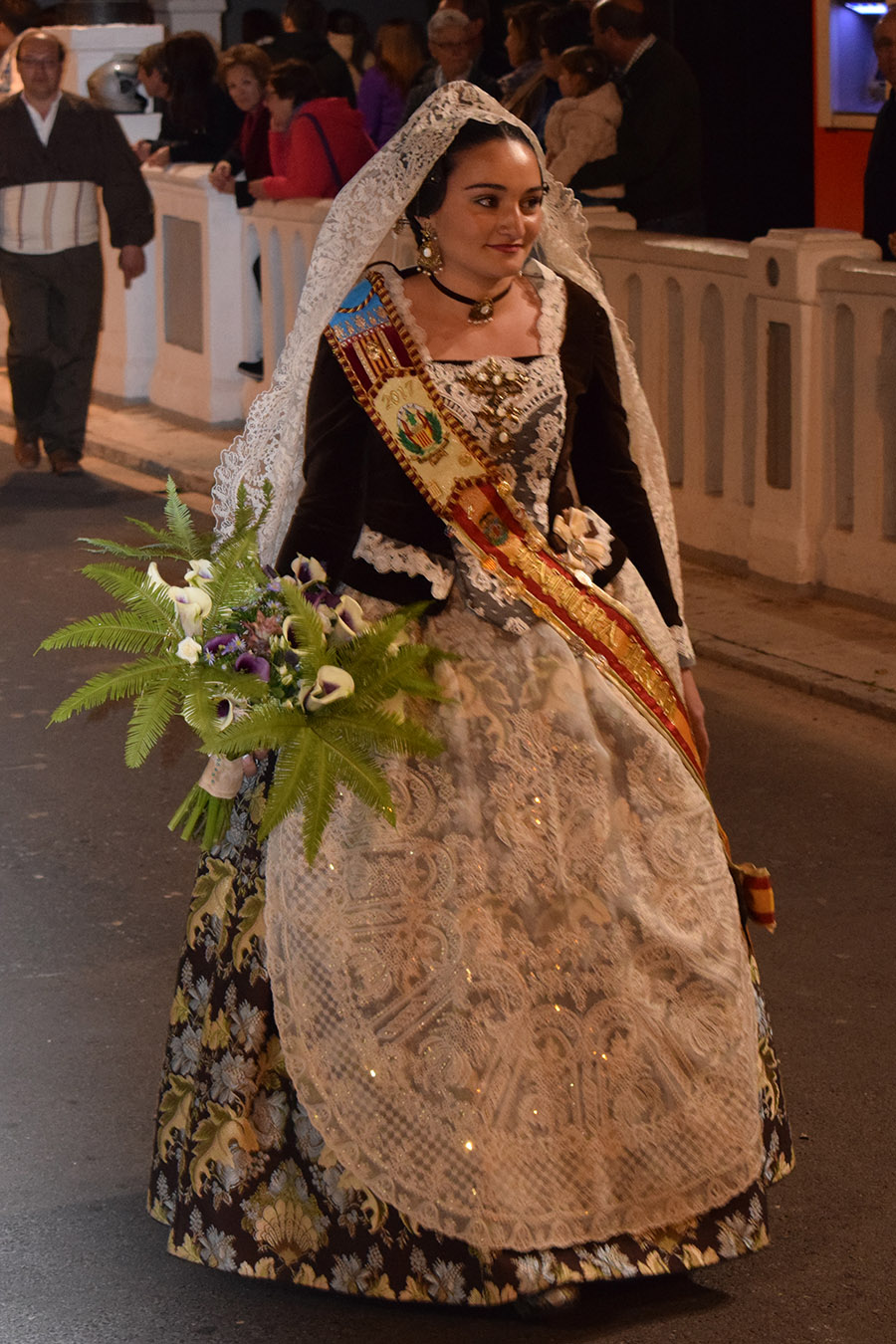 Las Fallas de Buñol han celebrado uno de los actos centrales más emotivos de las fiestas josefinas, la Ofrenda. Este año el acto ha comenzado en la Plaza Rivero,desde donde las comisiones de El Prado y Las Ventas, acompañados de la Fallera Mayor de la Junta Local, Sonia Llopis, que ha encabezado el desfile, han ofrendado a la Virgen de los Dolores. El “puente de la Venta”, así como la Calle Condes de Buñol estaban abarrotadas para observar a decenas de falleros y falleras, en una de las tardes más especiales de las fiestas Josefinas. Nuria Barbancho, llena de emoción depositó su ramo y más tarde se hizo la foto de familia con su comisión de El Prado. Igualmente emocionadas se mostraron, Aurora Medard e Isabel Guillamón de la comisión de Las Ventas, que repitieron instantánea con toda su familia fallera.