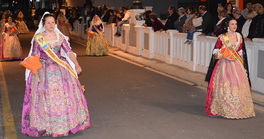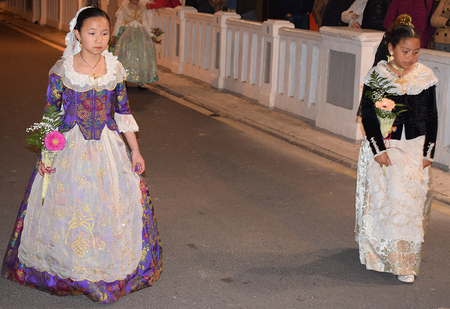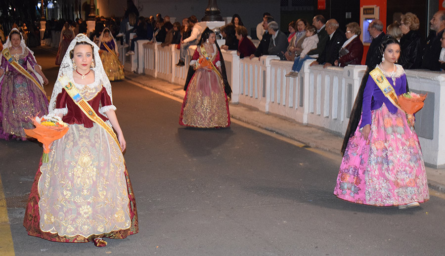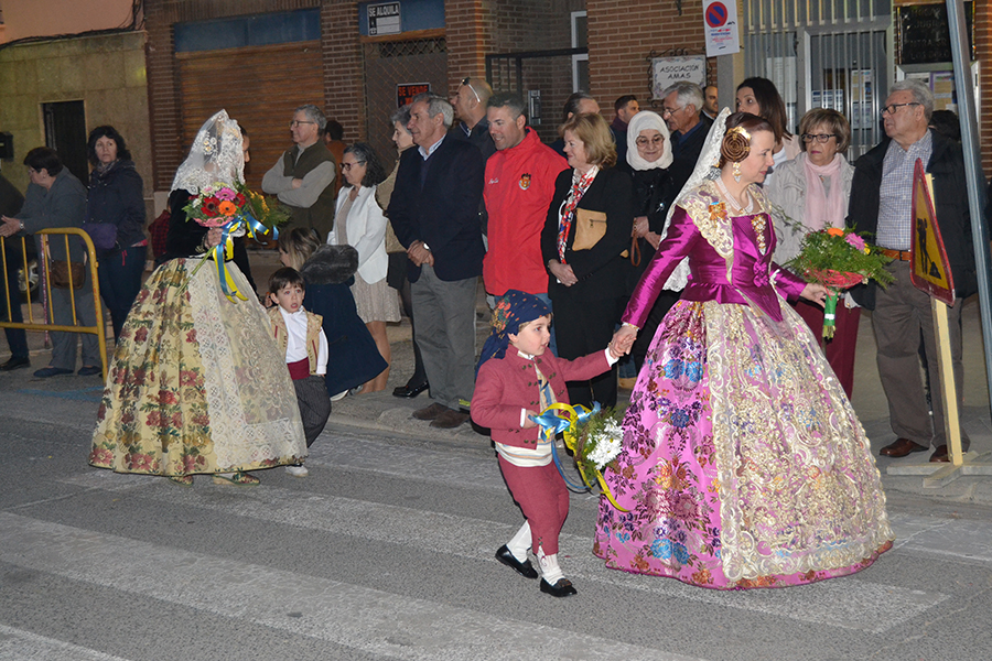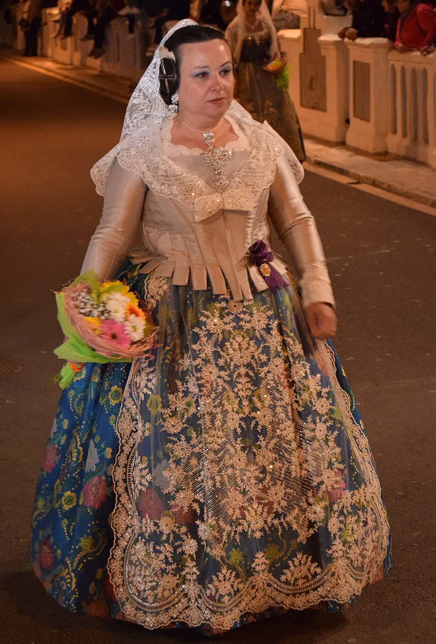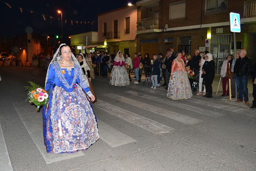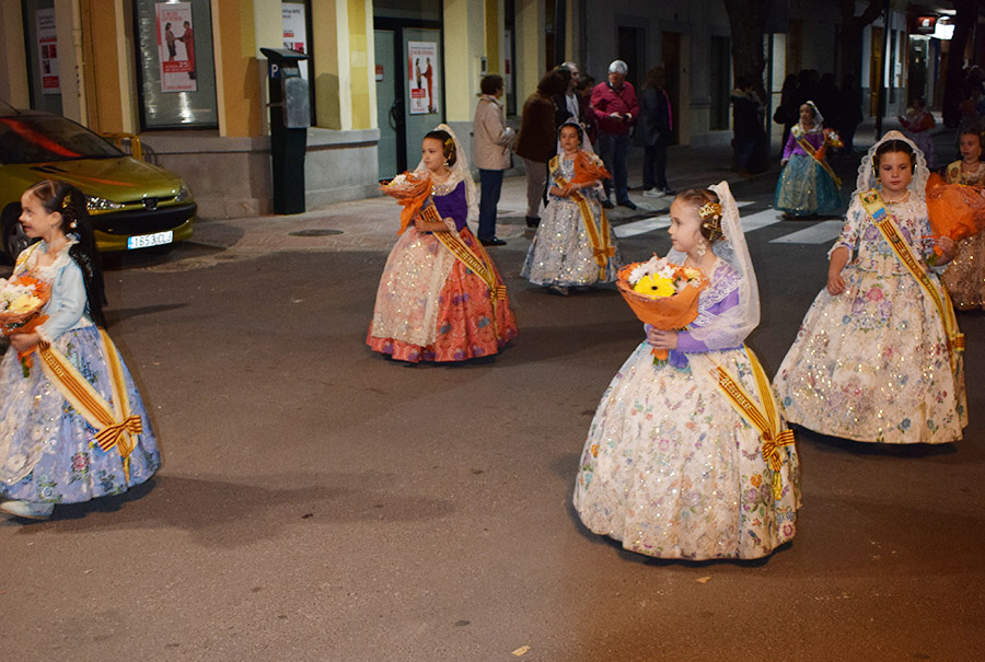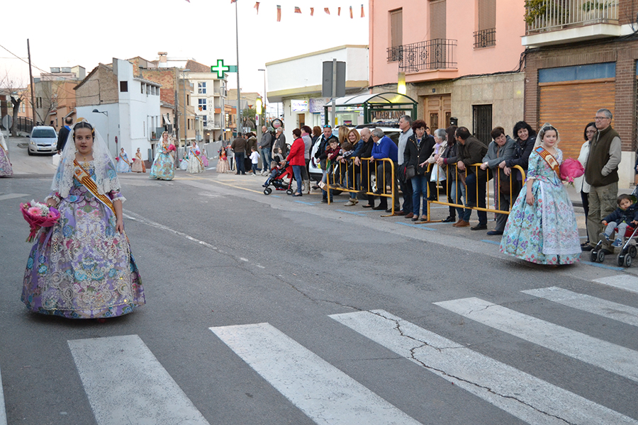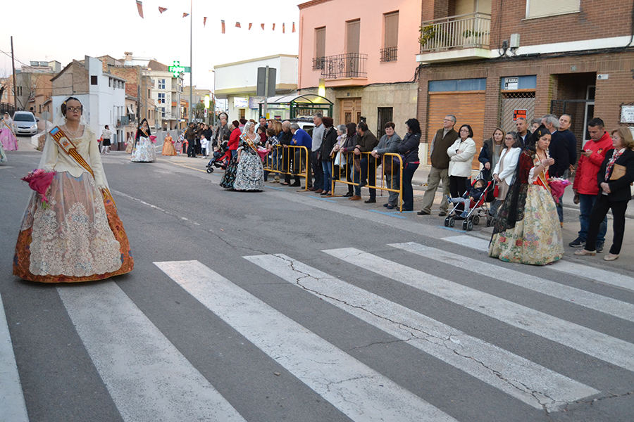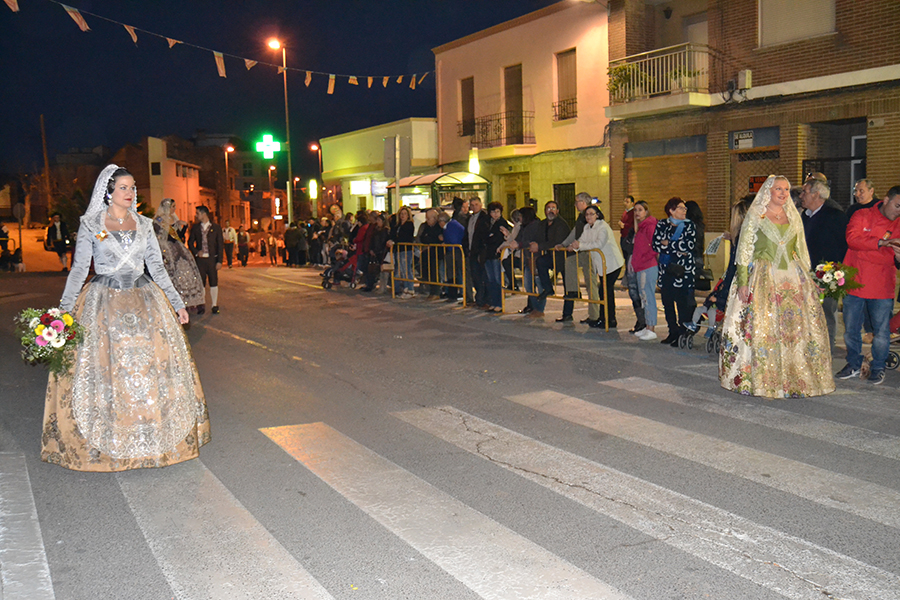 Las Fallas de Buñol han celebrado uno de los actos centrales más emotivos de las fiestas josefinas, la Ofrenda. Este año el acto ha comenzado en la Plaza Rivero,desde donde las comisiones de El Prado y Las Ventas, acompañados de la Fallera Mayor de la Junta Local, Sonia Llopis, que ha encabezado el desfile, han ofrendado a la Virgen de los Dolores. El “puente de la Venta”, así como la Calle Condes de Buñol estaban abarrotadas para observar a decenas de falleros y falleras, en una de las tardes más especiales de las fiestas Josefinas. Nuria Barbancho, llena de emoción depositó su ramo y más tarde se hizo la foto de familia con su comisión de El Prado. Igualmente emocionadas se mostraron, Aurora Medard e Isabel Guillamón de la comisión de Las Ventas, que repitieron instantánea con toda su familia fallera.