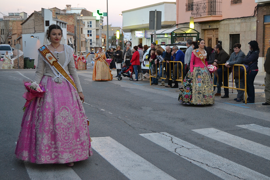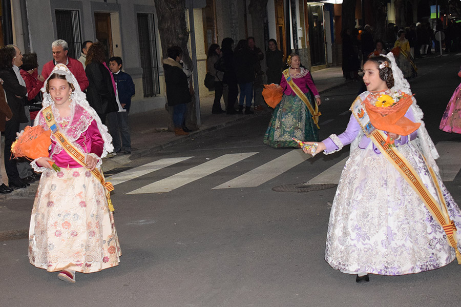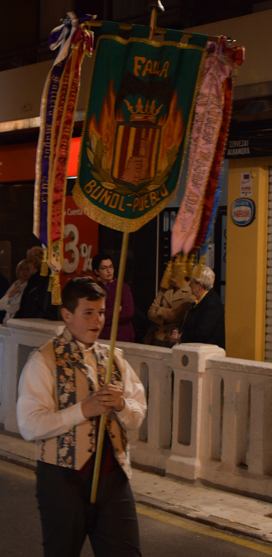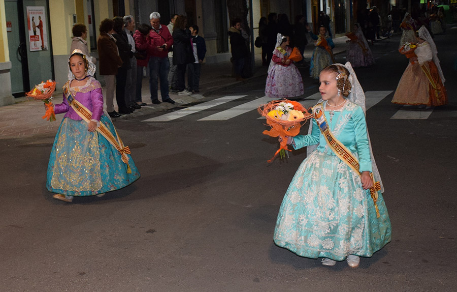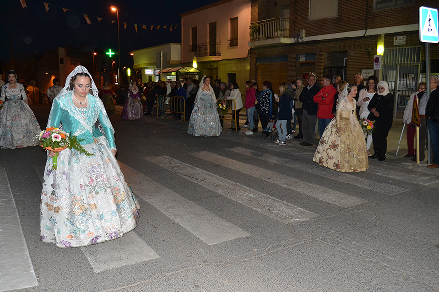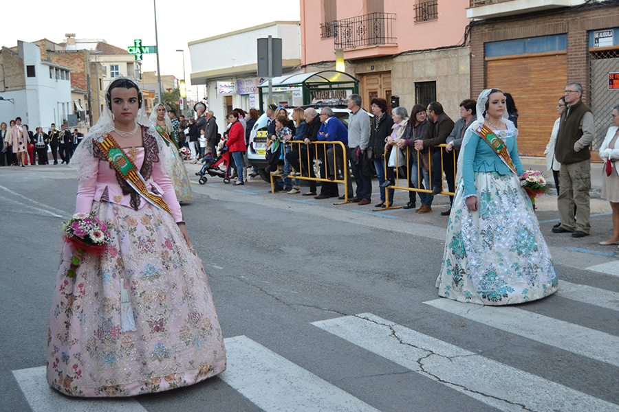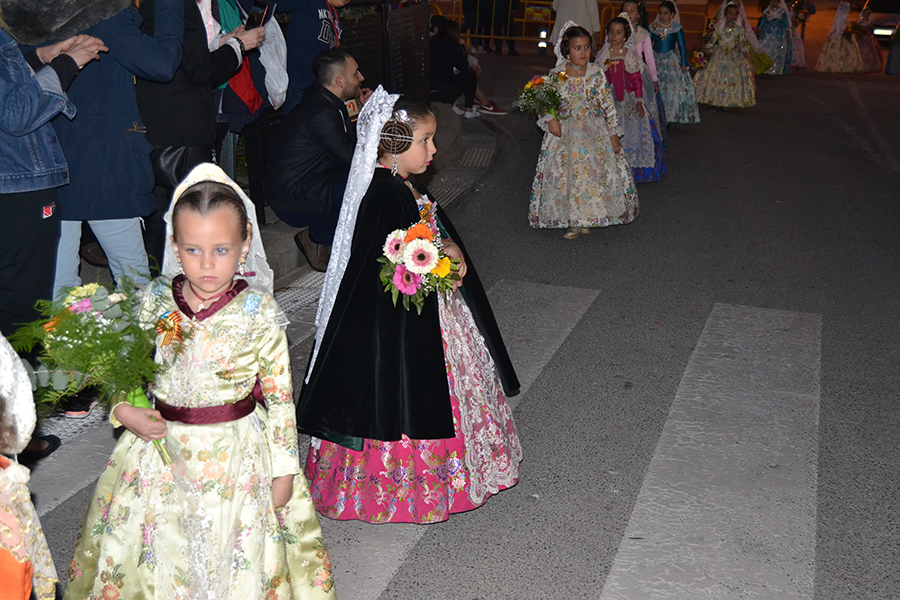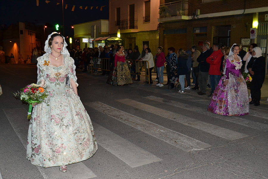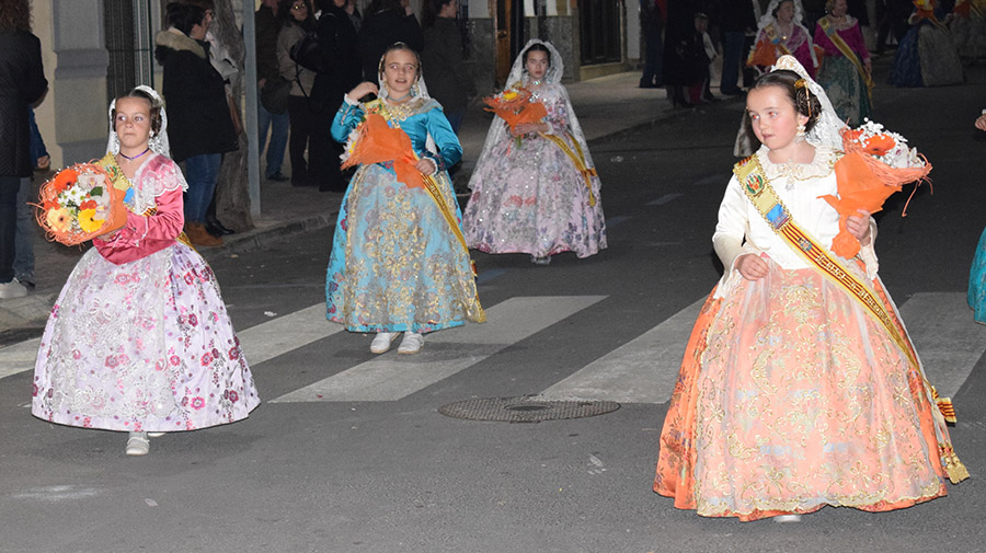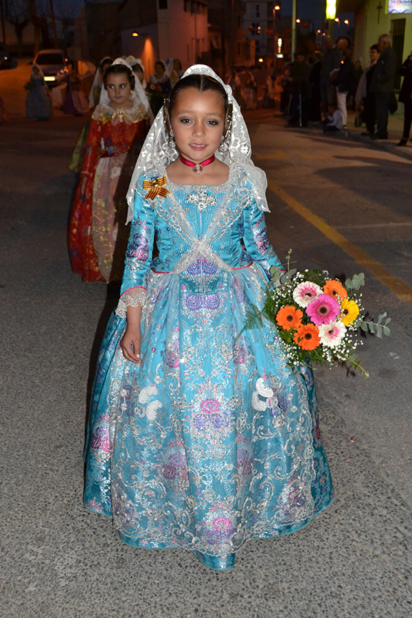 Las Fallas de Buñol han celebrado uno de los actos centrales más emotivos de las fiestas josefinas, la Ofrenda. Este año el acto ha comenzado en la Plaza Rivero,desde donde las comisiones de El Prado y Las Ventas, acompañados de la Fallera Mayor de la Junta Local, Sonia Llopis, que ha encabezado el desfile, han ofrendado a la Virgen de los Dolores. El “puente de la Venta”, así como la Calle Condes de Buñol estaban abarrotadas para observar a decenas de falleros y falleras, en una de las tardes más especiales de las fiestas Josefinas. Nuria Barbancho, llena de emoción depositó su ramo y más tarde se hizo la foto de familia con su comisión de El Prado. Igualmente emocionadas se mostraron, Aurora Medard e Isabel Guillamón de la comisión de Las Ventas, que repitieron instantánea con toda su familia fallera.