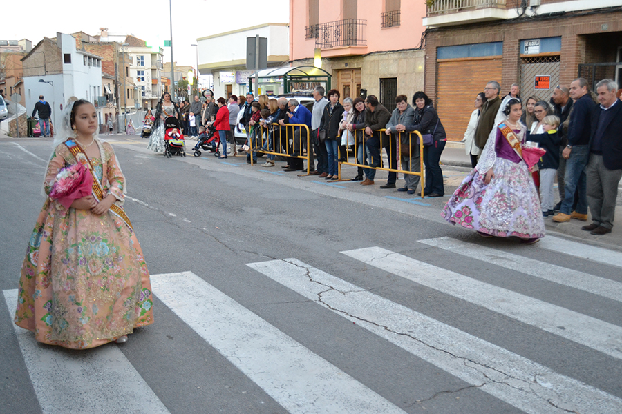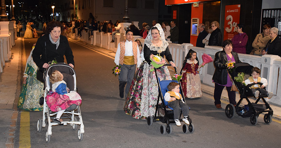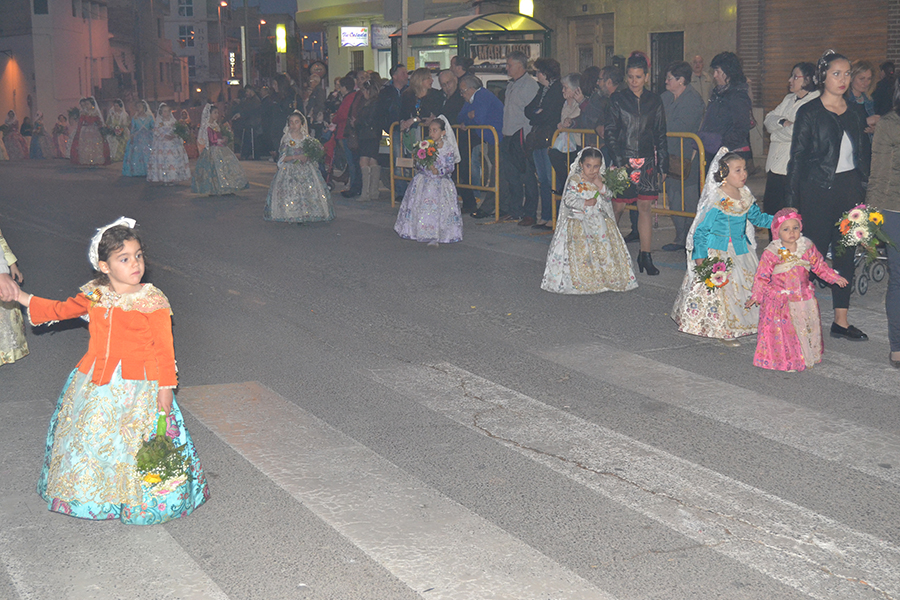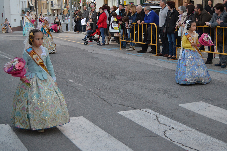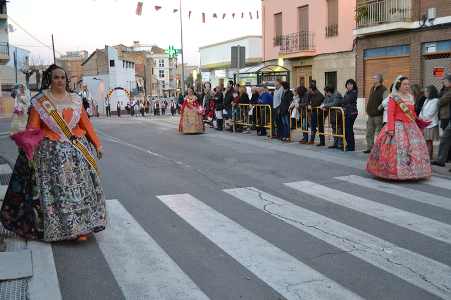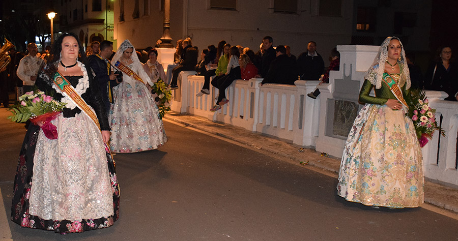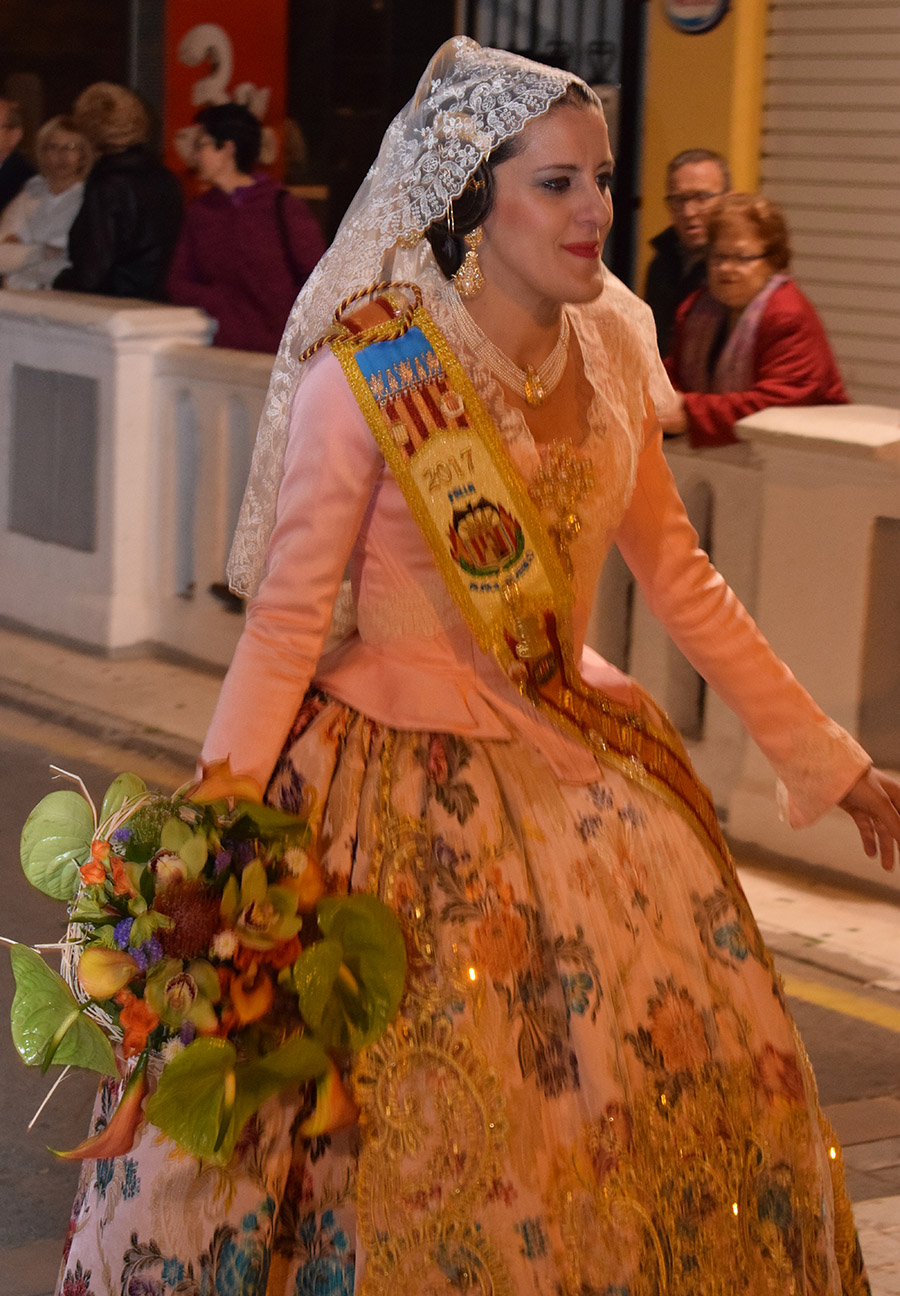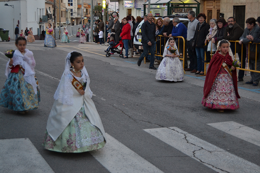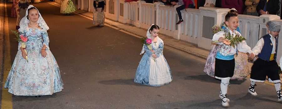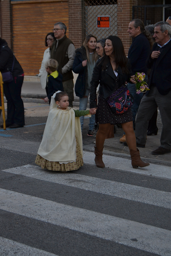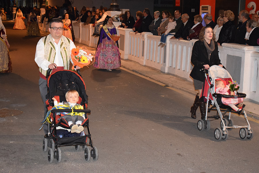Las Fallas de Buñol han celebrado uno de los actos centrales más emotivos de las fiestas josefinas, la Ofrenda. Este año el acto ha comenzado en la Plaza Rivero,desde donde las comisiones de El Prado y Las Ventas, acompañados de la Fallera Mayor de la Junta Local, Sonia Llopis, que ha encabezado el desfile, han ofrendado a la Virgen de los Dolores. El “puente de la Venta”, así como la Calle Condes de Buñol estaban abarrotadas para observar a decenas de falleros y falleras, en una de las tardes más especiales de las fiestas Josefinas. Nuria Barbancho, llena de emoción depositó su ramo y más tarde se hizo la foto de familia con su comisión de El Prado. Igualmente emocionadas se mostraron, Aurora Medard e Isabel Guillamón de la comisión de Las Ventas, que repitieron instantánea con toda su familia fallera.