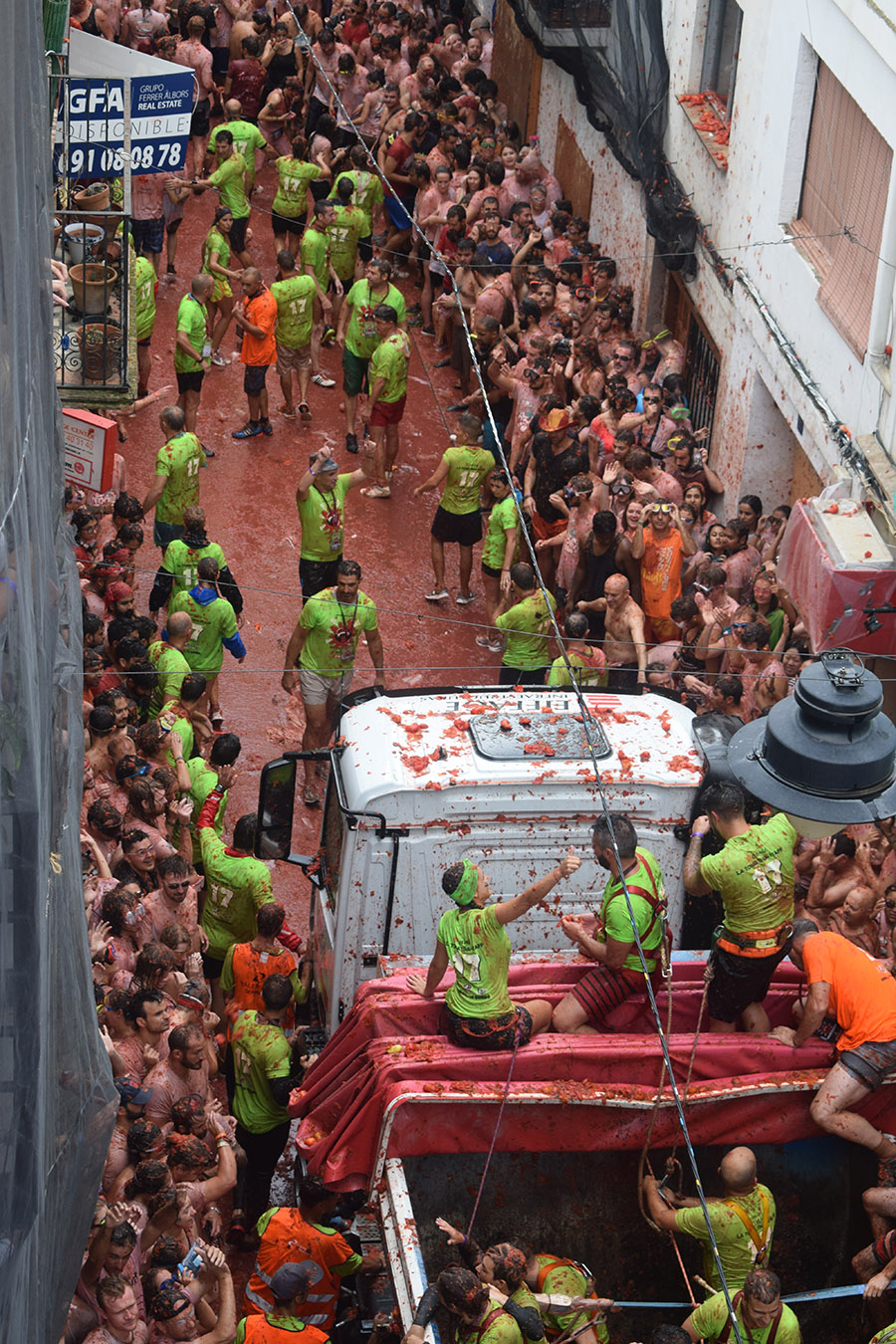 Munición no faltó. Los puntos de descarga funcionaron a la perfección. Las más de 22.000 personas disfrutaron de lo lindo en una batalla que cada año congrega a más población extranjera venida de más de 60 países del mundo. Además, desde hace cuatro años, tras el control del aforo, la fiesta también está congregando a más buñoleros y buñoleras, que disfrutan de su fiesta sin tantos agobios como en ediciones anteriores.