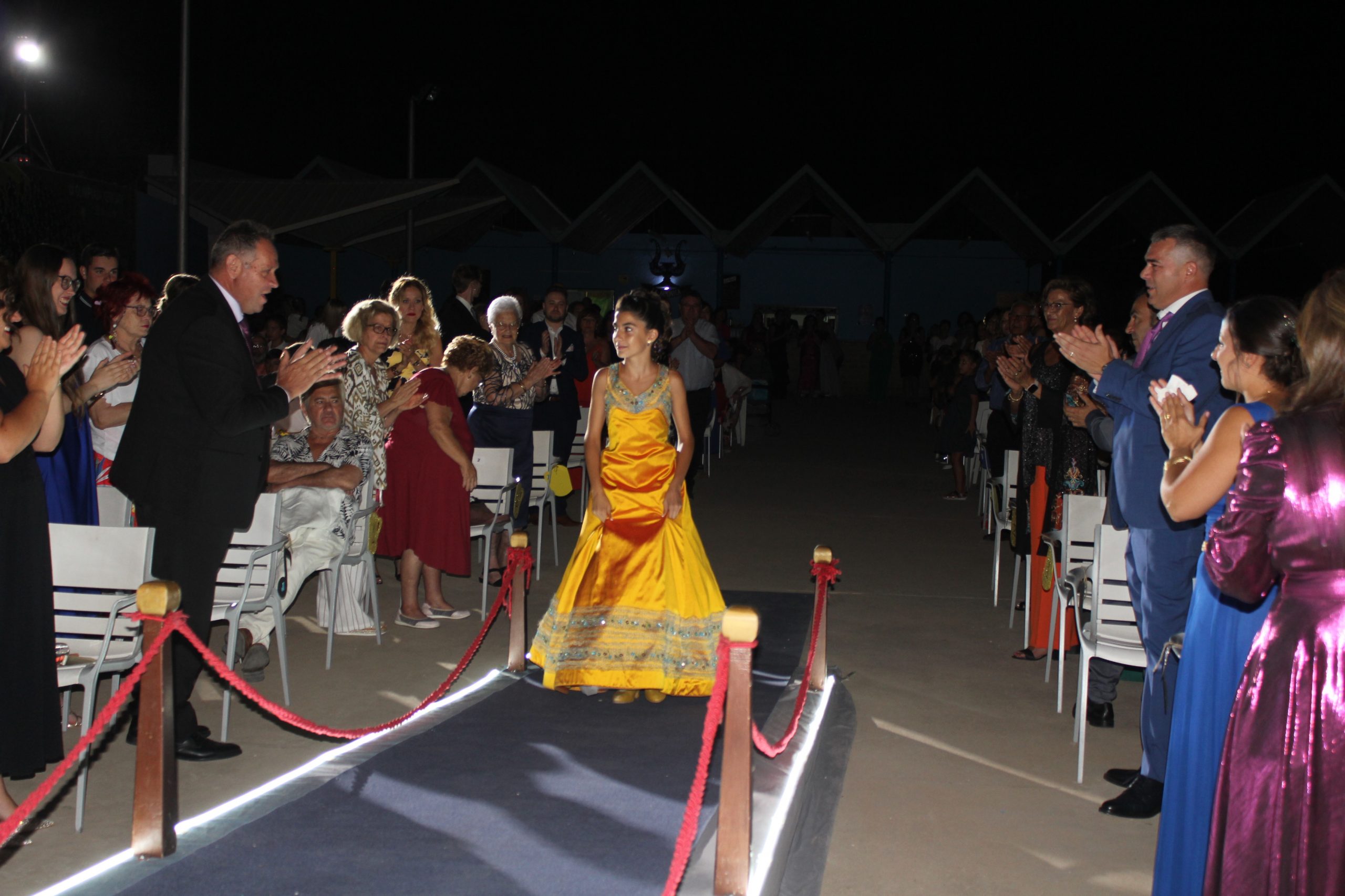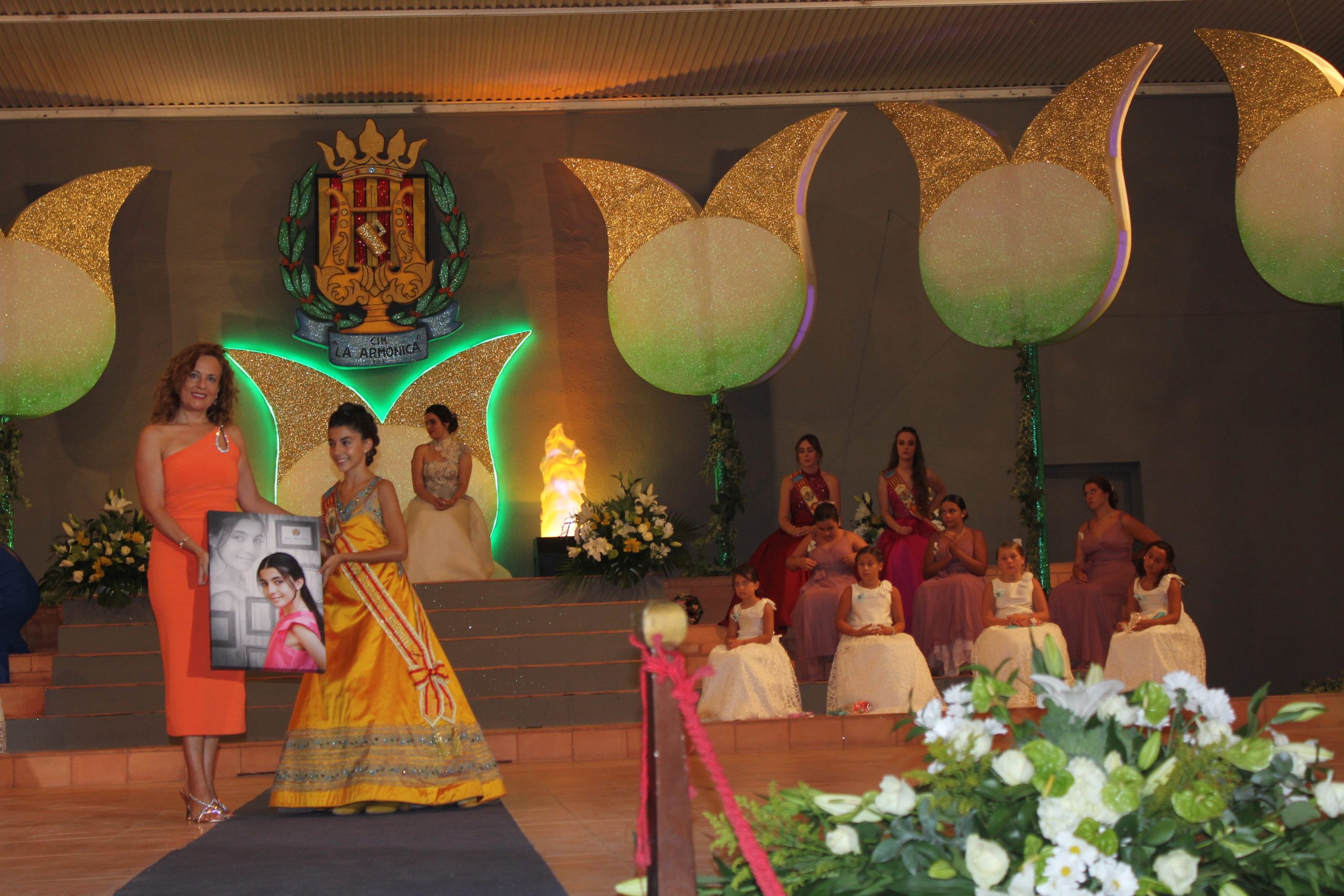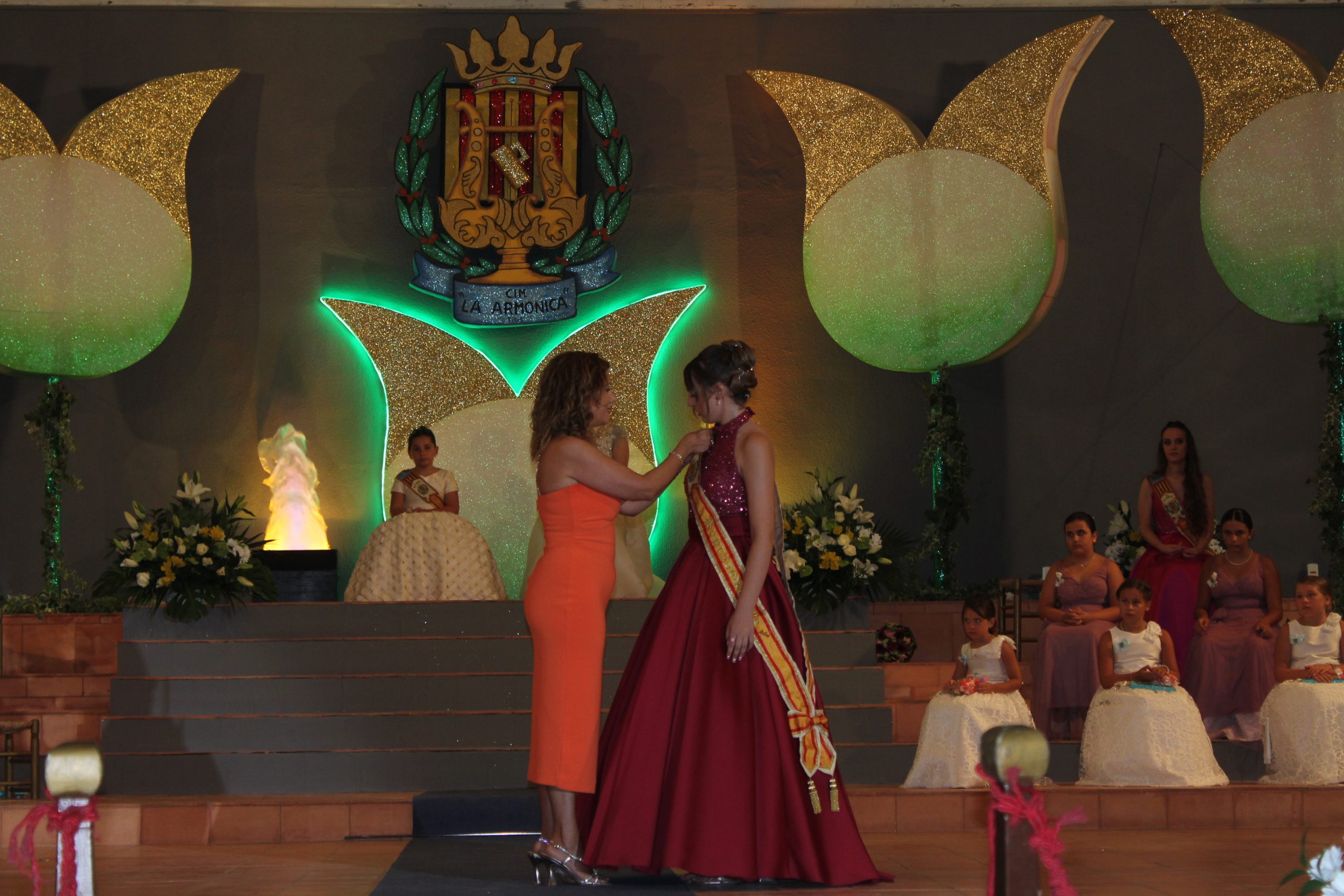El acto, que fue presentado por Laura Carrascosa y Raquel Badía, sirvió para despedir a Paula, Elsa y Cristina, como representantes de la sociedad este pasado año, y dar la bienvenida a Andrea Cano Benedé, como Miss Armónica 2023, a la niña Carmen Blasco Cerdán, como Miss Armónica Infantil y a Arlén Sánchez Sánchez como Representante de la sociedad en la Corte de Honor de la Reina de la Feria y Fiestas. En su desfile al escenario, donde la presidenta Rosario Pardo les impuso las insignias de la sociedad, las lágrimas inundaron los ojos y las mejillas de las protagonistas y de sus familiares, visiblemente emocionados.