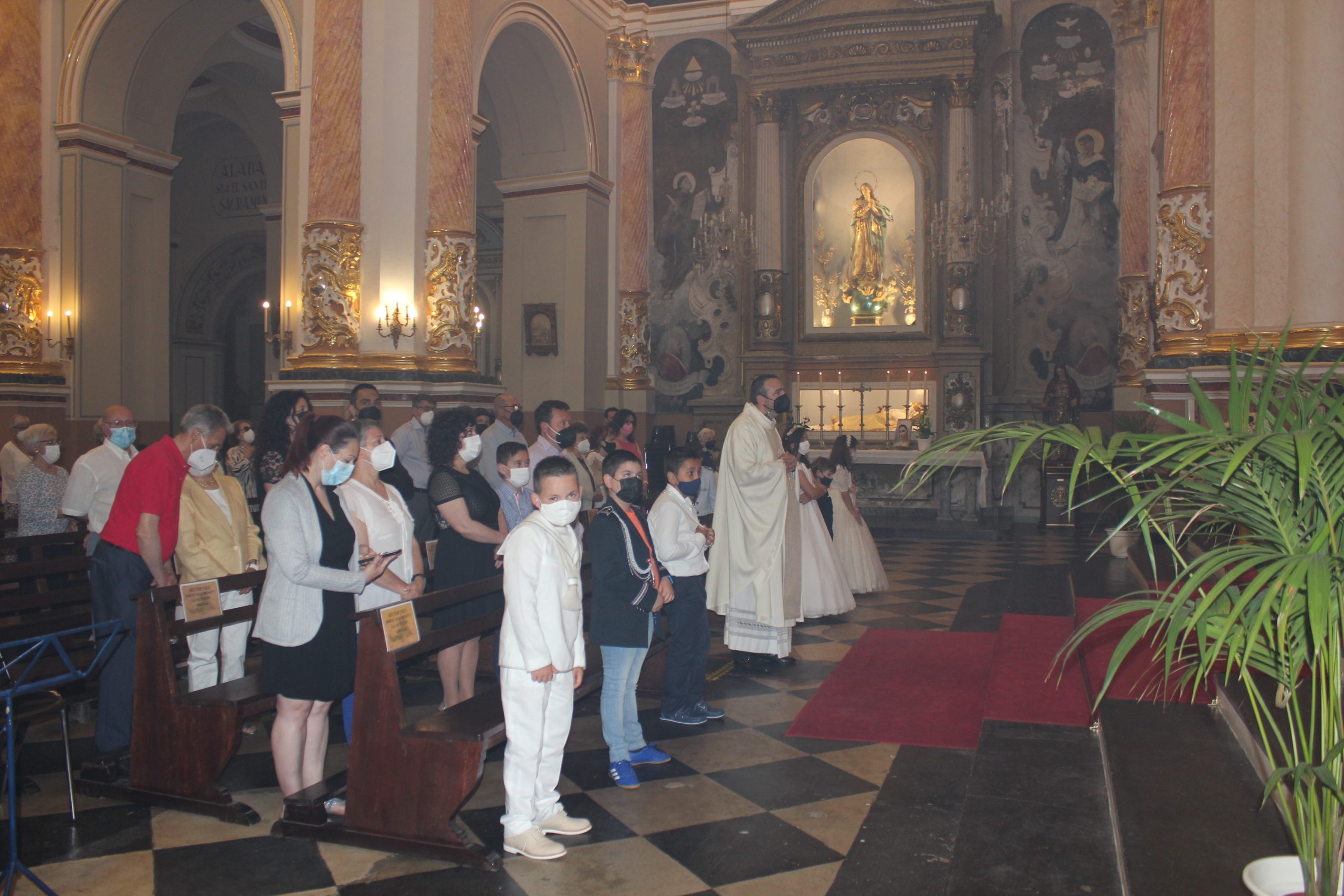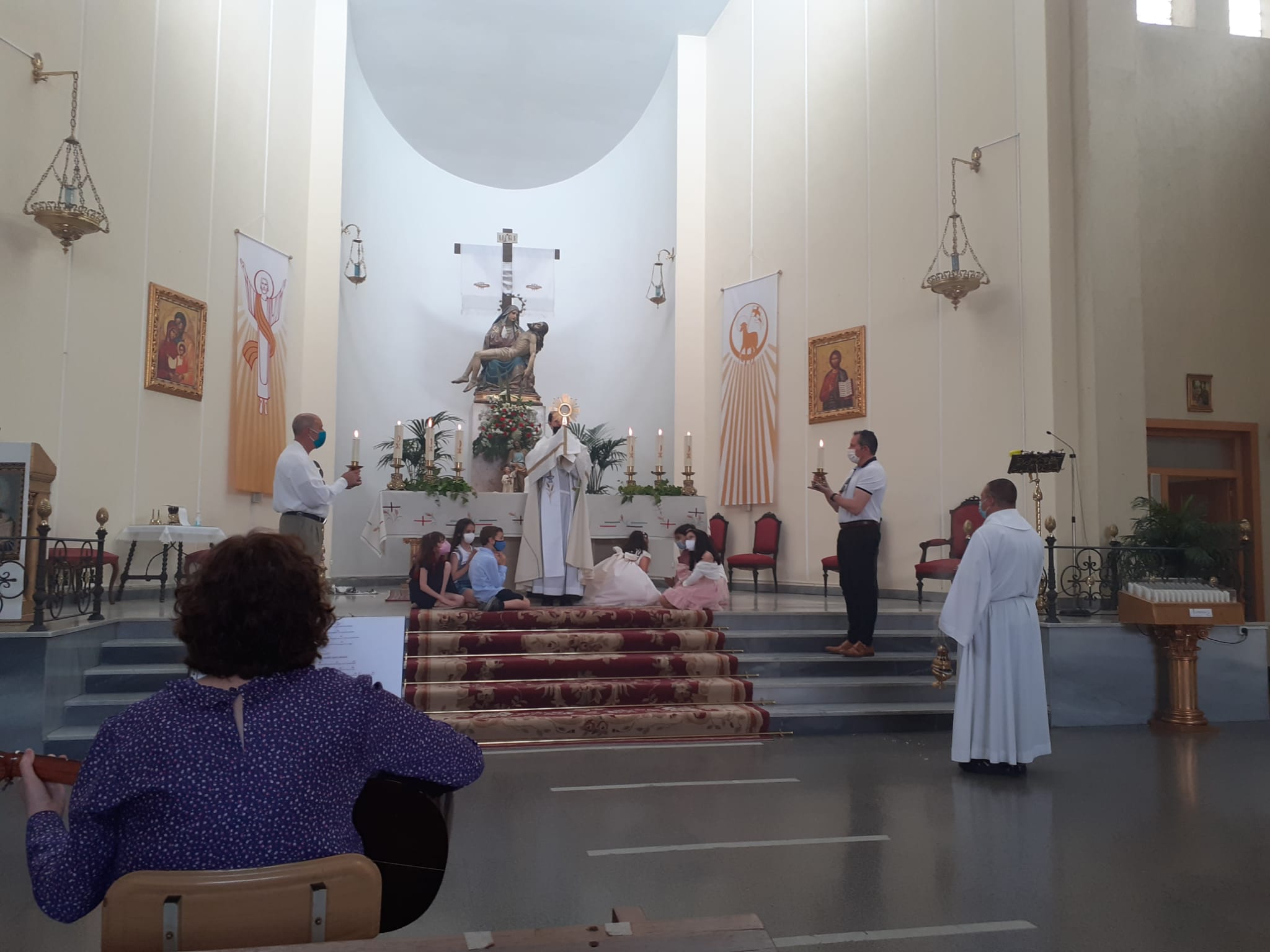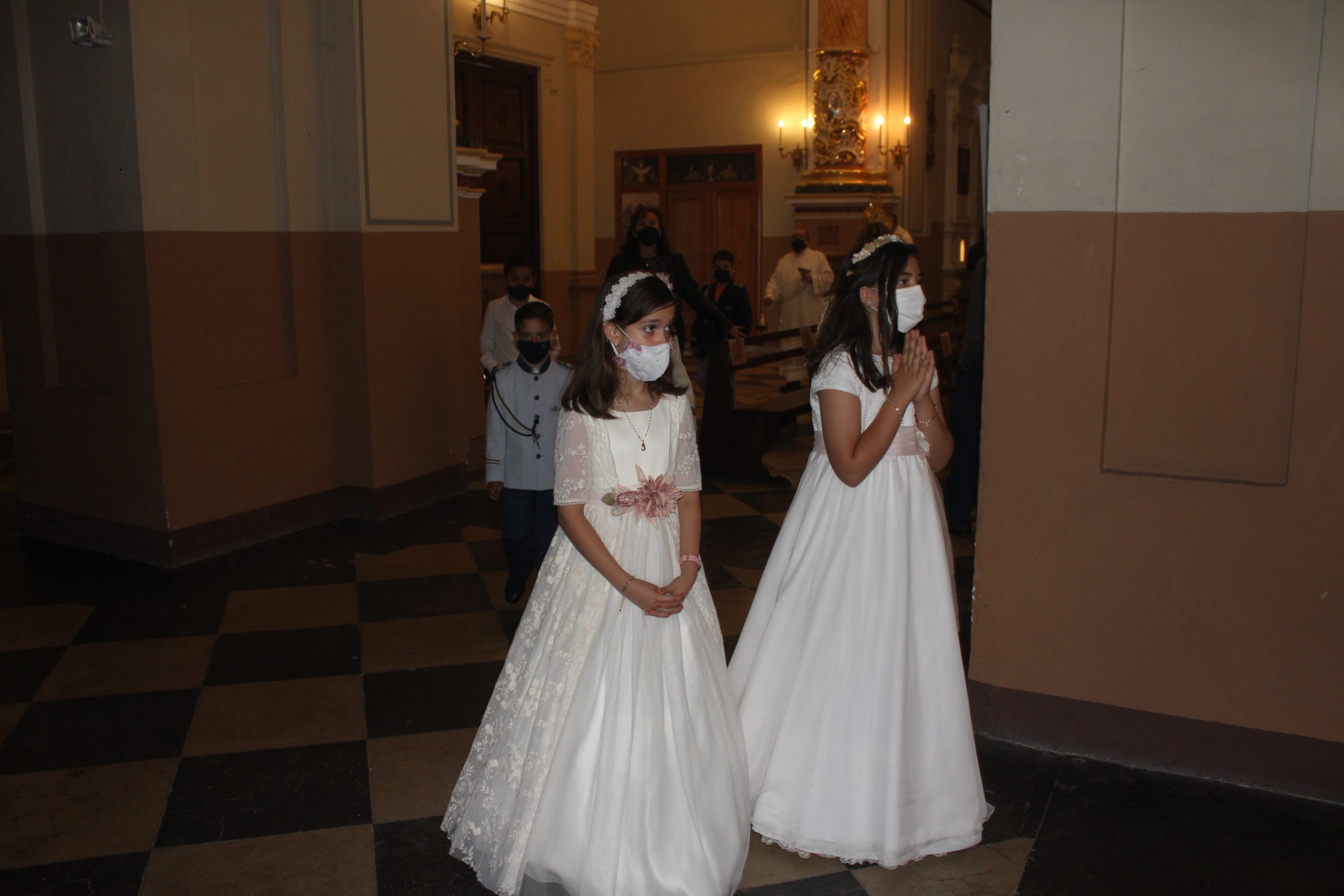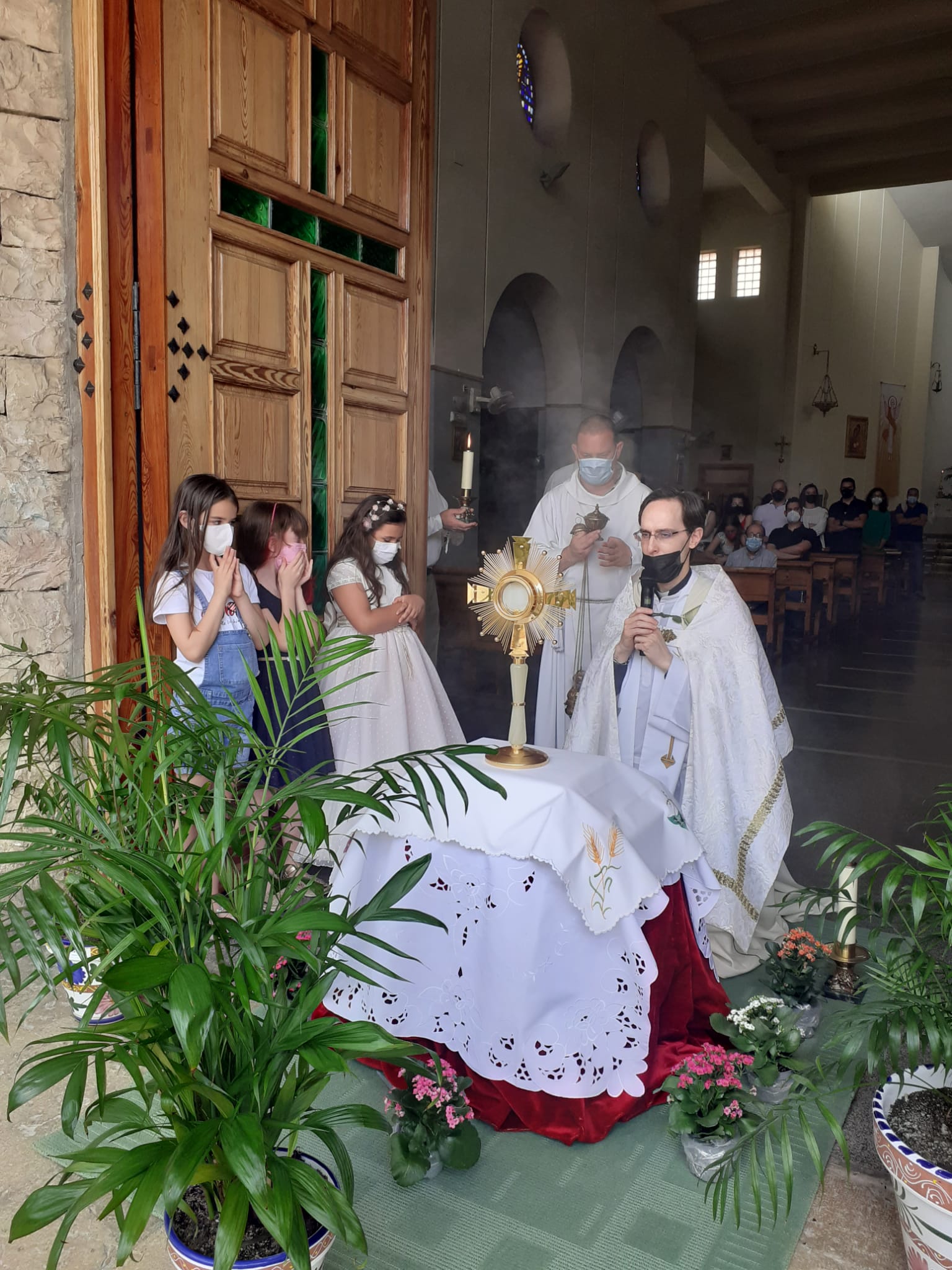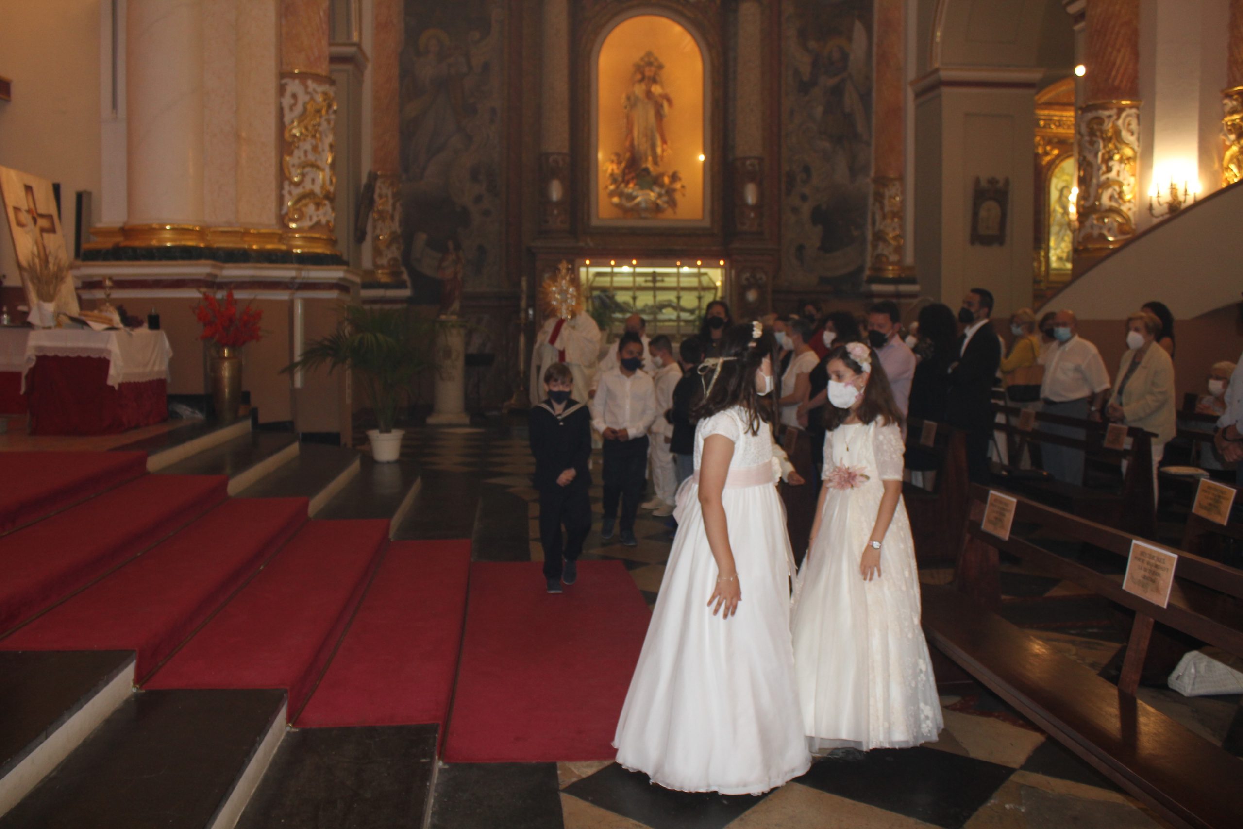 Por otra parte, en la parroquia Nuestra Señora de los Dolores durante la Eucaristía y posterior procesión, los feligreses permanecieron en todo momento en sus bancos mientras la Custodia salía del Altar Mayor portada por el vicario de localidad Borja, incensado el sacristán de la parroquia Pepe. Este también estuvo acompañado por los niños y niñas que este año han tomado su primera comunión en esta parroquia y en la puerta del templo buñolense estaba instalado un pequeño altar.