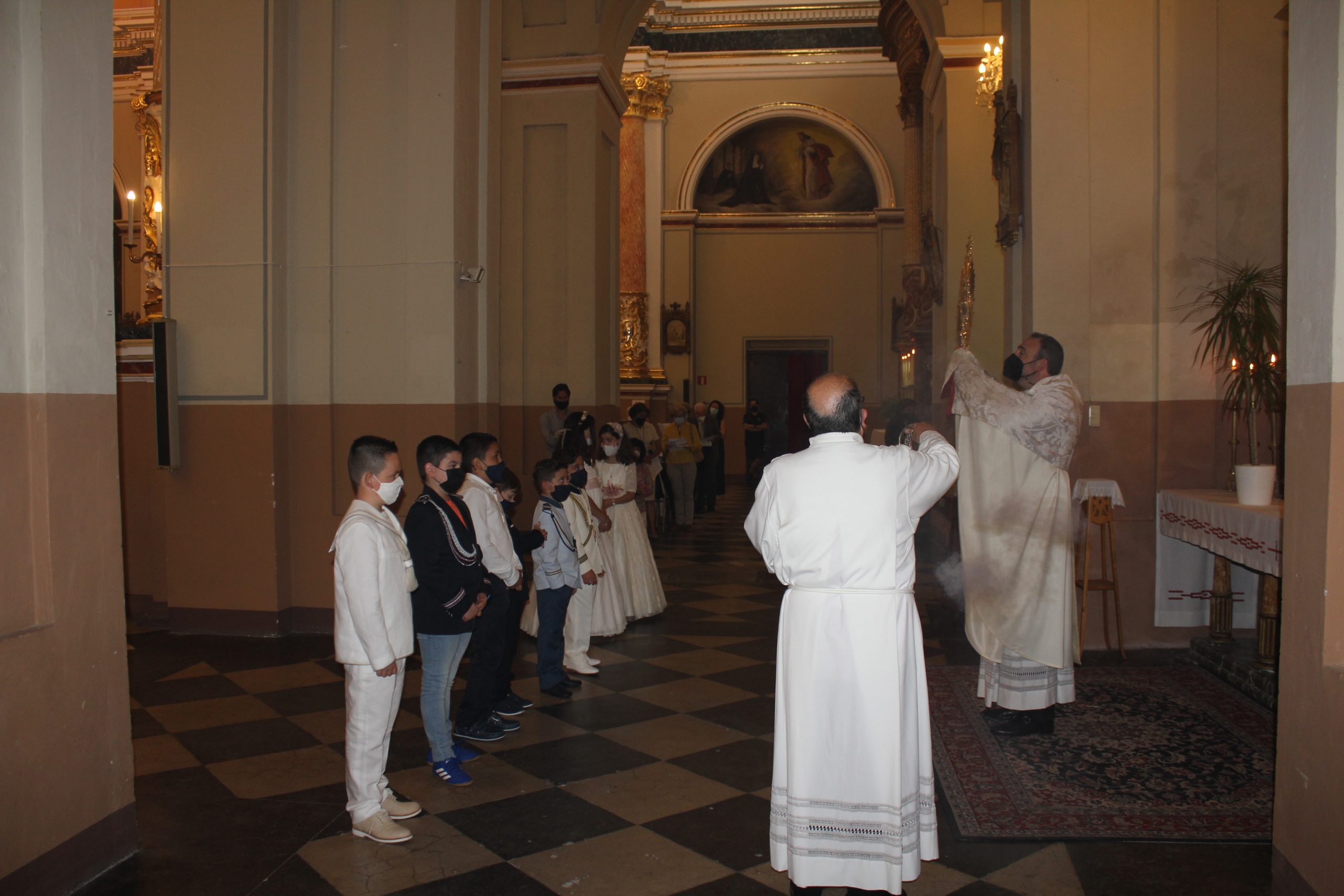 David Avilés.- Las parroquias San Pedro Apóstol y Nuestra Señora de los Dolores de Buñol acogieron el pasado domingo la solemne Eucaristía y posterior procesión claustral de Corpus Christi.