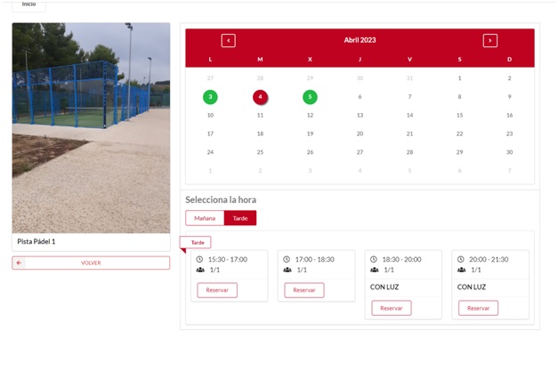 Concretamente, en el caso de reserva de pistas deportivas de pádel y tenis, el procedimiento a seguir, a partir del 2 de mayo, será el siguiente: se mostrará una ventana con los días disponibles a 7 días vista. Al seleccionar el día se muestran las franjas horarias disponibles. Una vez seleccionado el día y la franja horaria que se quiere reservar se muestra un formulario con los datos que se piden. Al pulsar reservar se mostrará un resumen de su reserva y recibirá un correo de confirmación de la reserva, que se podrá imprimir o descargar en pdf para tener el justificante de dicha reserva. Hay que llevar el justificante cuando se acuda a la pista. No se podrá volver a reservar hasta que pase la fecha de la reserva realizada.