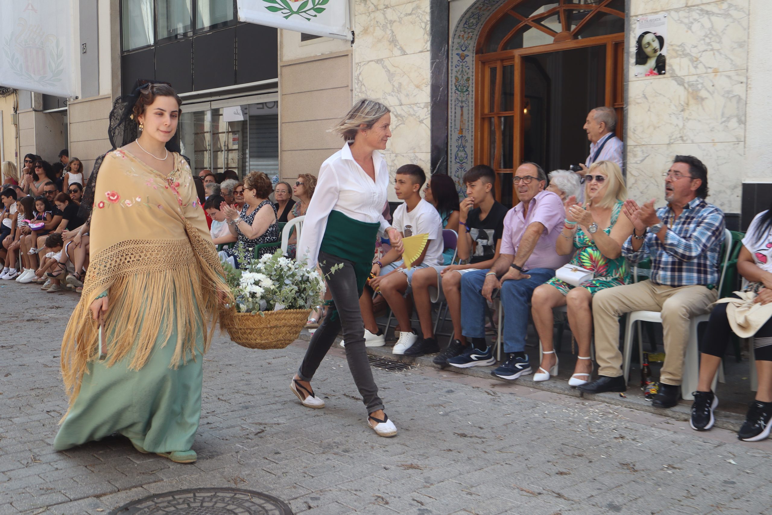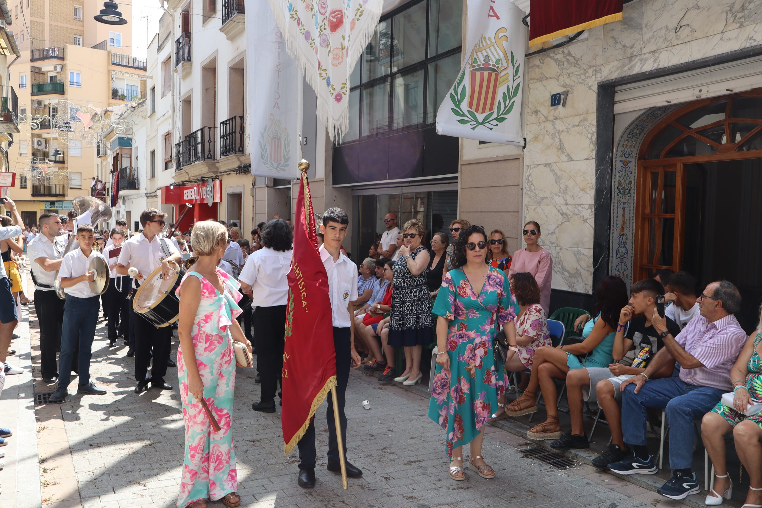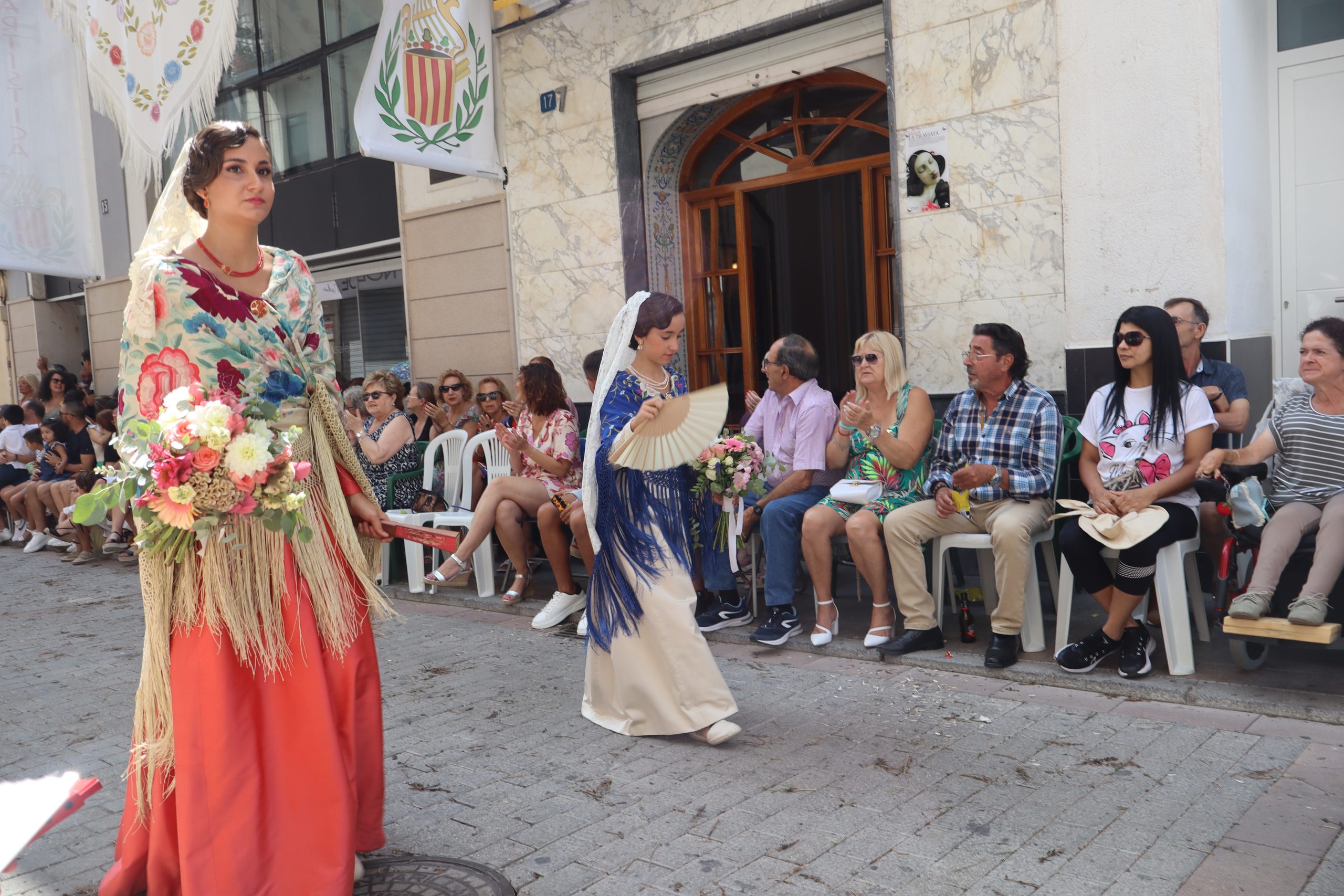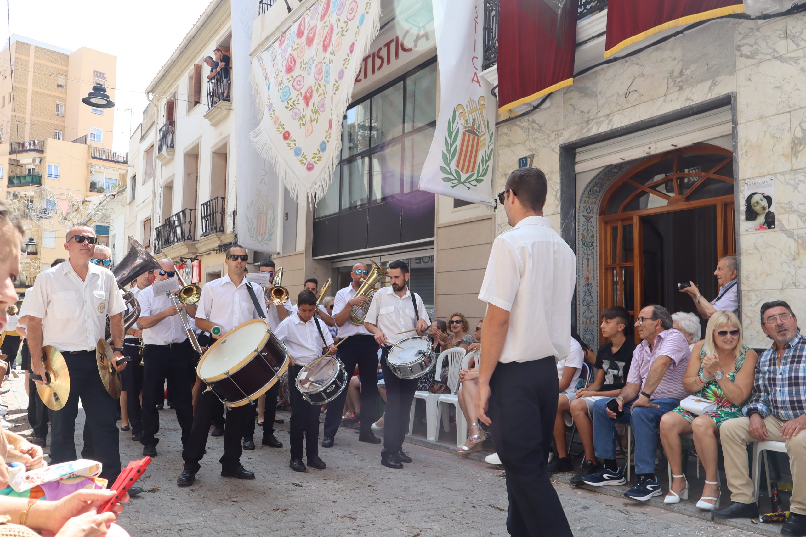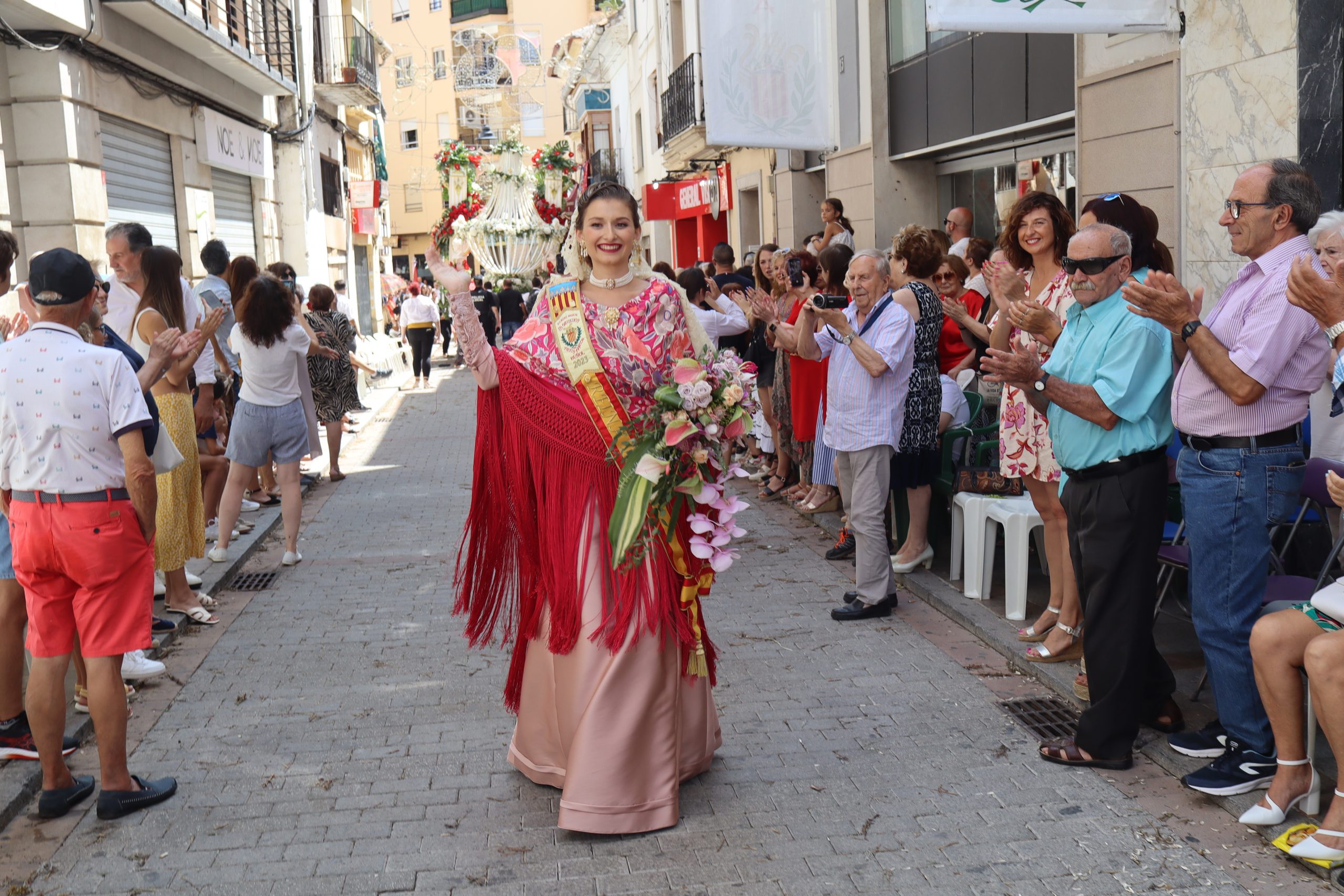 Previamente a que arrancara la Ofrenda, la Banda Sinfónica fue a recoger a sus domicilios a la Representante de La Artística, Paula Gisbert Barranco, a Virginia Miñana Carrascosa, Reina del Mantón 2023, y a la Reina Infantil, Sira Blanes García.