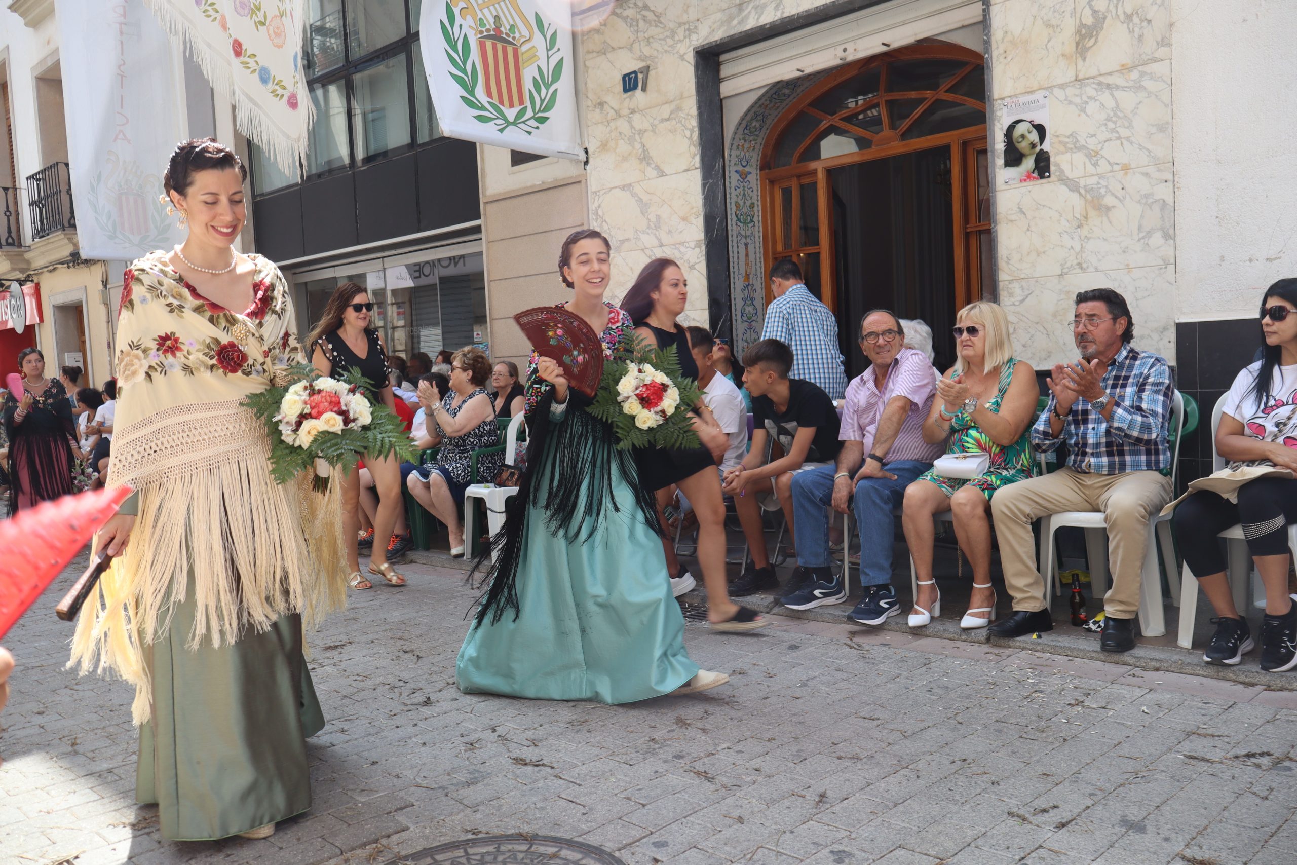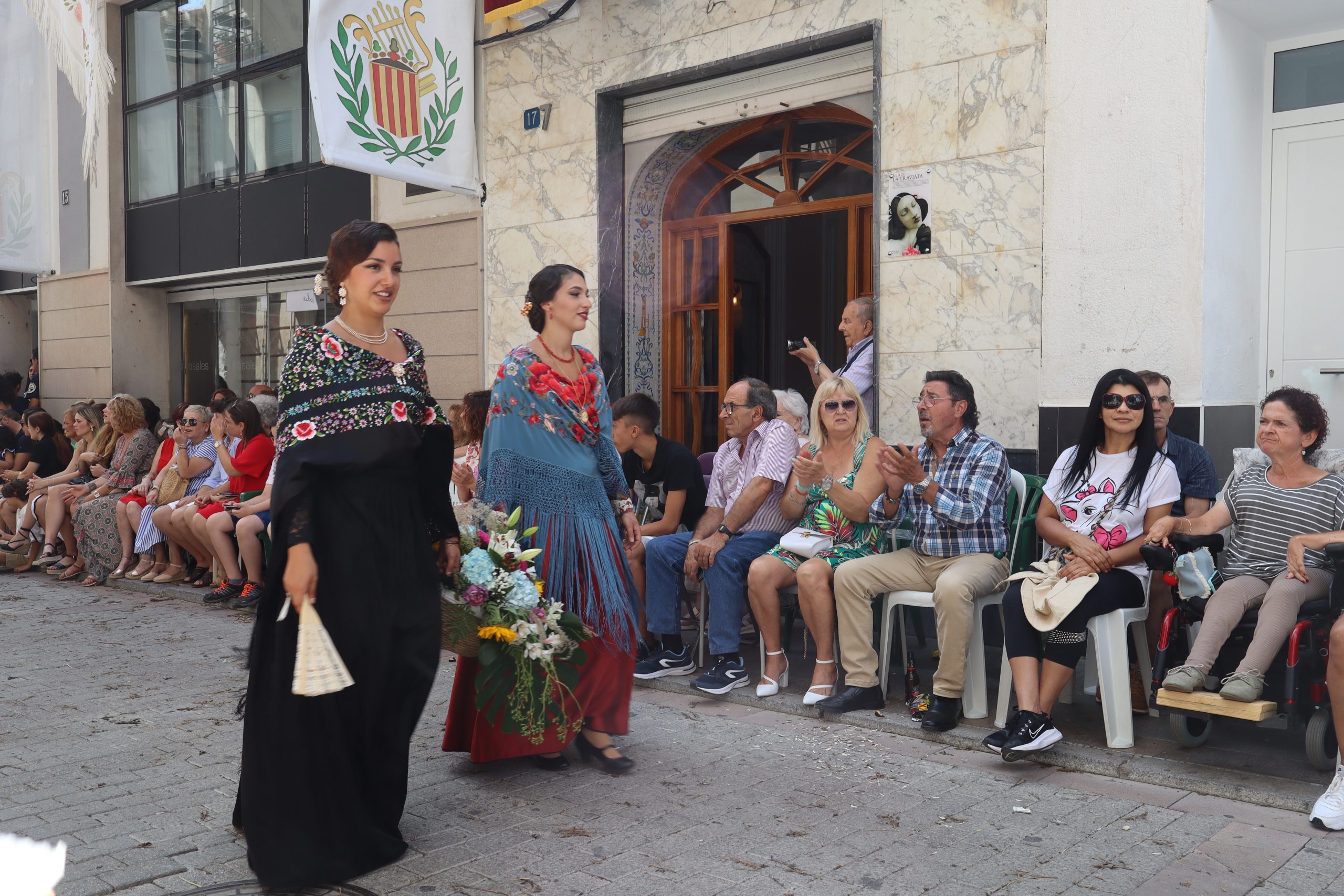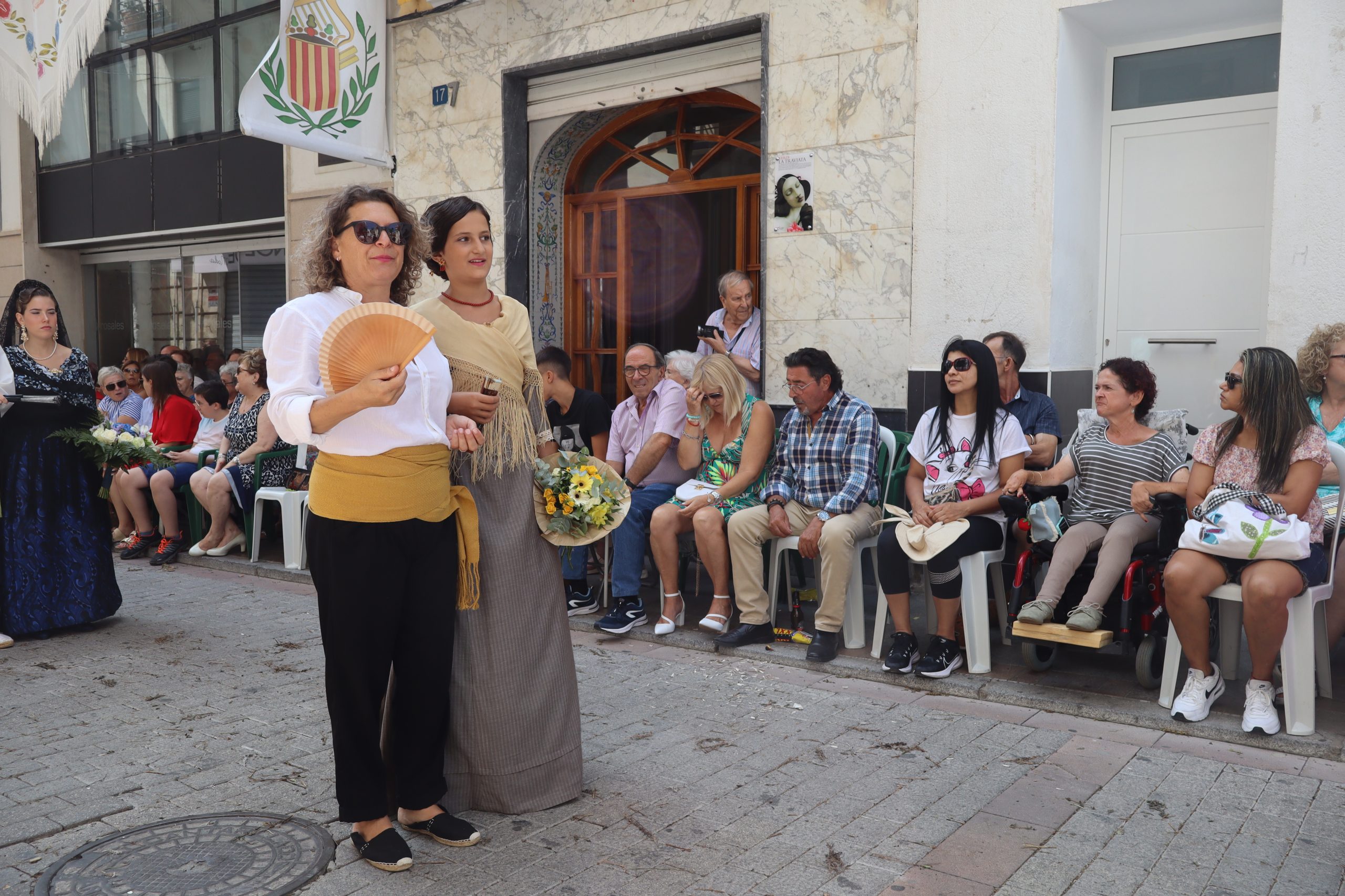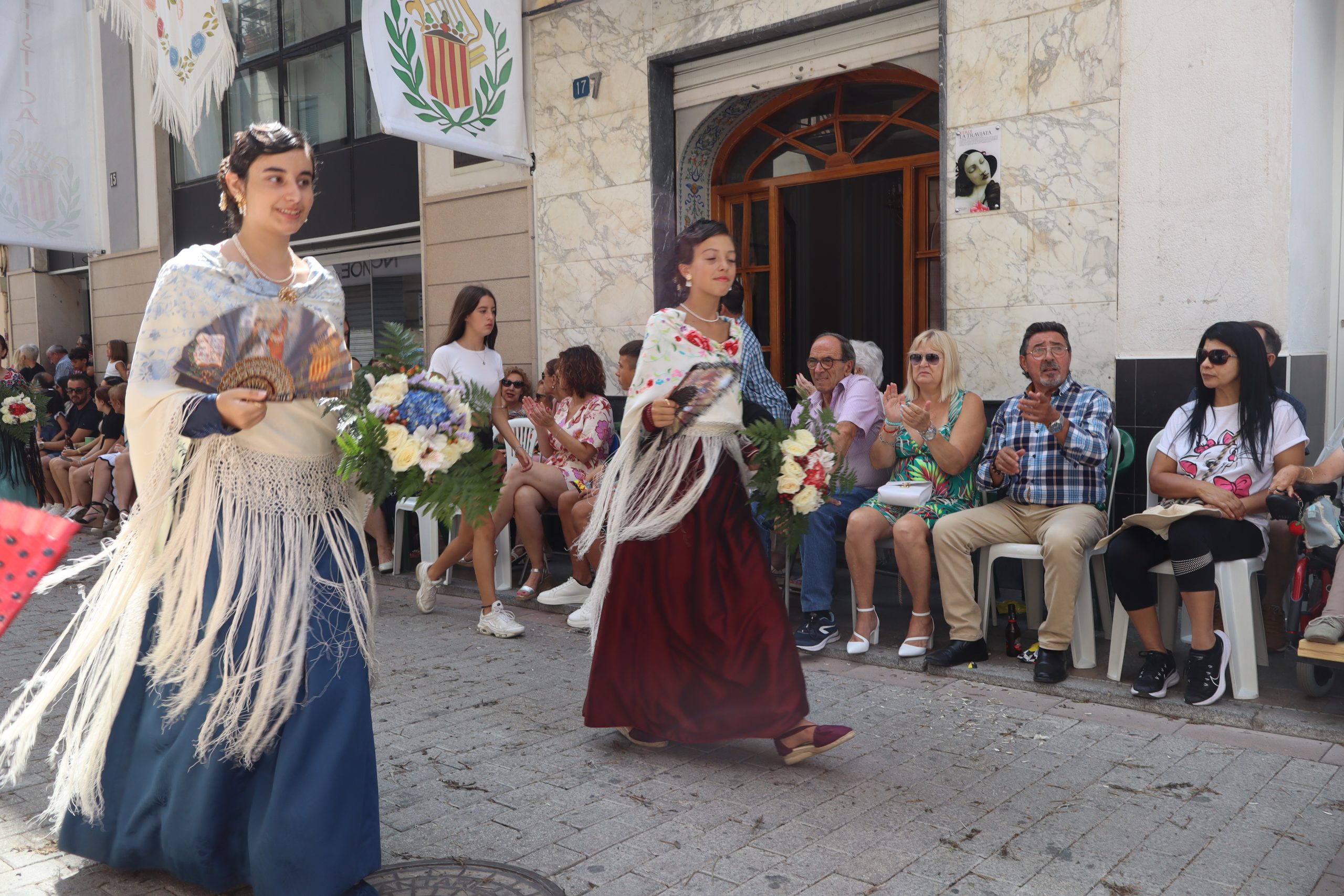 Previamente a que arrancara la Ofrenda, la Banda Sinfónica fue a recoger a sus domicilios a la Representante de La Artística, Paula Gisbert Barranco, a Virginia Miñana Carrascosa, Reina del Mantón 2023, y a la Reina Infantil, Sira Blanes García.