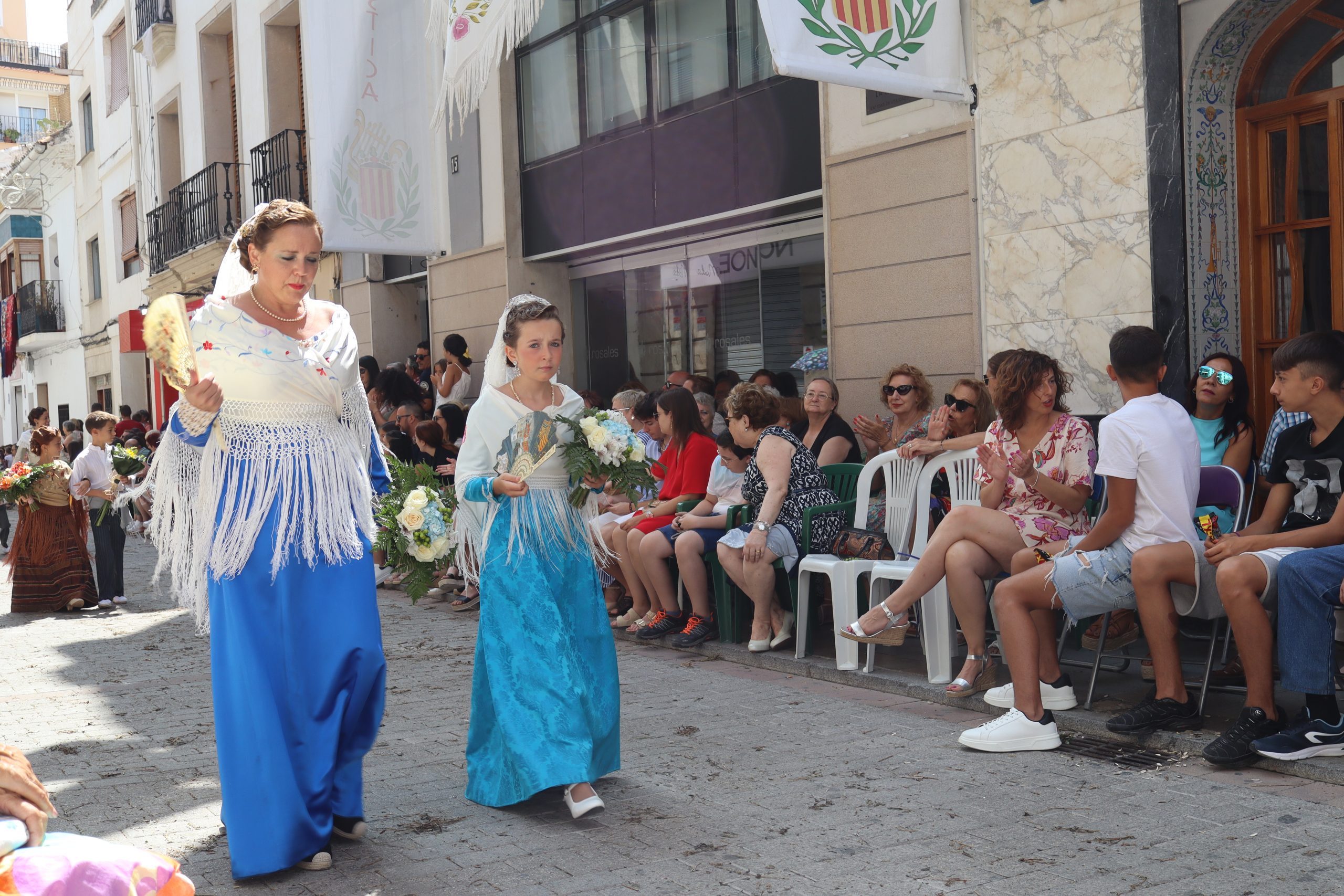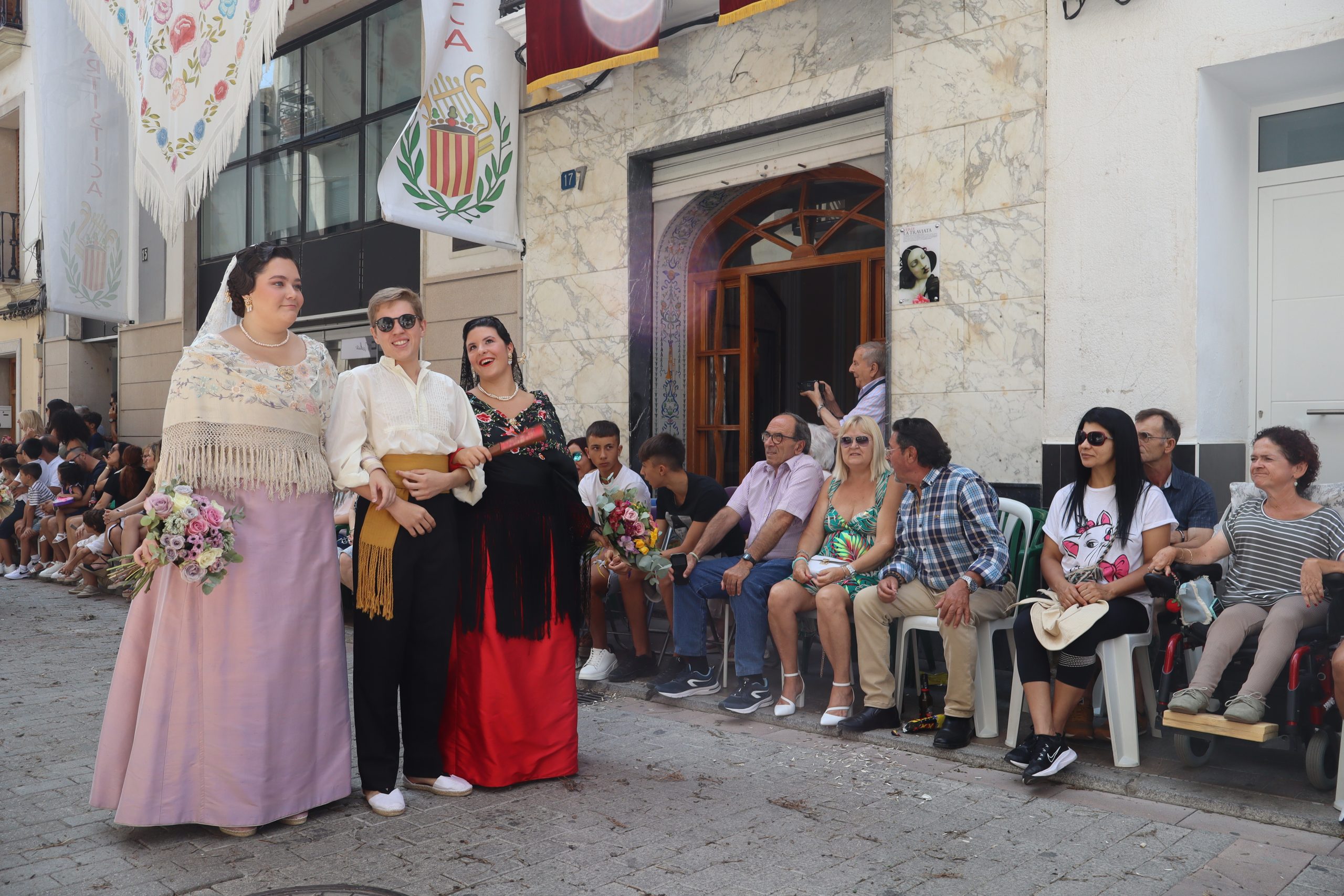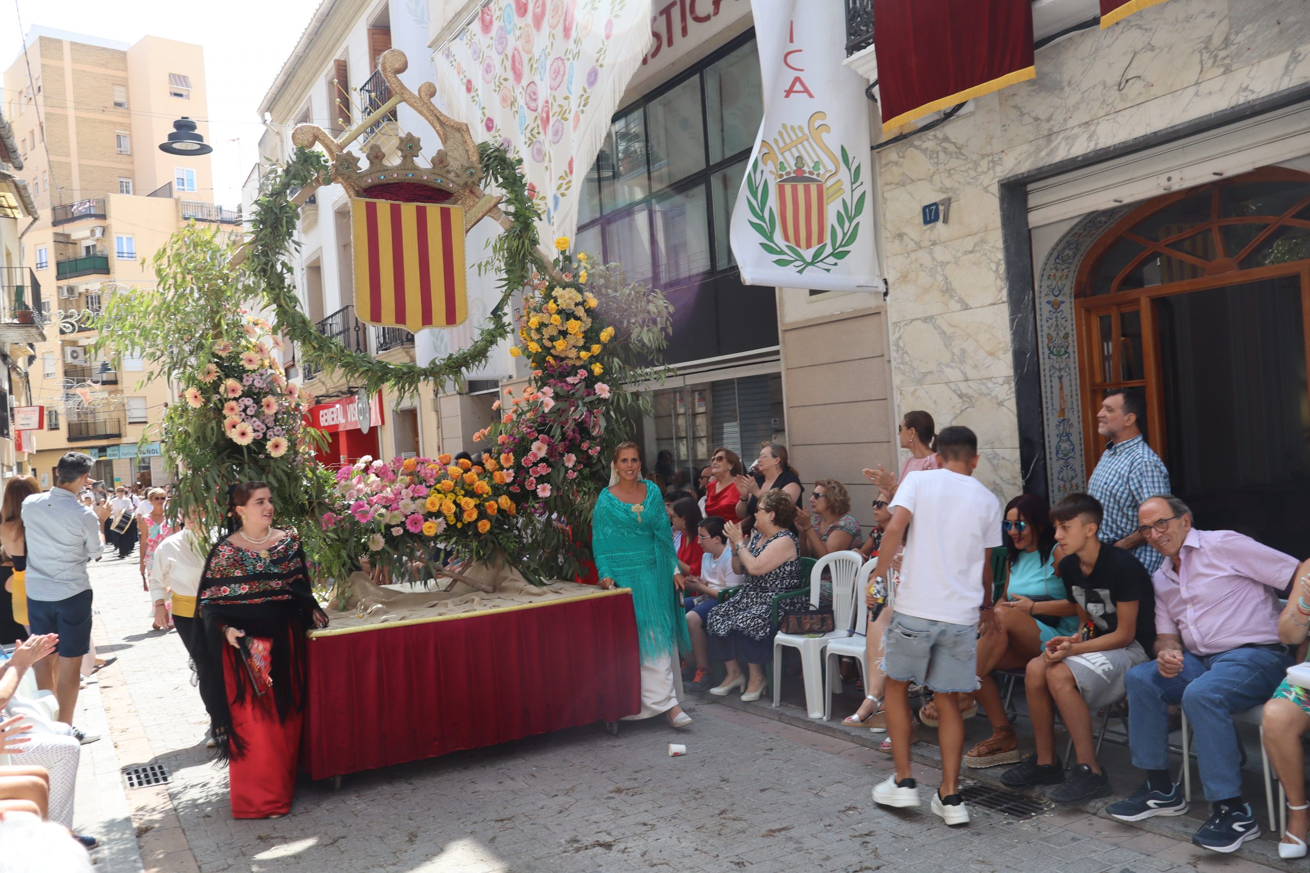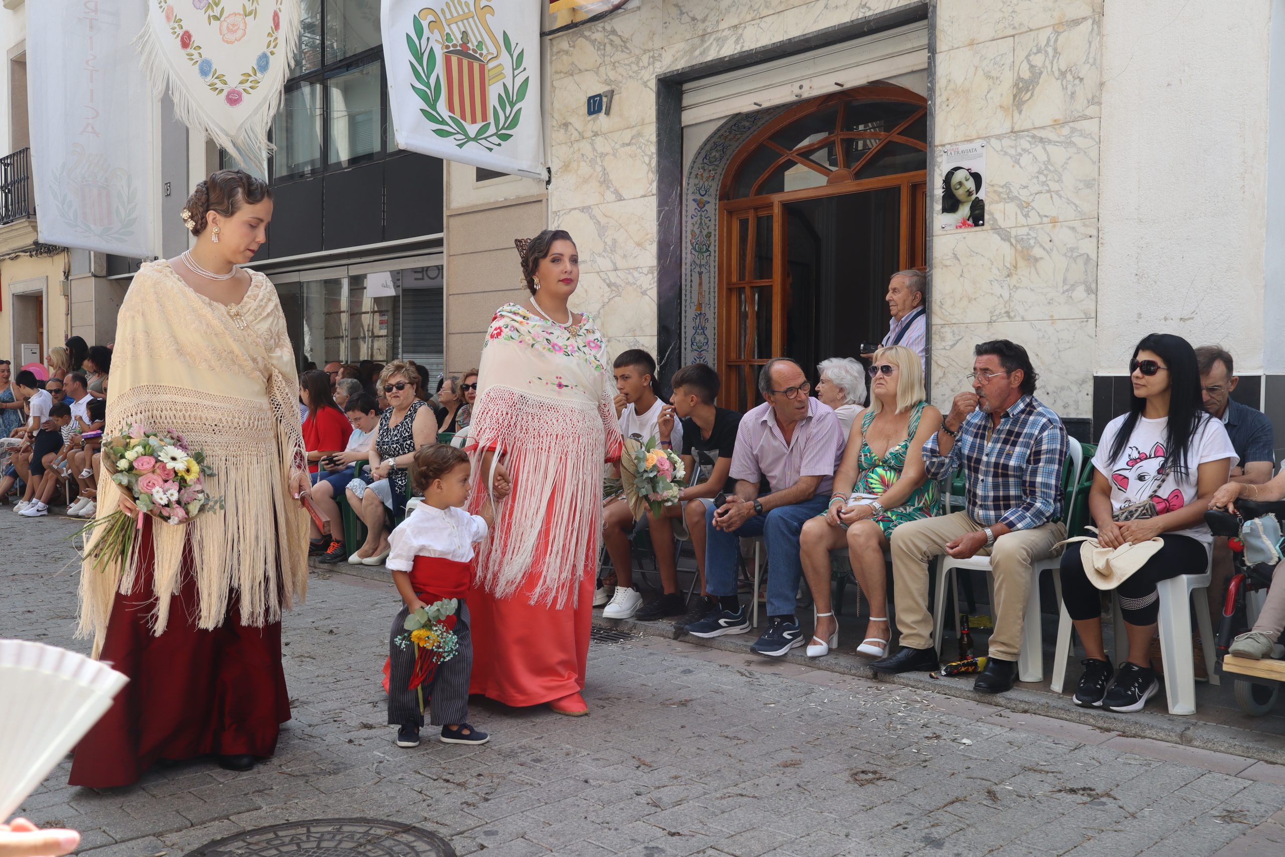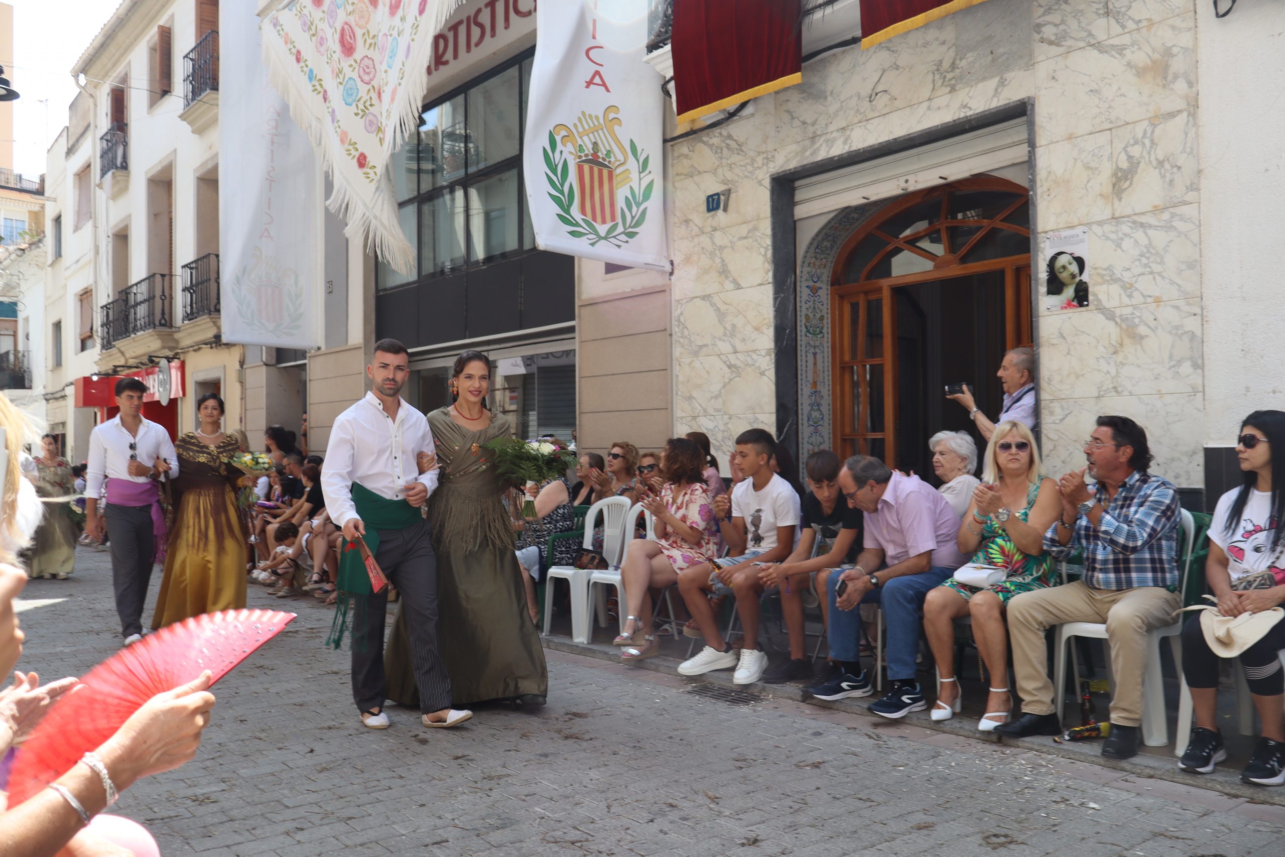 Previamente a que arrancara la Ofrenda, la Banda Sinfónica fue a recoger a sus domicilios a la Representante de La Artística, Paula Gisbert Barranco, a Virginia Miñana Carrascosa, Reina del Mantón 2023, y a la Reina Infantil, Sira Blanes García.