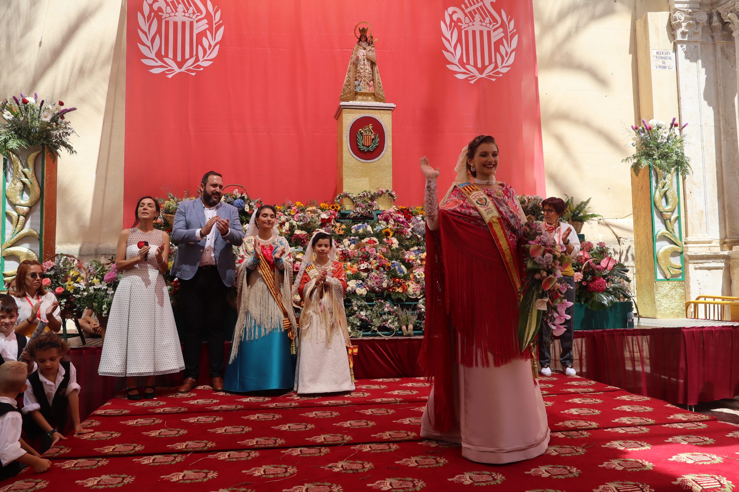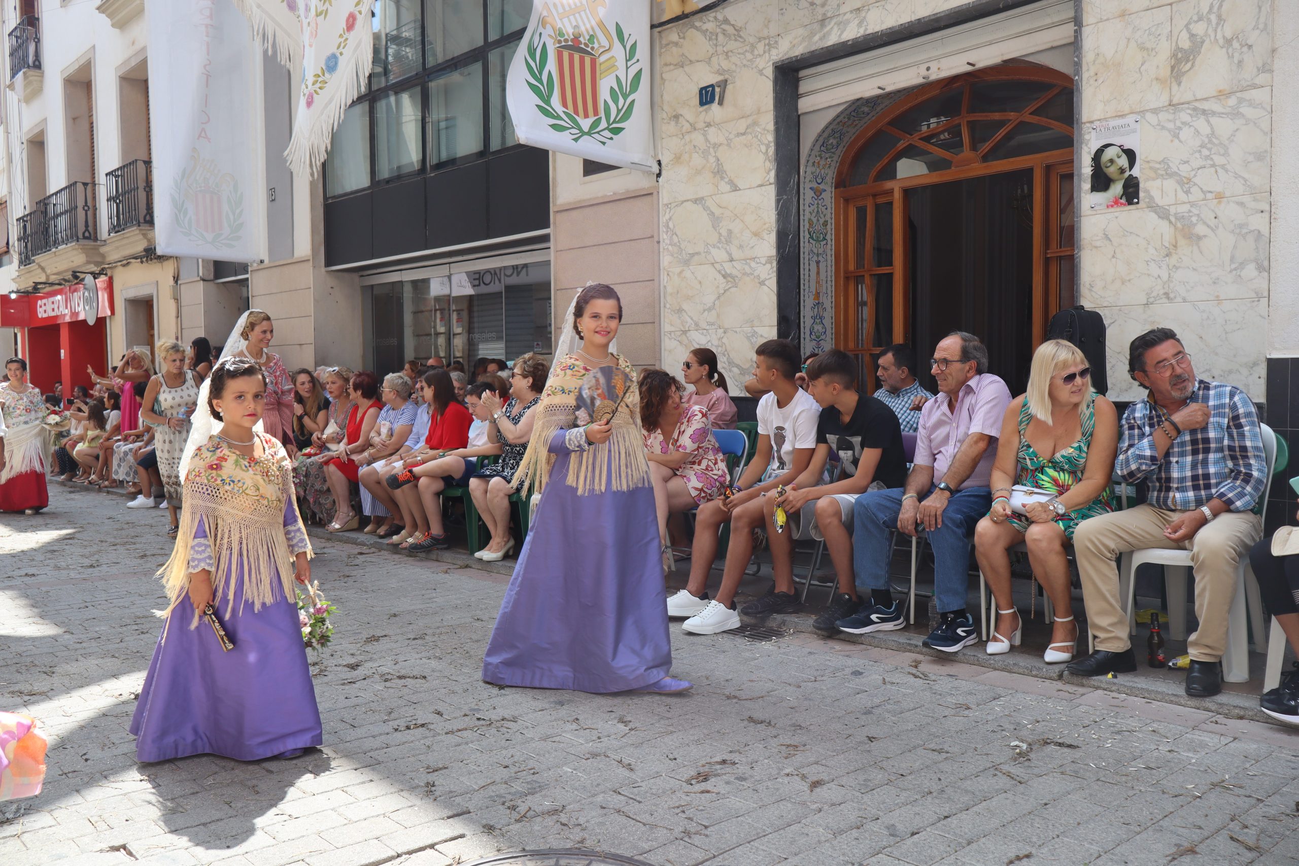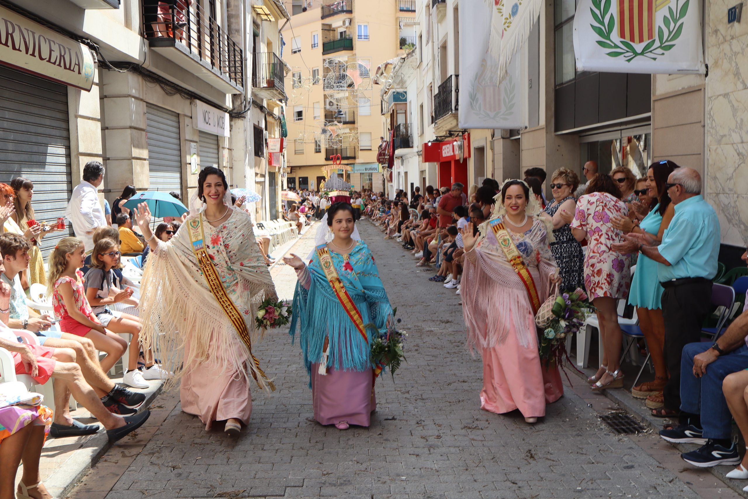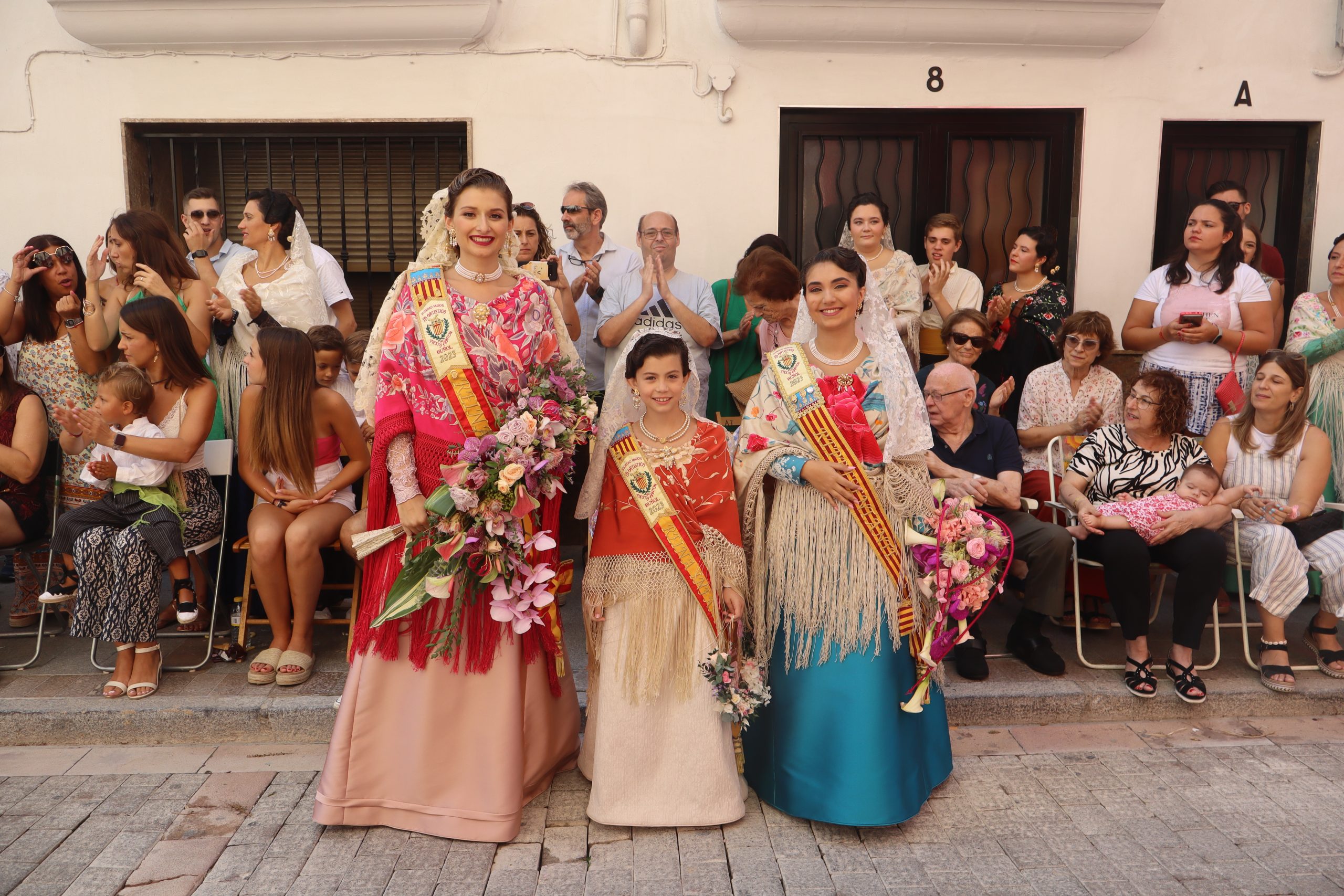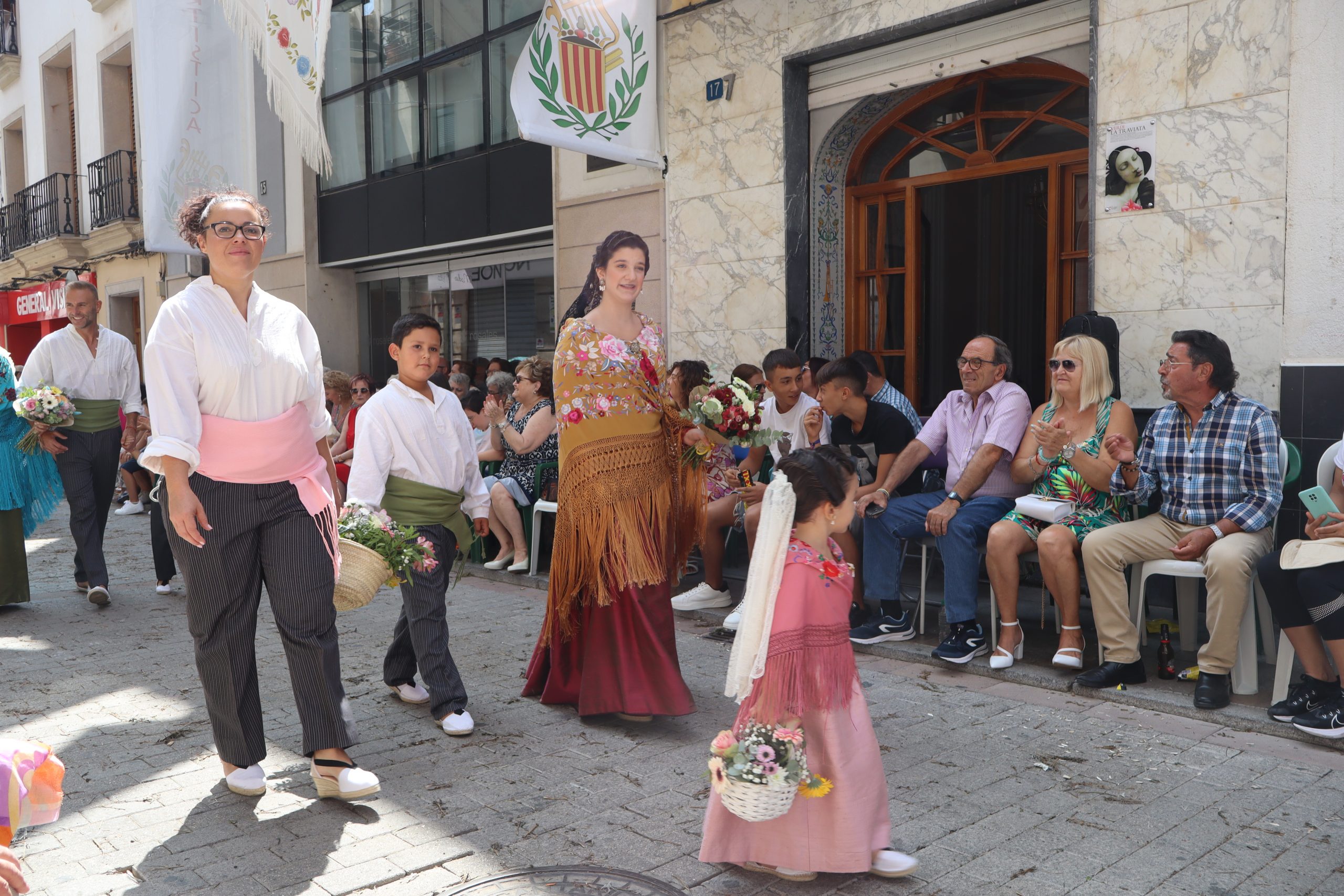 Previamente a que arrancara la Ofrenda, la Banda Sinfónica fue a recoger a sus domicilios a la Representante de La Artística, Paula Gisbert Barranco, a Virginia Miñana Carrascosa, Reina del Mantón 2023, y a la Reina Infantil, Sira Blanes García.