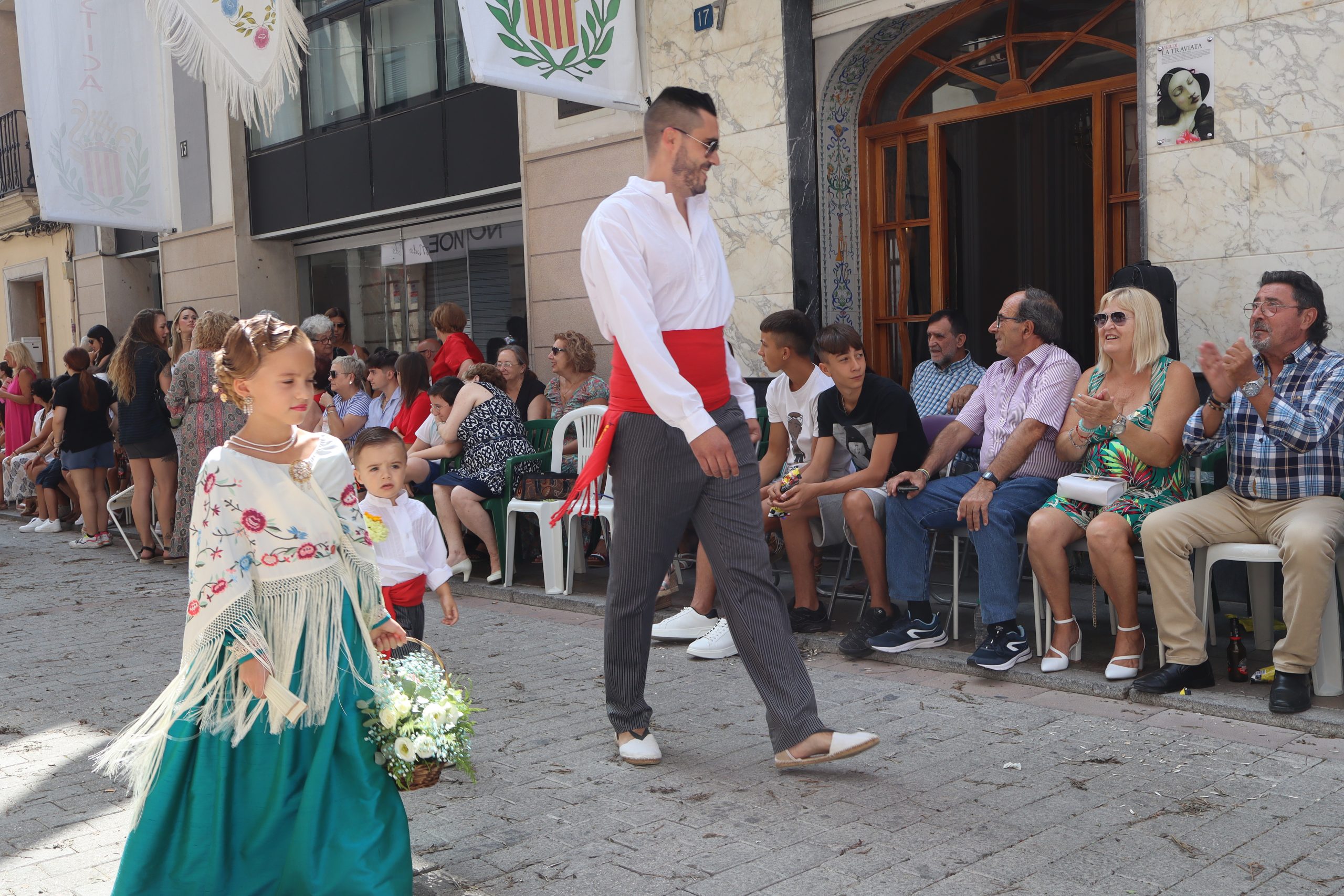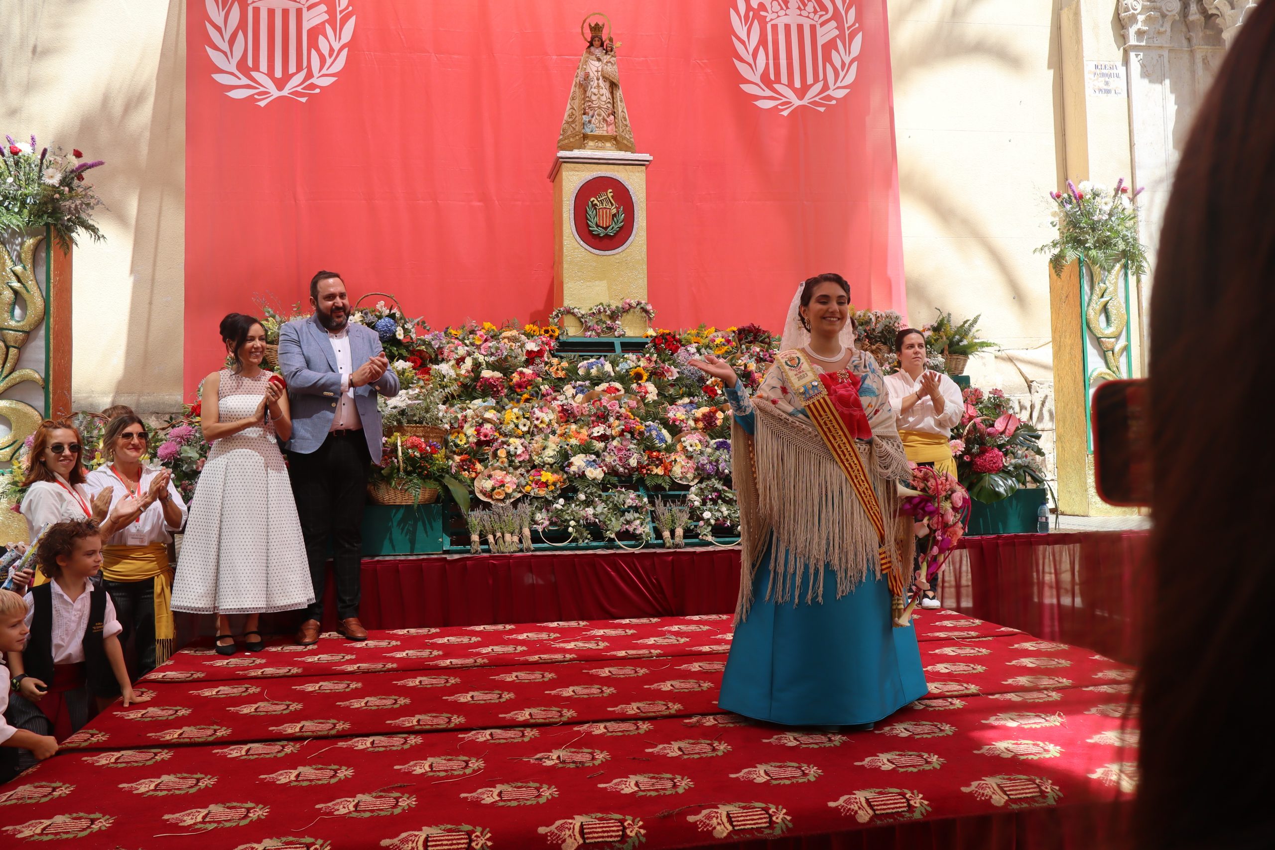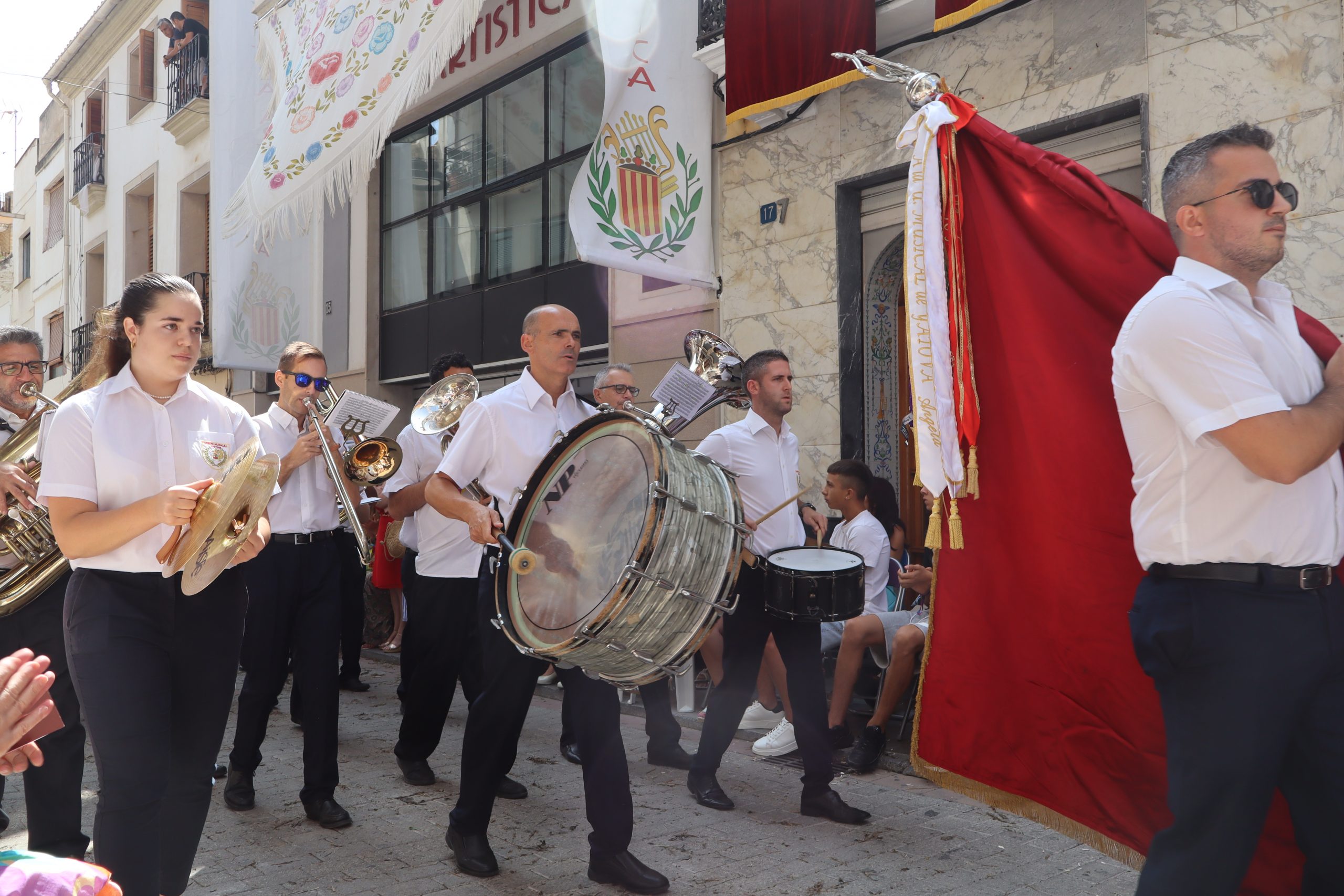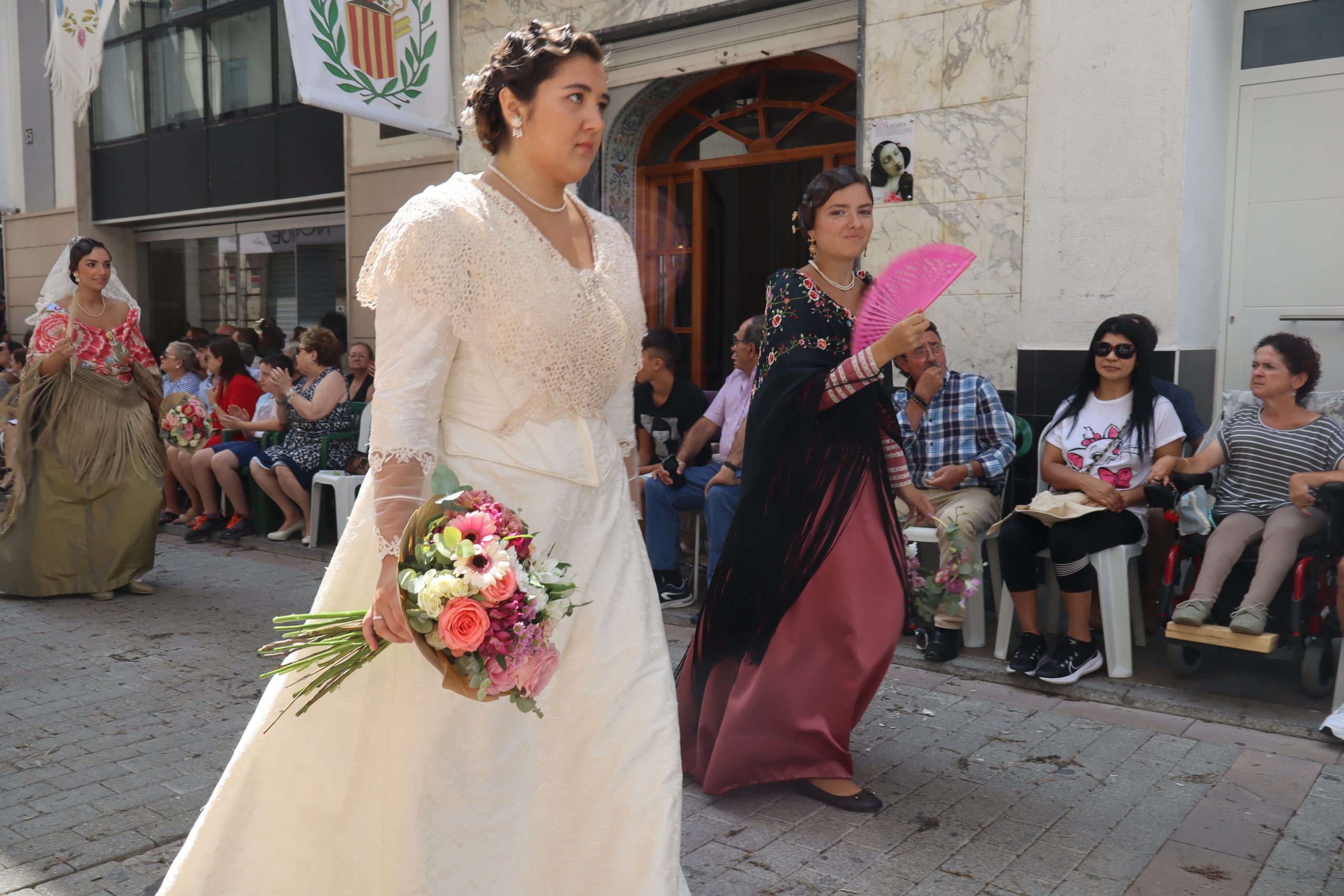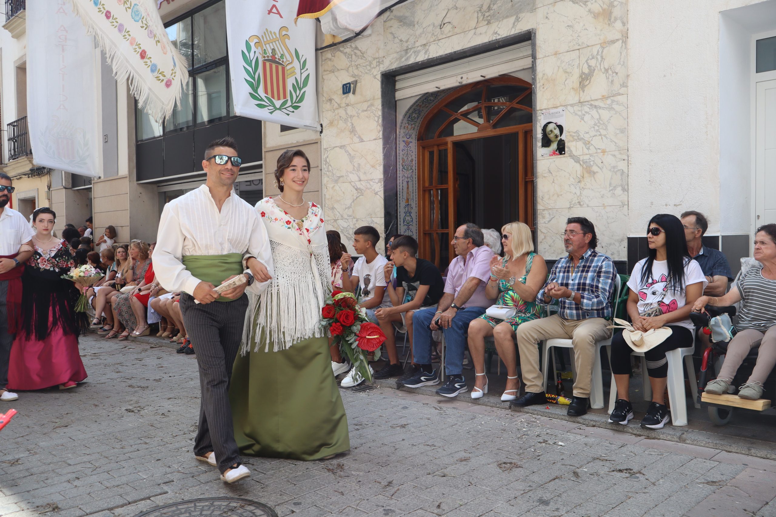 Previamente a que arrancara la Ofrenda, la Banda Sinfónica fue a recoger a sus domicilios a la Representante de La Artística, Paula Gisbert Barranco, a Virginia Miñana Carrascosa, Reina del Mantón 2023, y a la Reina Infantil, Sira Blanes García.