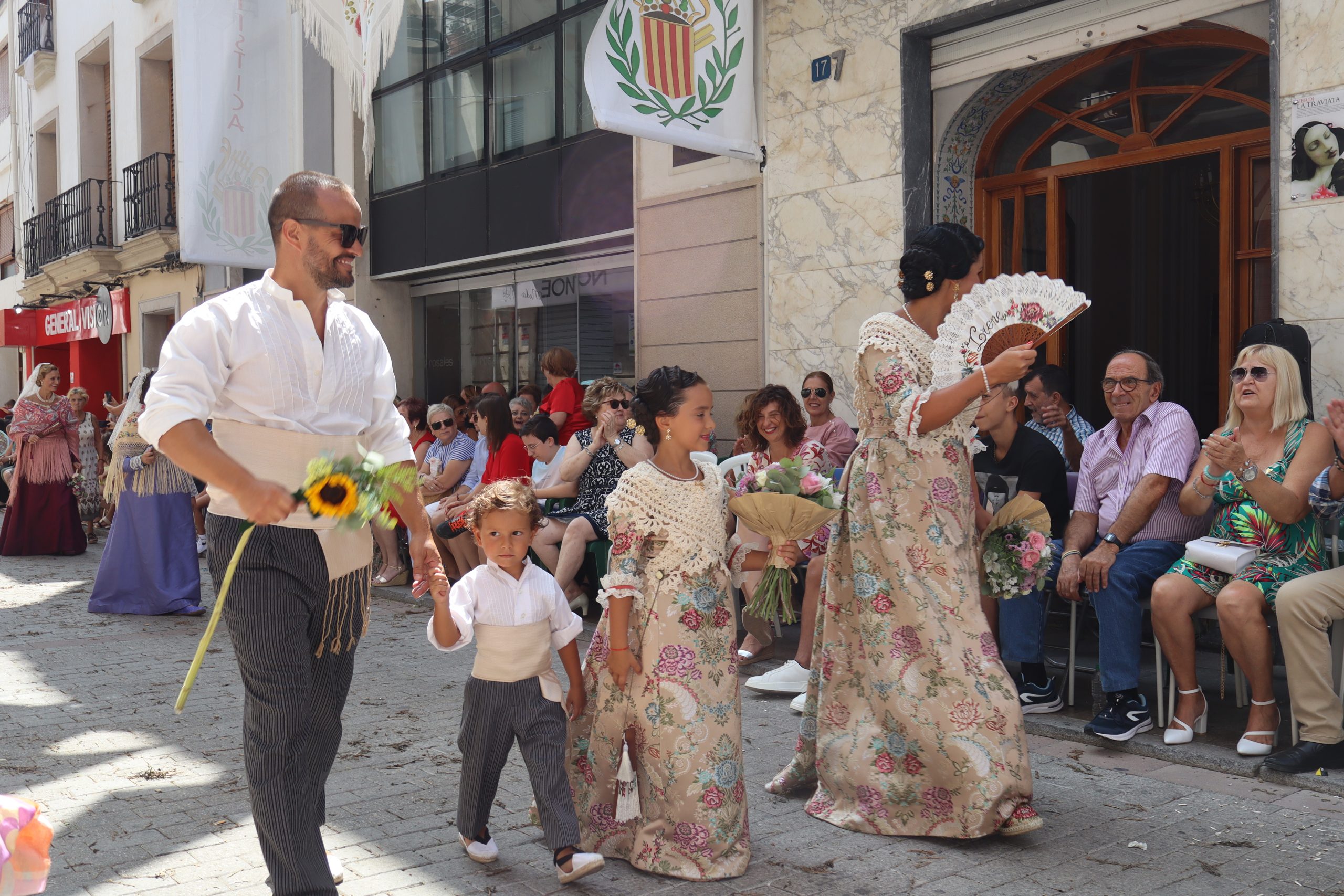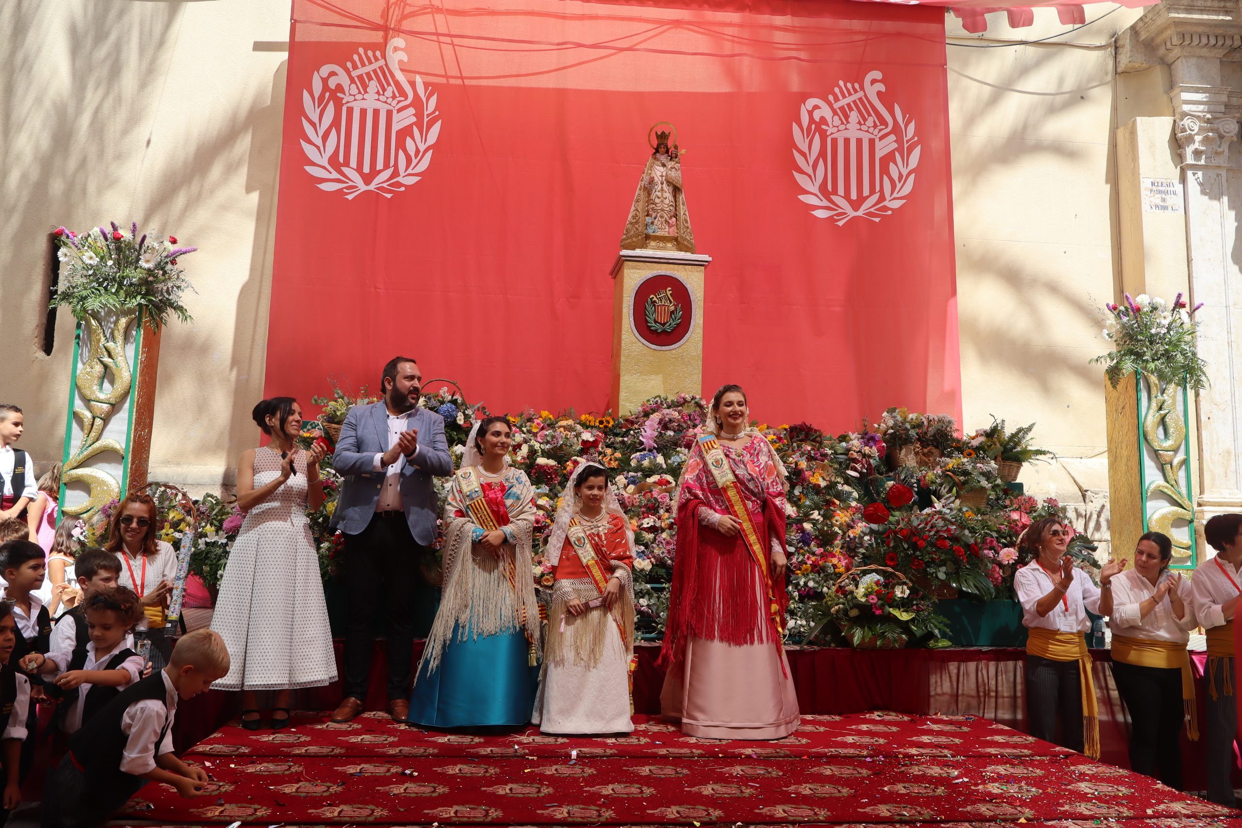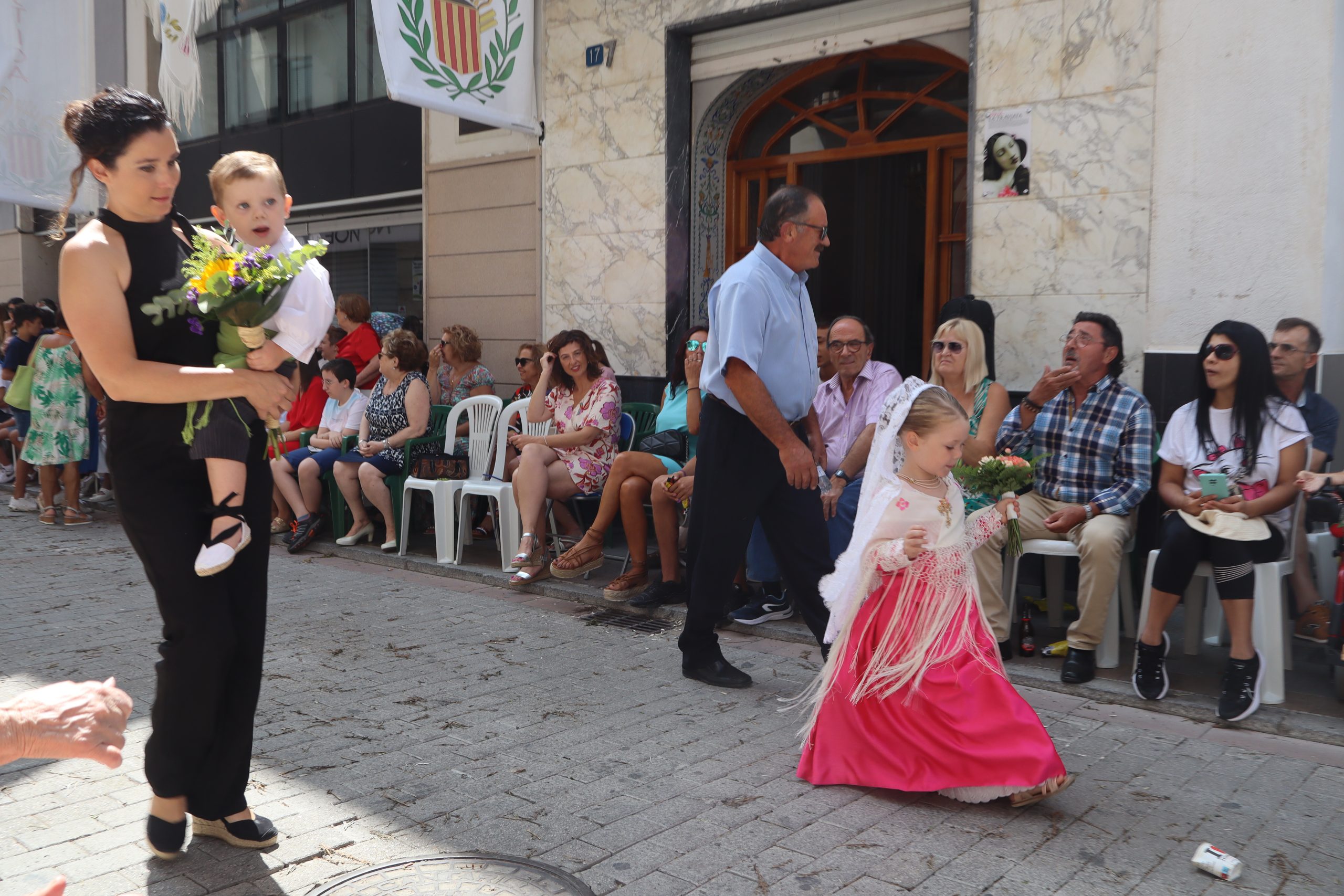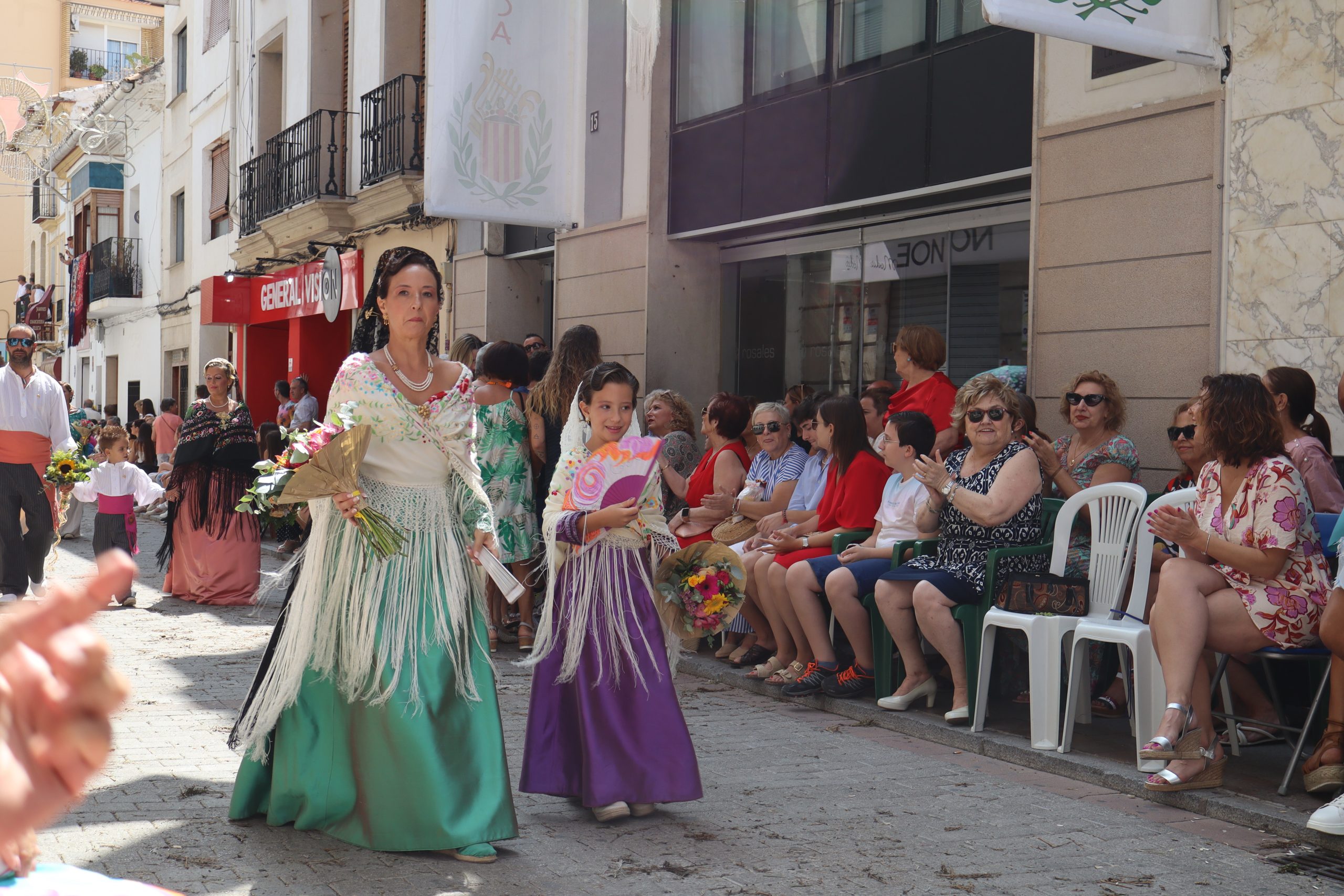 Previamente a que arrancara la Ofrenda, la Banda Sinfónica fue a recoger a sus domicilios a la Representante de La Artística, Paula Gisbert Barranco, a Virginia Miñana Carrascosa, Reina del Mantón 2023, y a la Reina Infantil, Sira Blanes García.