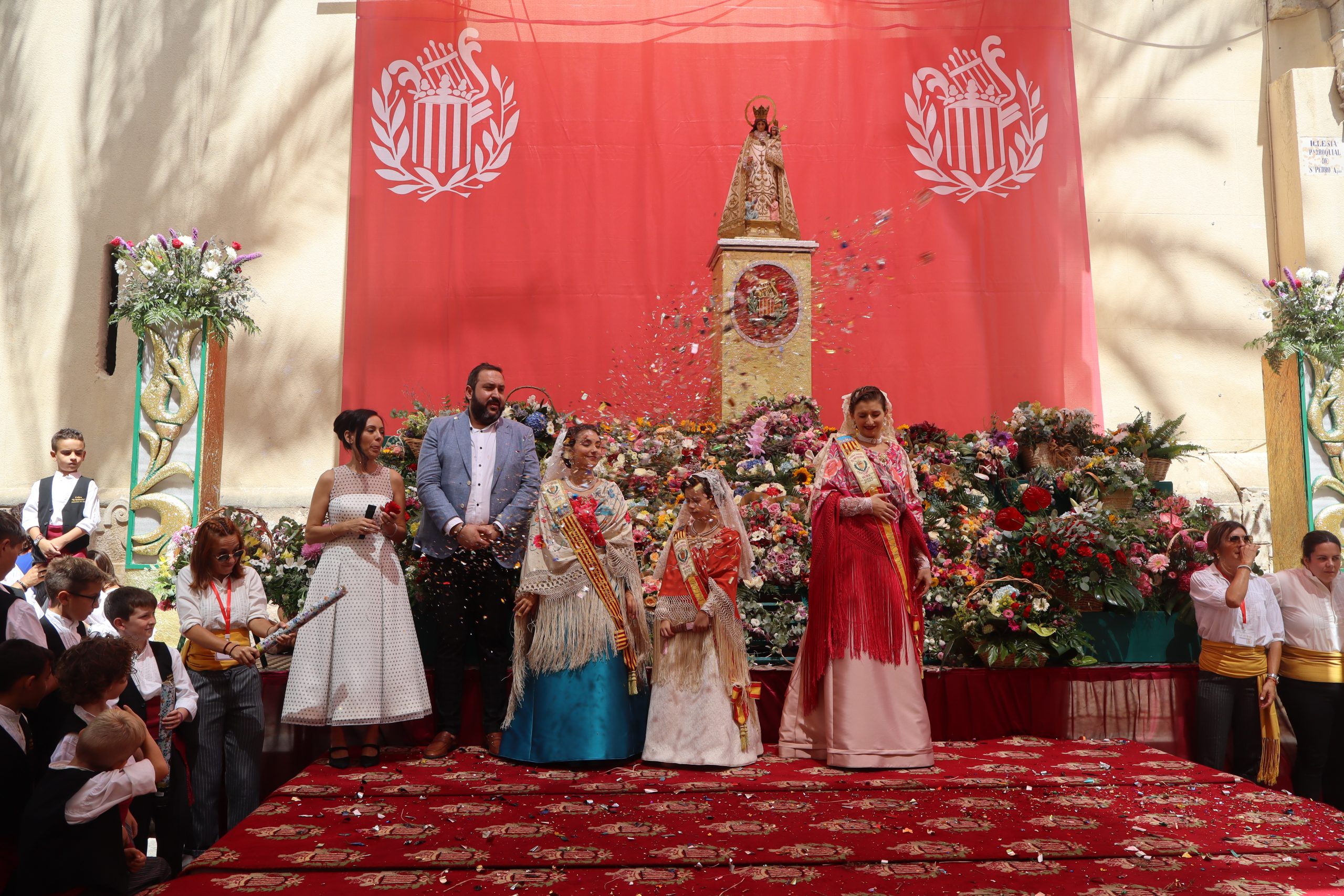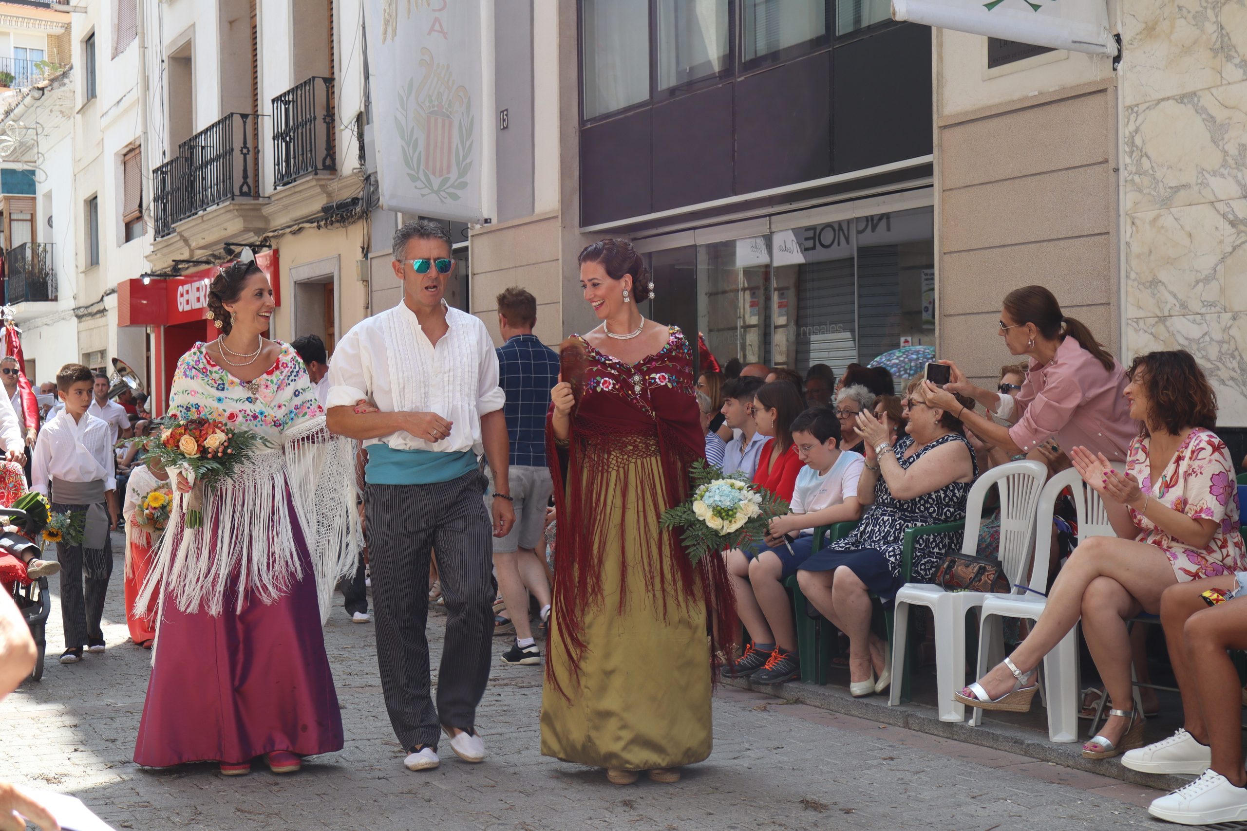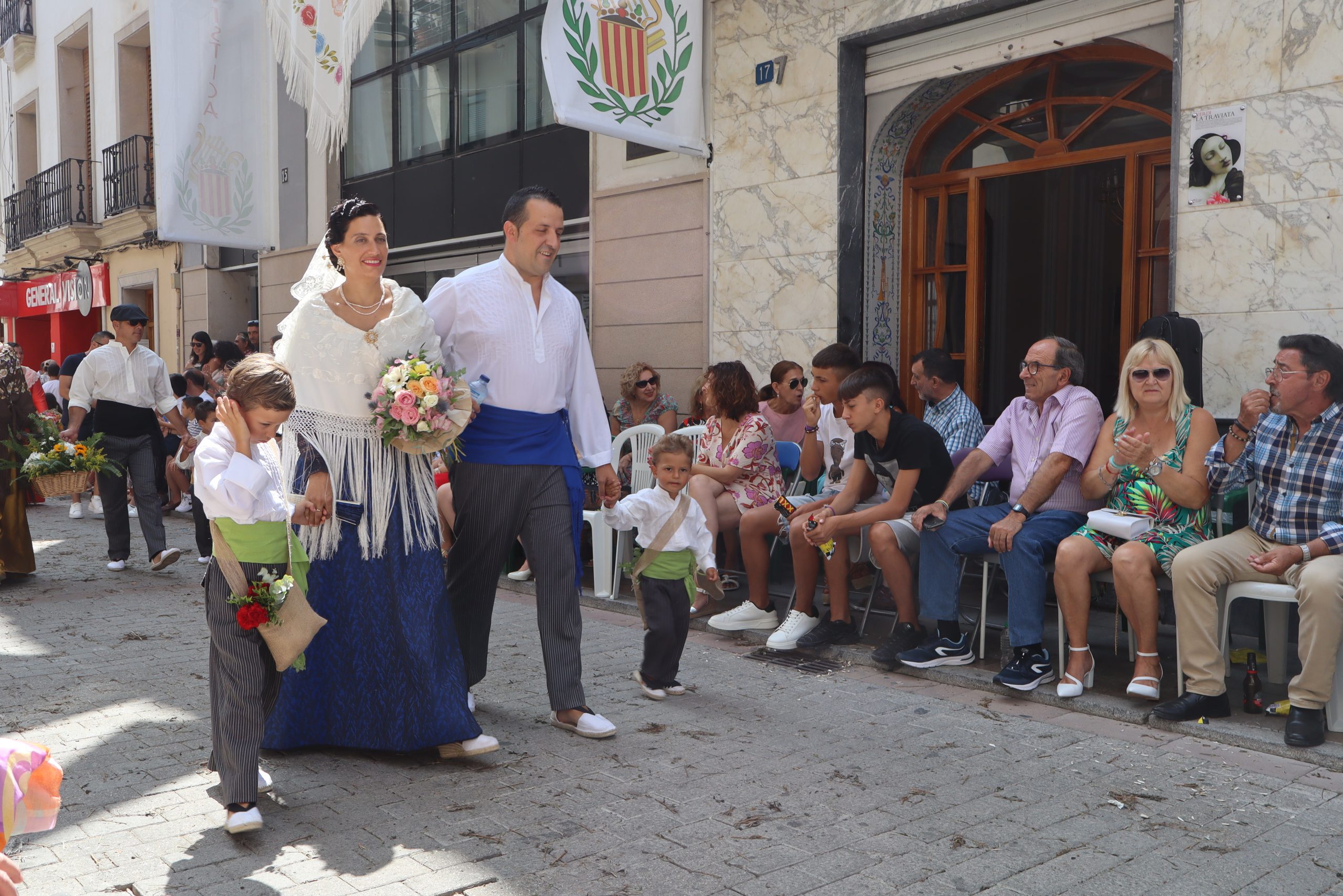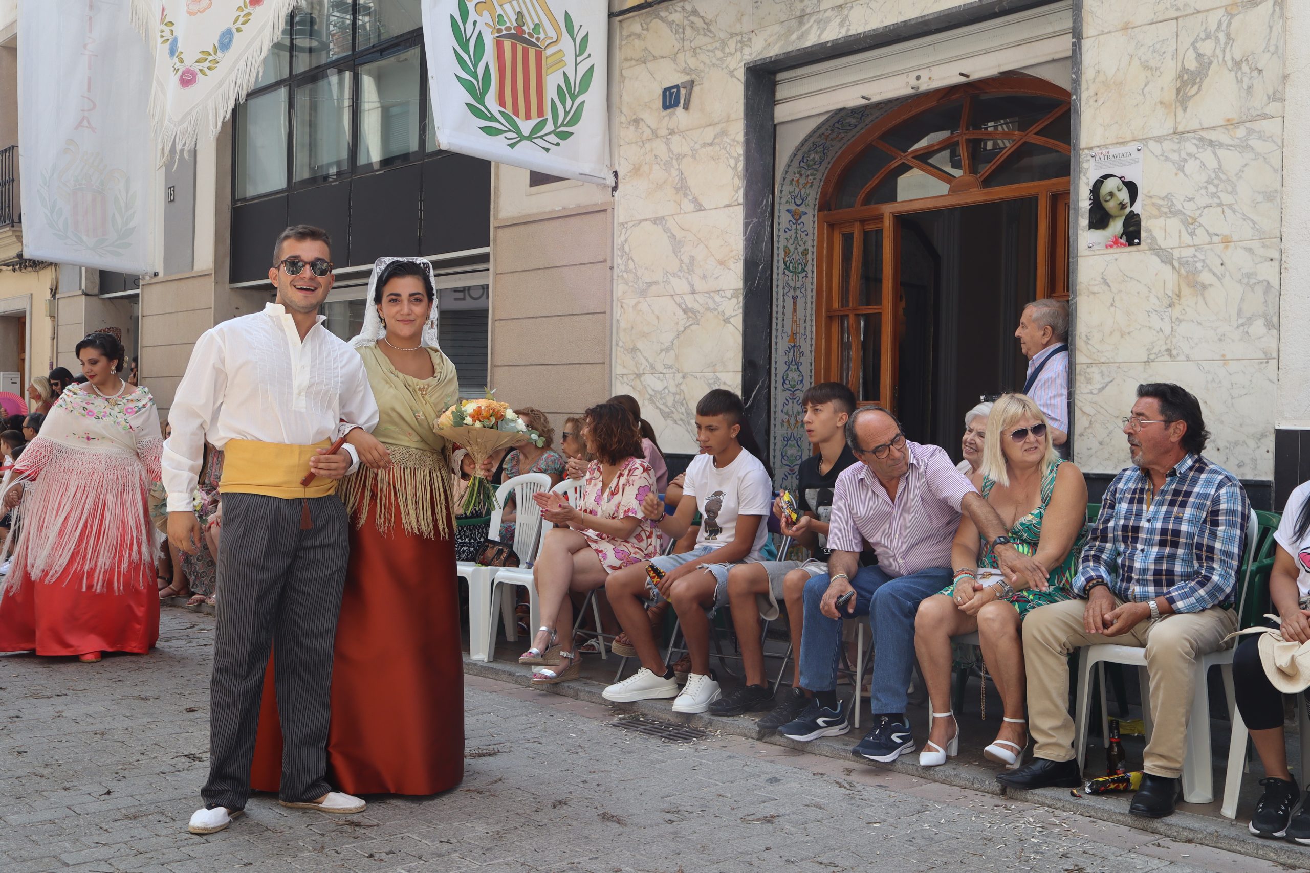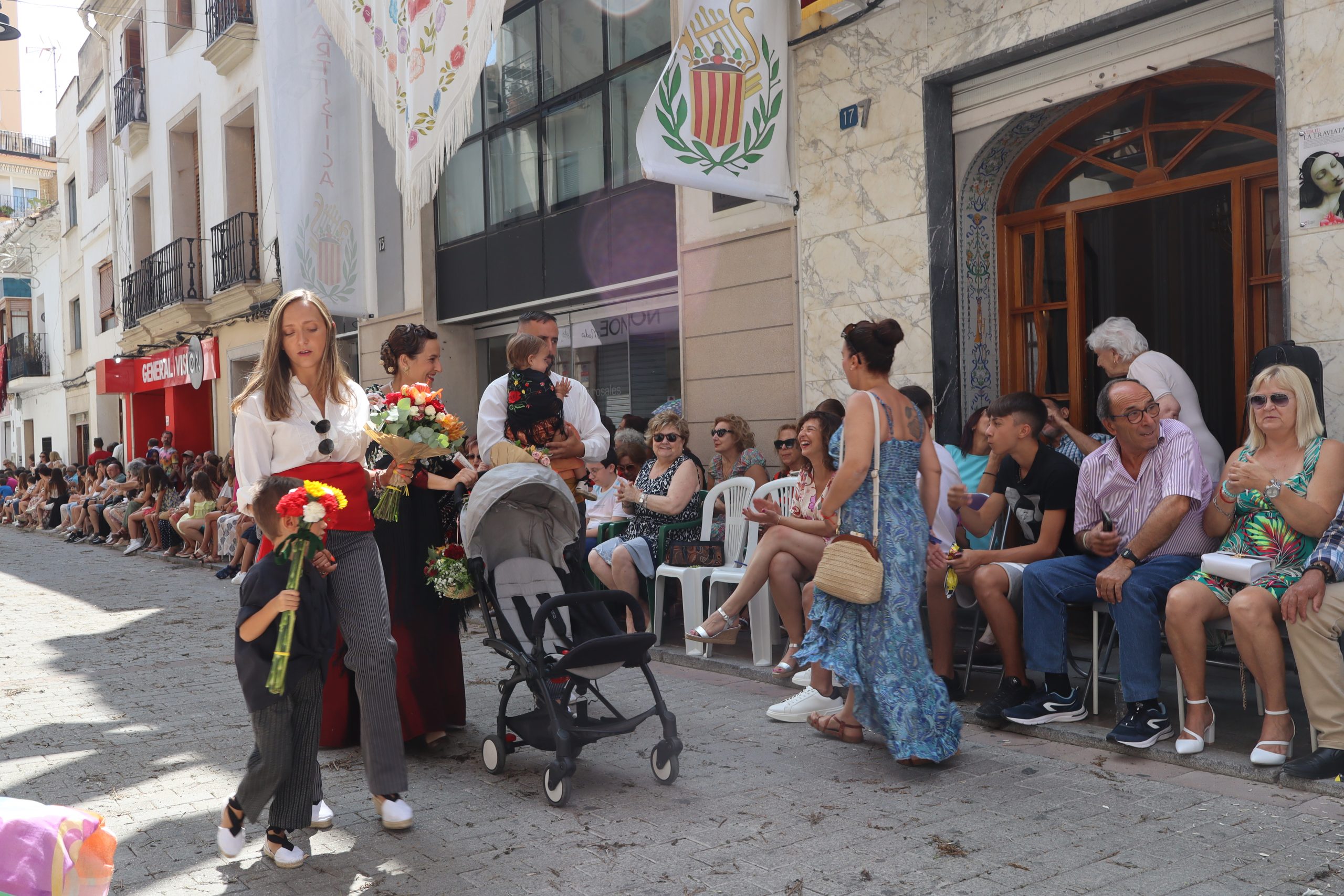 Previamente a que arrancara la Ofrenda, la Banda Sinfónica fue a recoger a sus domicilios a la Representante de La Artística, Paula Gisbert Barranco, a Virginia Miñana Carrascosa, Reina del Mantón 2023, y a la Reina Infantil, Sira Blanes García.