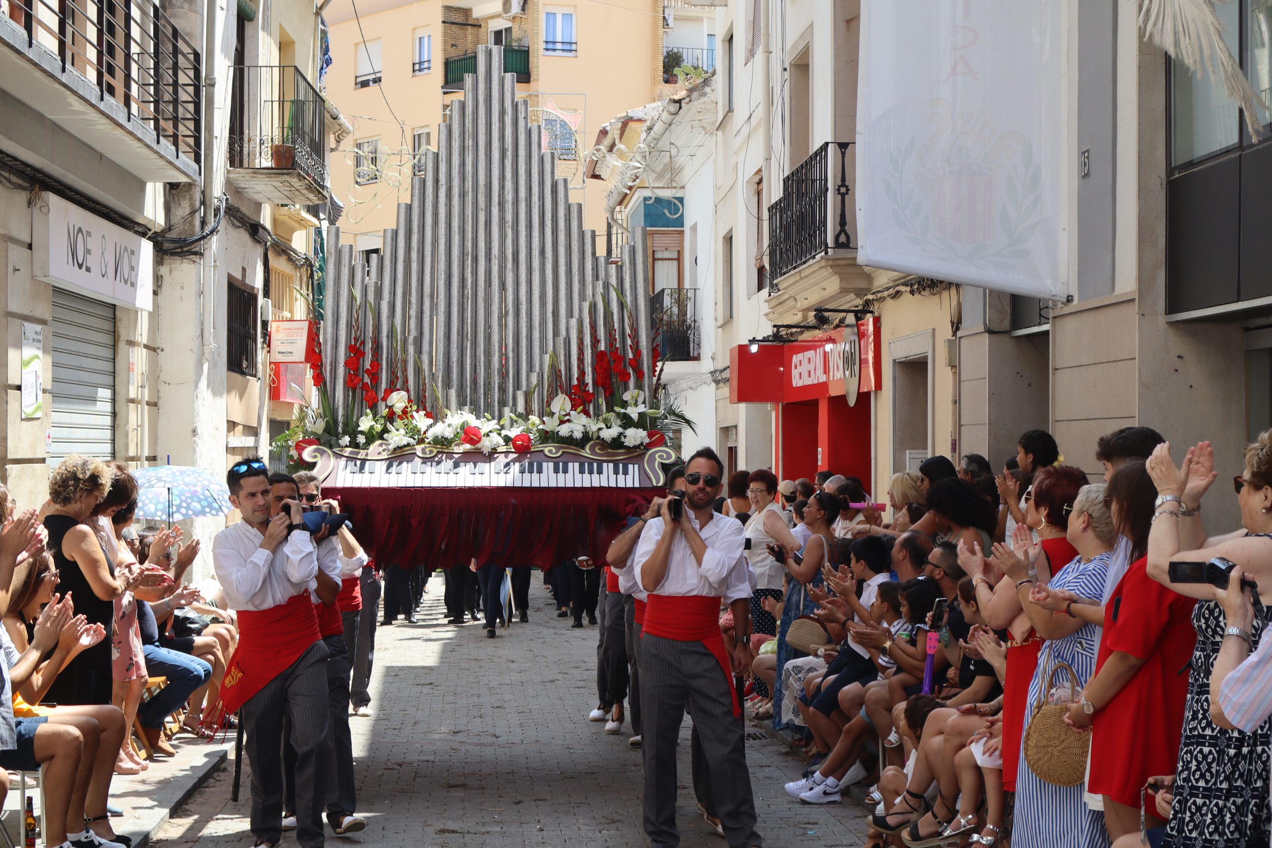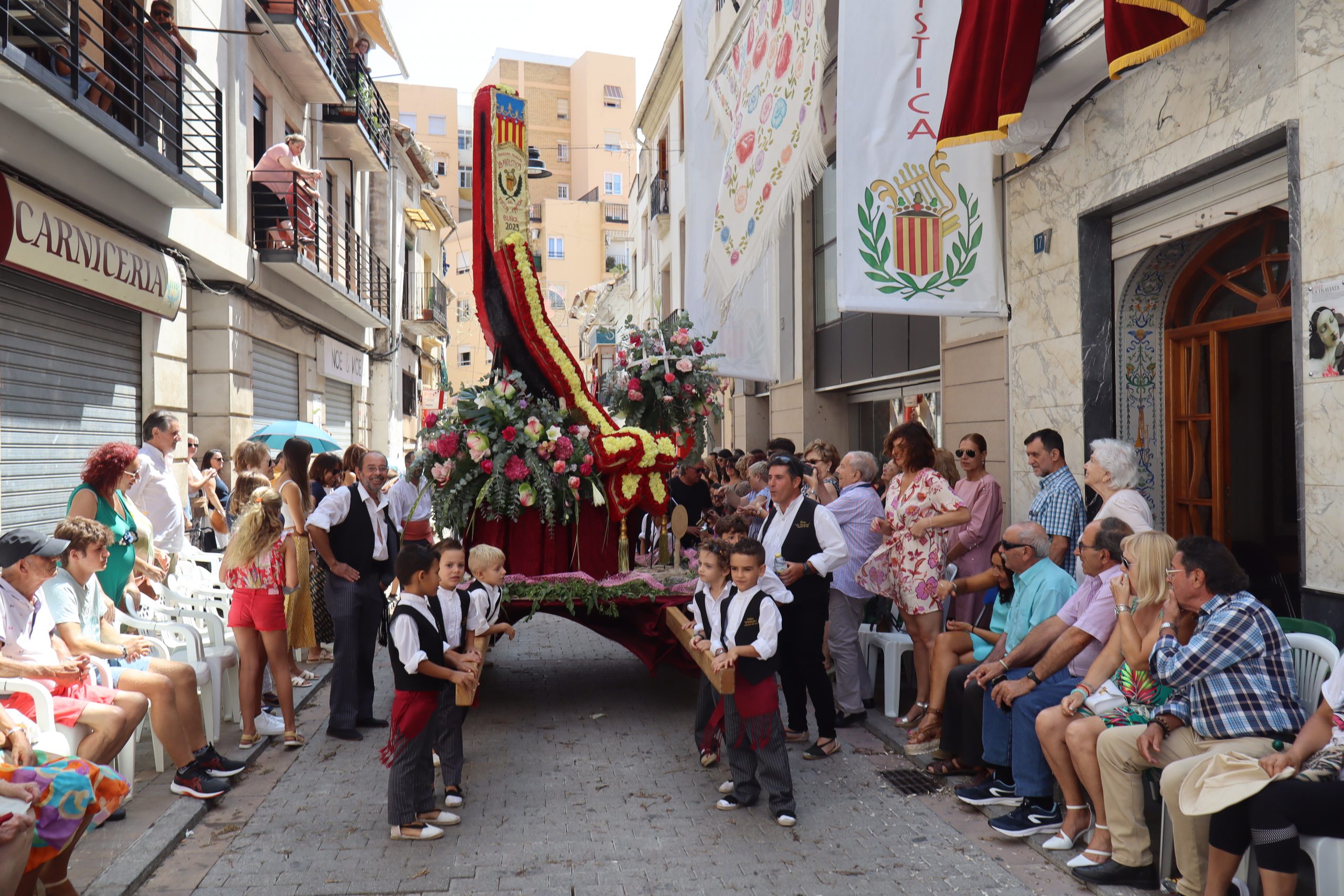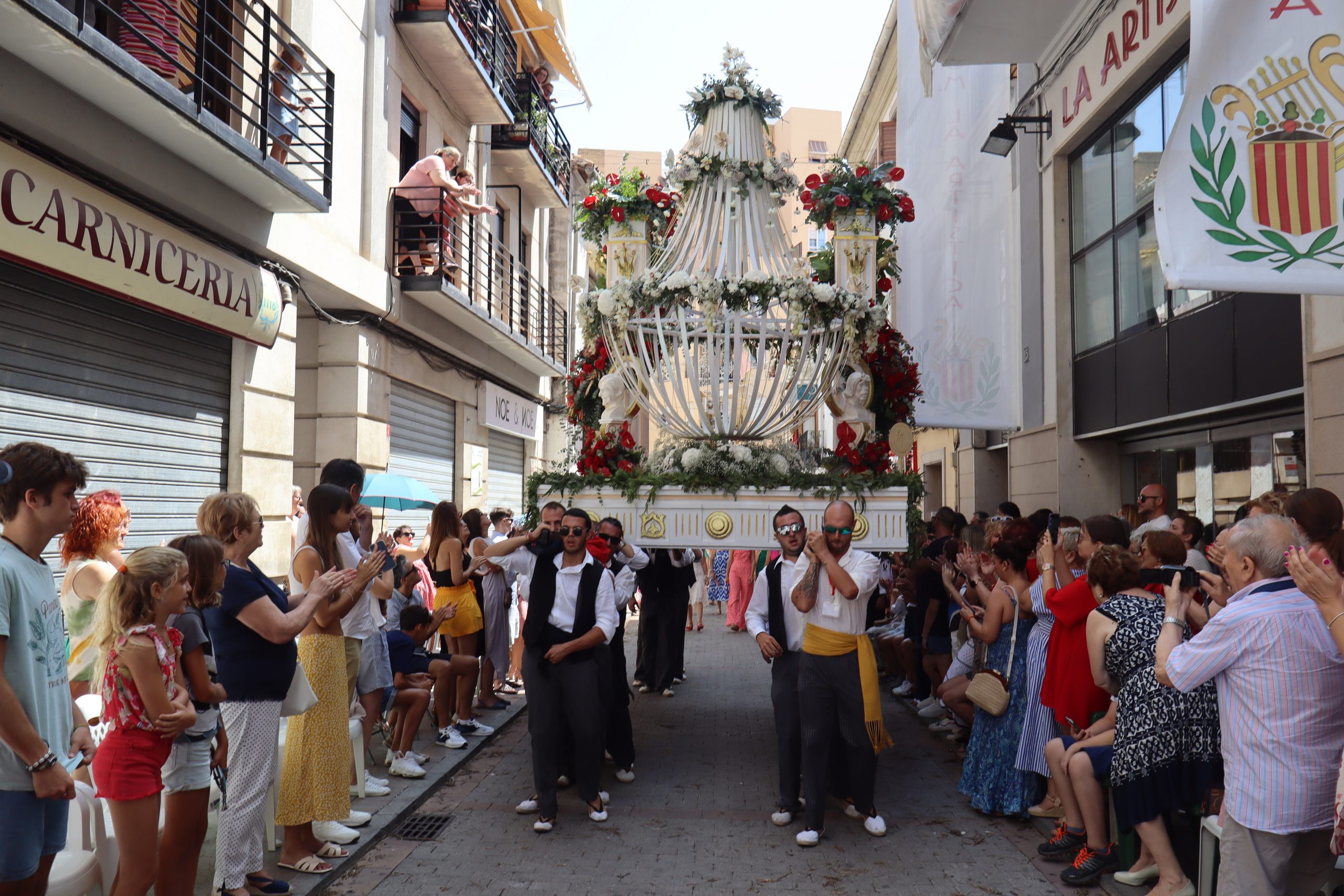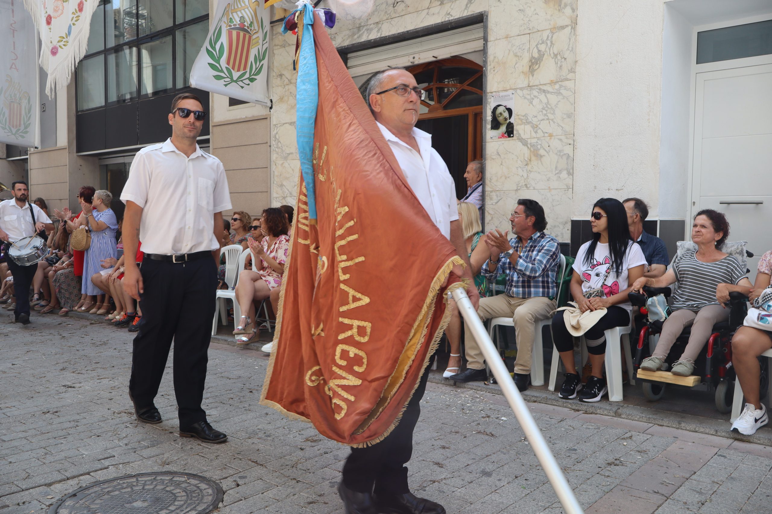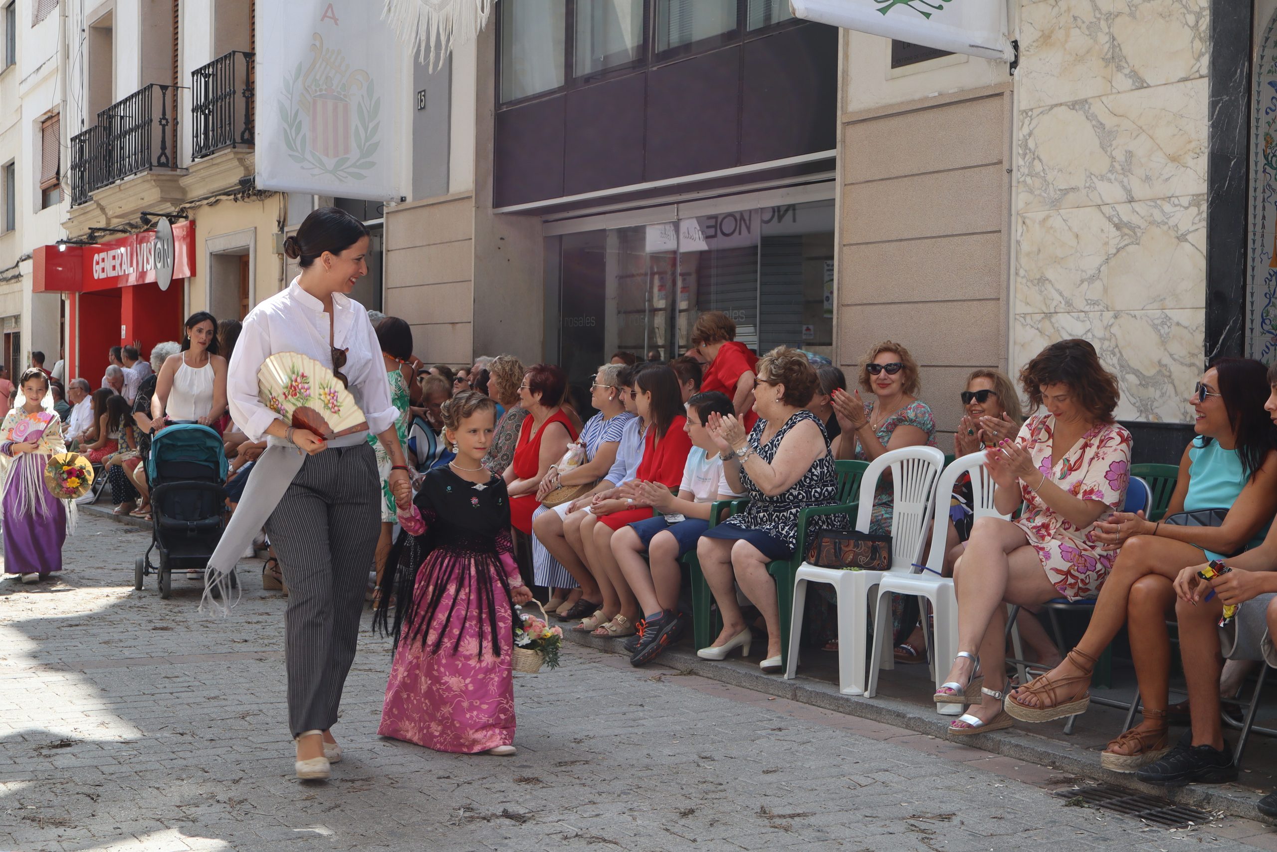 Previamente a que arrancara la Ofrenda, la Banda Sinfónica fue a recoger a sus domicilios a la Representante de La Artística, Paula Gisbert Barranco, a Virginia Miñana Carrascosa, Reina del Mantón 2023, y a la Reina Infantil, Sira Blanes García.