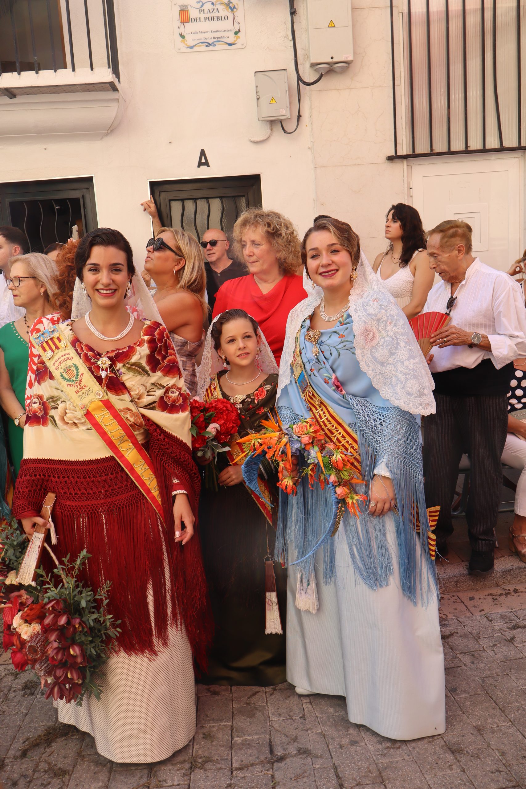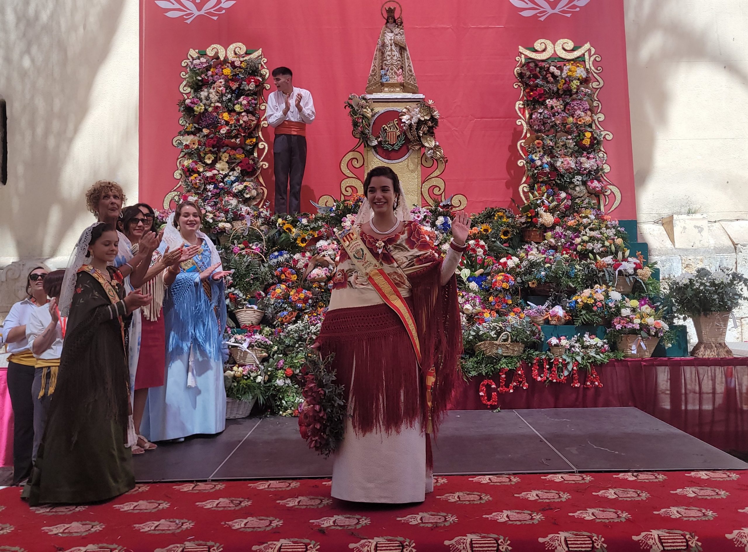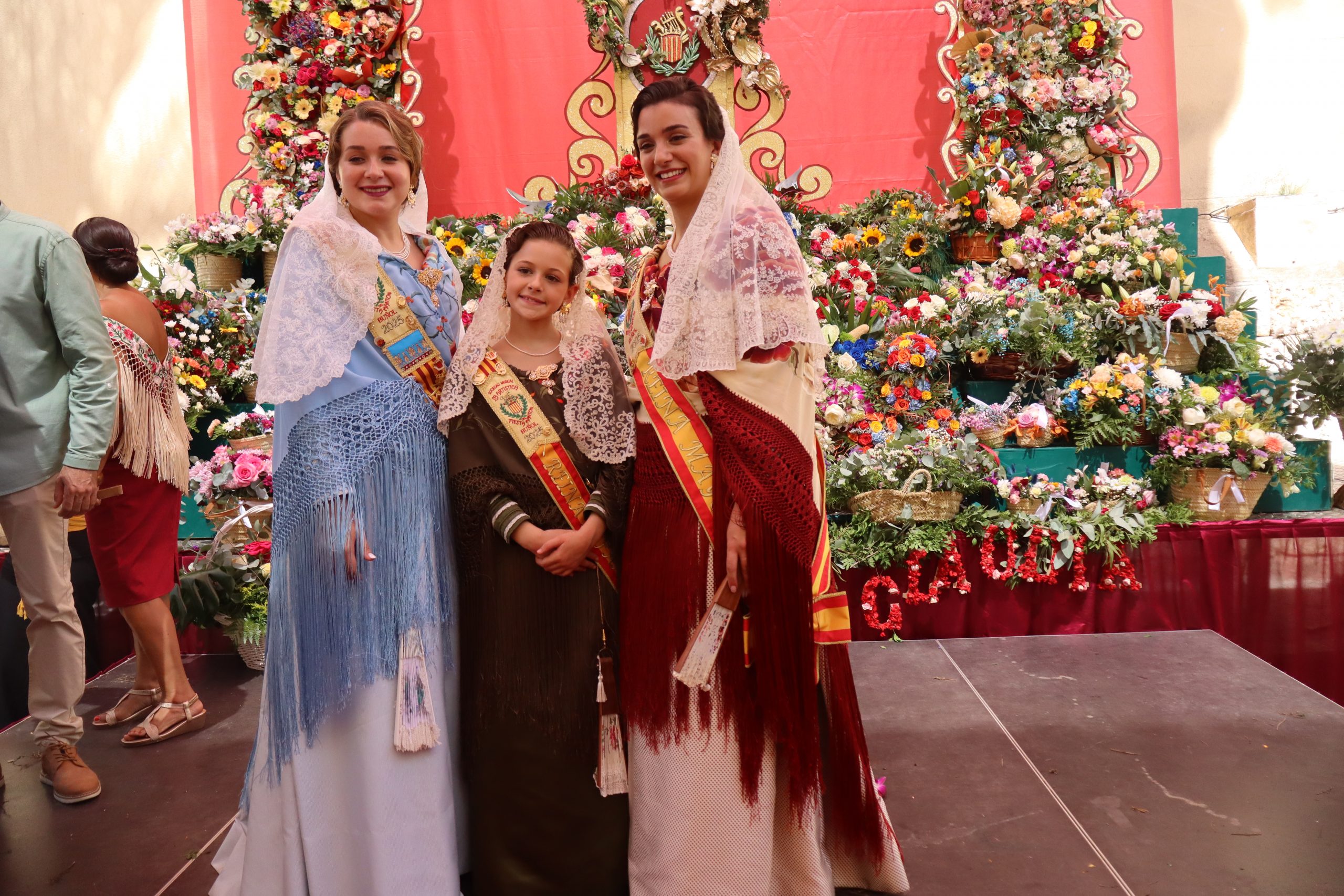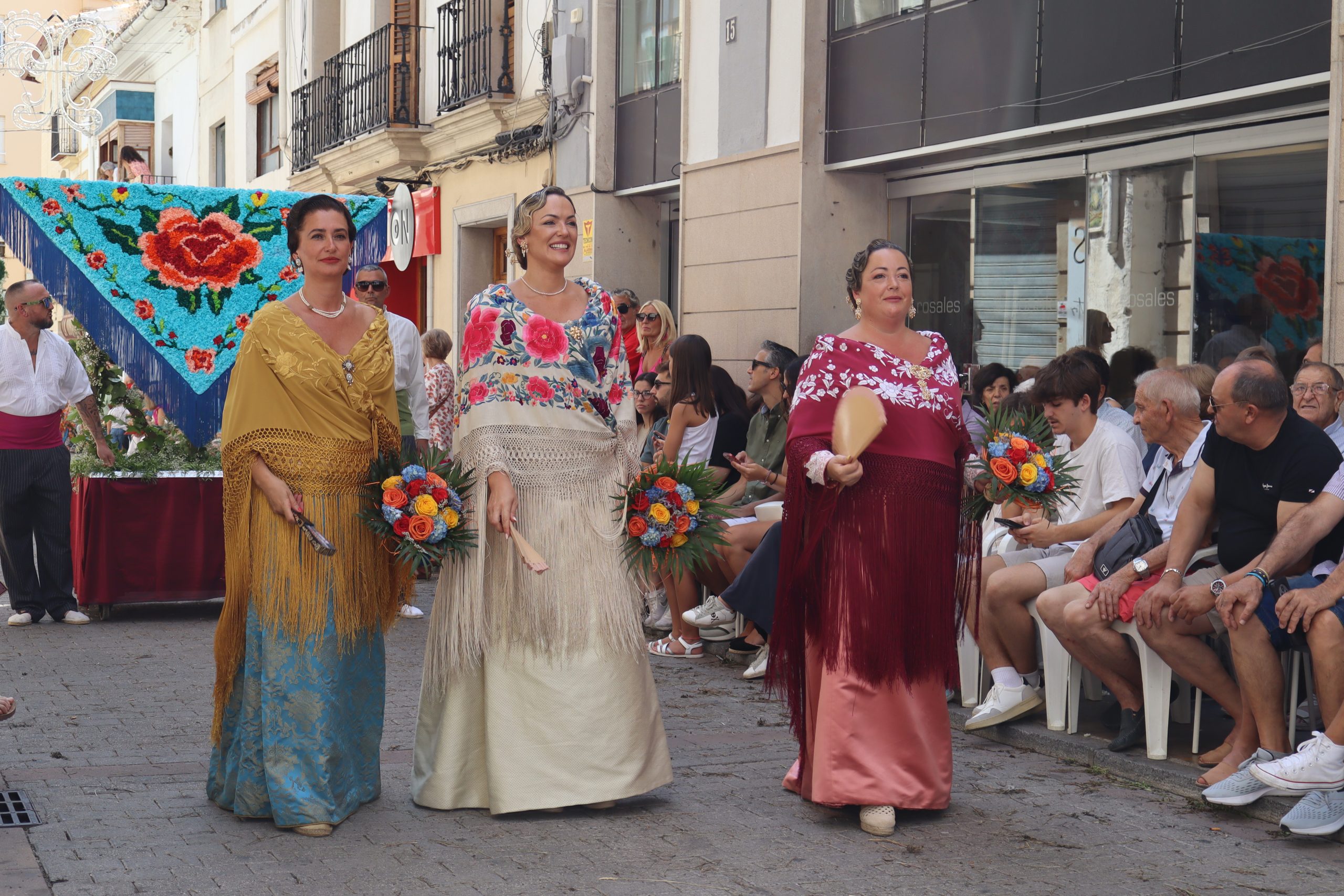 Previamente a que arrancara la Ofrenda, la Banda Sinfónica fue a recoger a sus domicilios a la Representante de La Artística, Rocío Cervera, a Estela Iniesta, Reina del Mantón 2025, y a la Reina Infantil, Claudia Olius. Las tres desfilaron preciosas y llegaron emocionadas hasta la imagen de la Virgen, a la que, tras la interpretación del Himno de «Los Feos» depositaron su ramo. Un aplauso unánime ha recorrido la plaza y las tres han saludado al respetable.