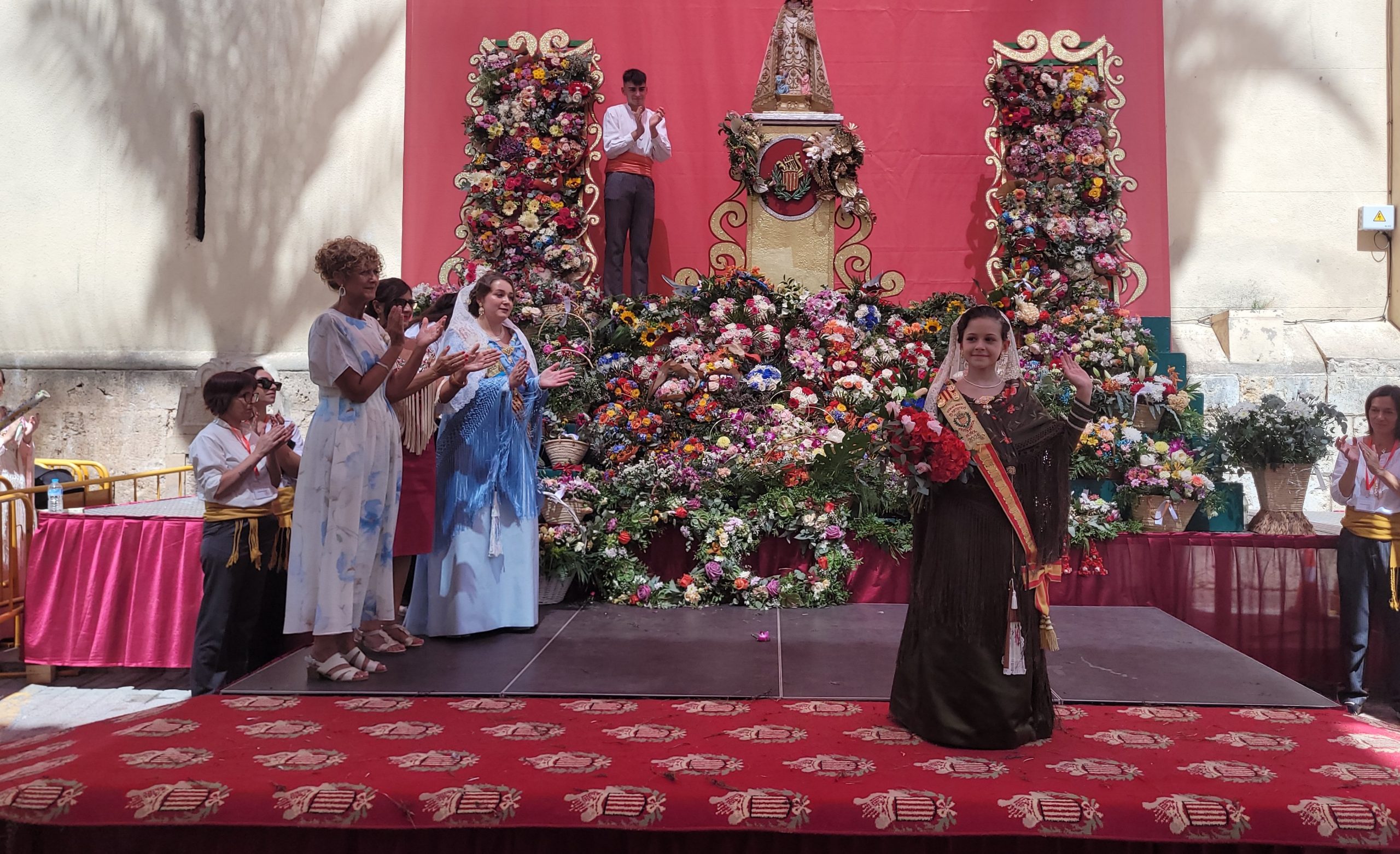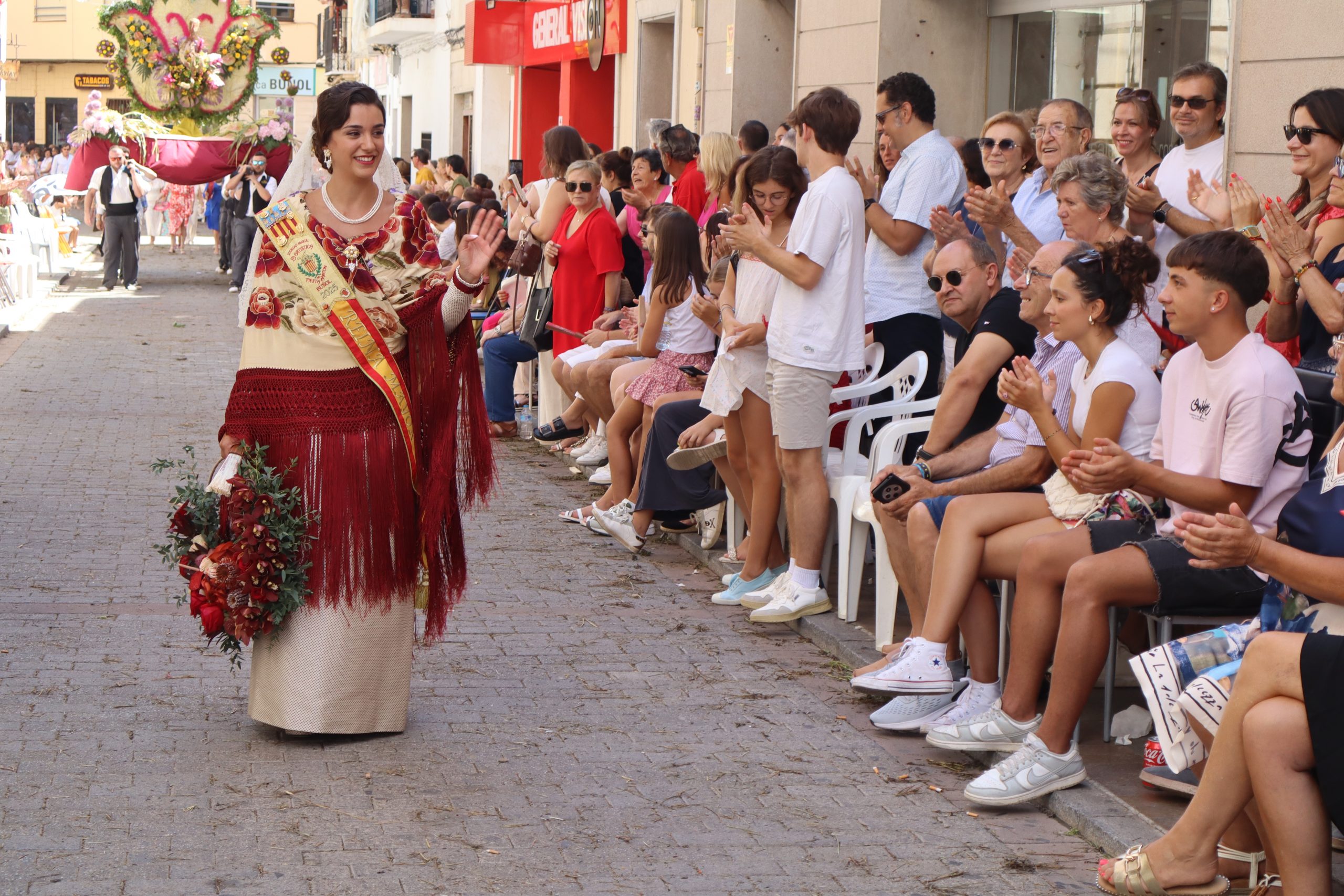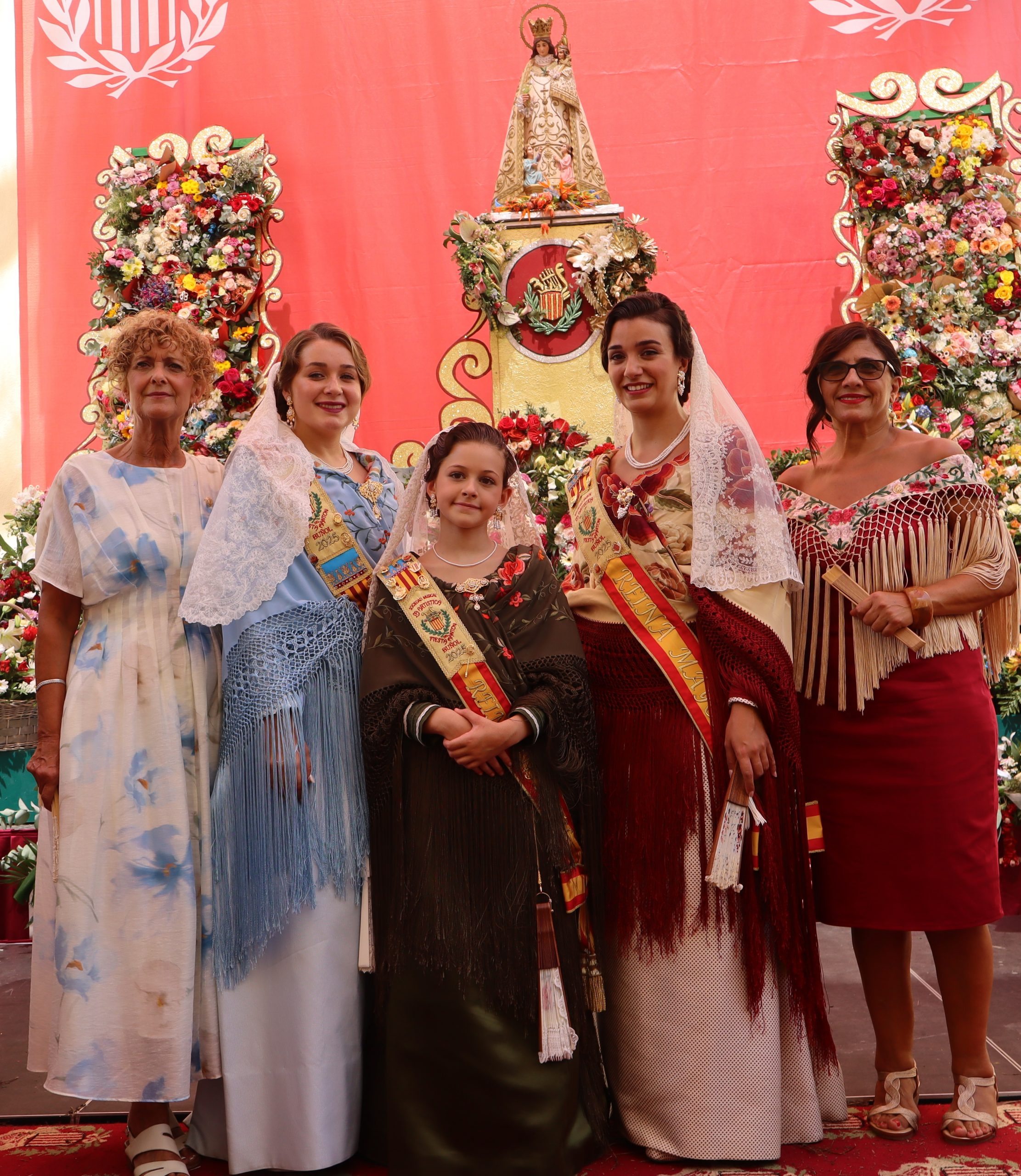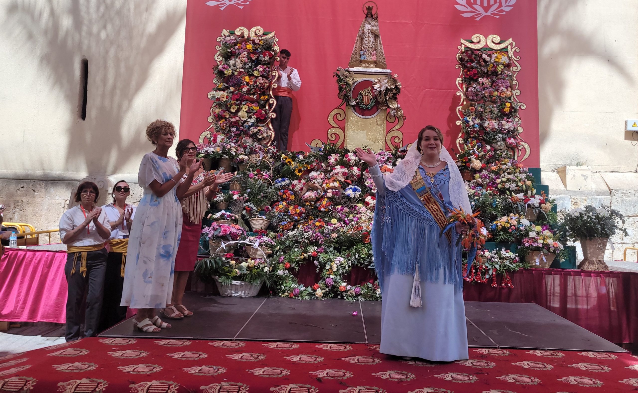 Previamente a que arrancara la Ofrenda, la Banda Sinfónica fue a recoger a sus domicilios a la Representante de La Artística, Rocío Cervera, a Estela Iniesta, Reina del Mantón 2025, y a la Reina Infantil, Claudia Olius. Las tres desfilaron preciosas y llegaron emocionadas hasta la imagen de la Virgen, a la que, tras la interpretación del Himno de «Los Feos» depositaron su ramo. Un aplauso unánime ha recorrido la plaza y las tres han saludado al respetable.