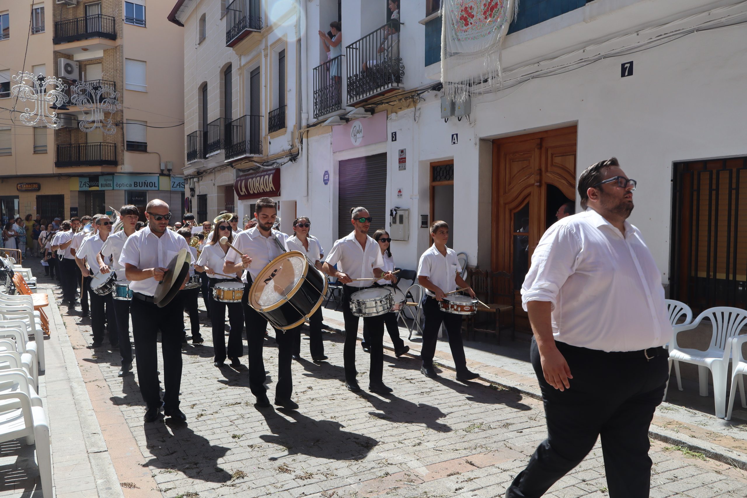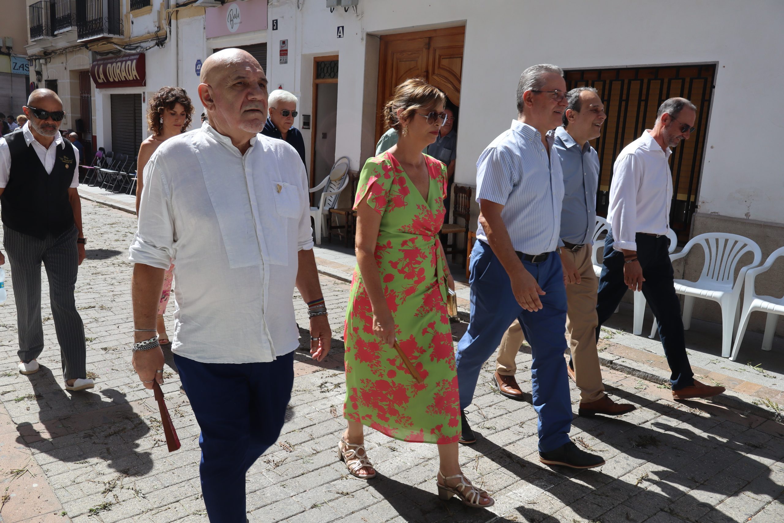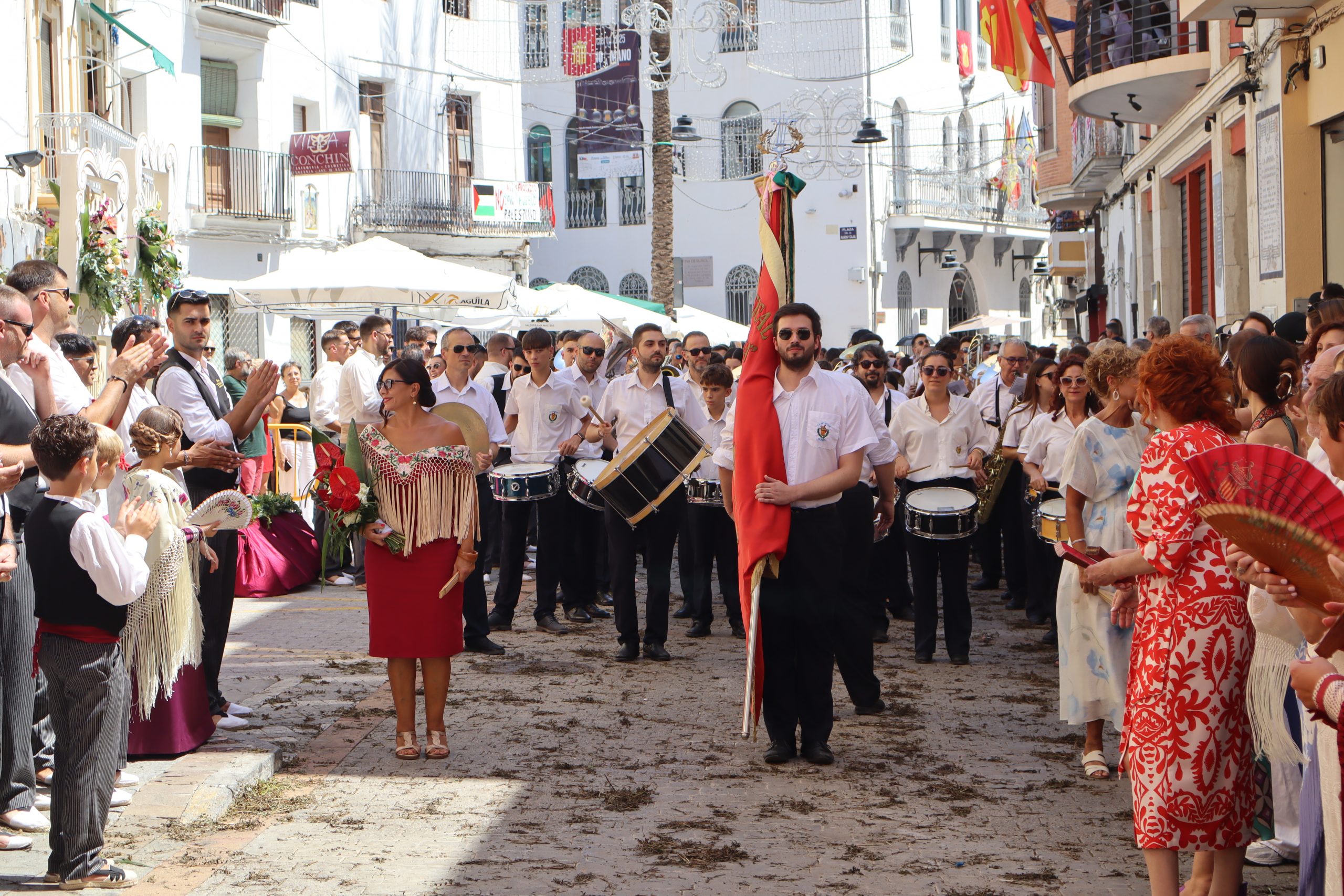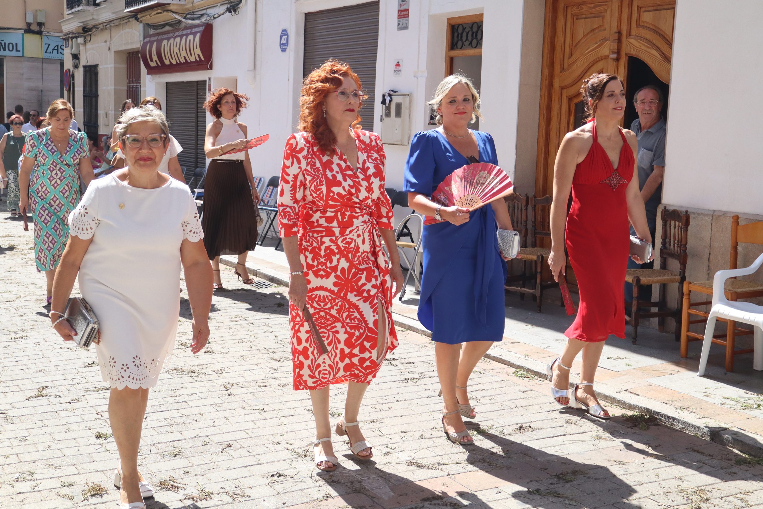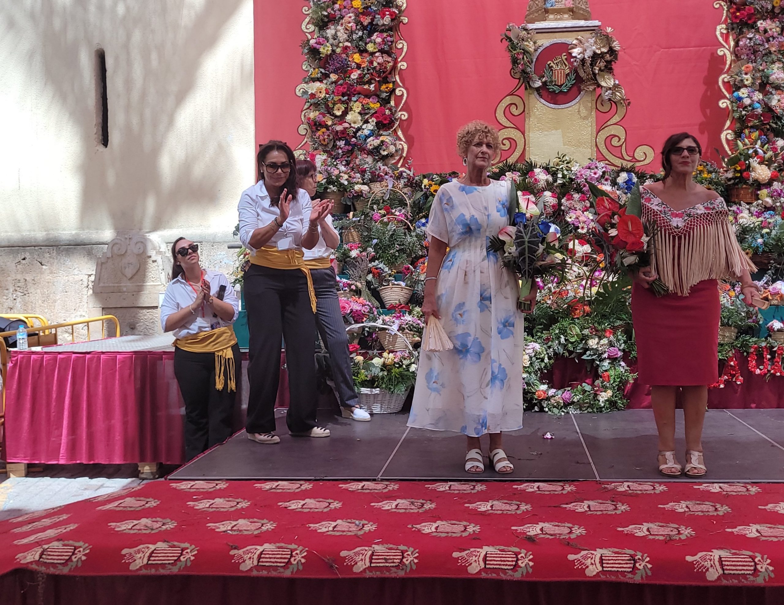 Previamente a que arrancara la Ofrenda, la Banda Sinfónica fue a recoger a sus domicilios a la Representante de La Artística, Rocío Cervera, a Estela Iniesta, Reina del Mantón 2025, y a la Reina Infantil, Claudia Olius. Las tres desfilaron preciosas y llegaron emocionadas hasta la imagen de la Virgen, a la que, tras la interpretación del Himno de «Los Feos» depositaron su ramo. Un aplauso unánime ha recorrido la plaza y las tres han saludado al respetable.