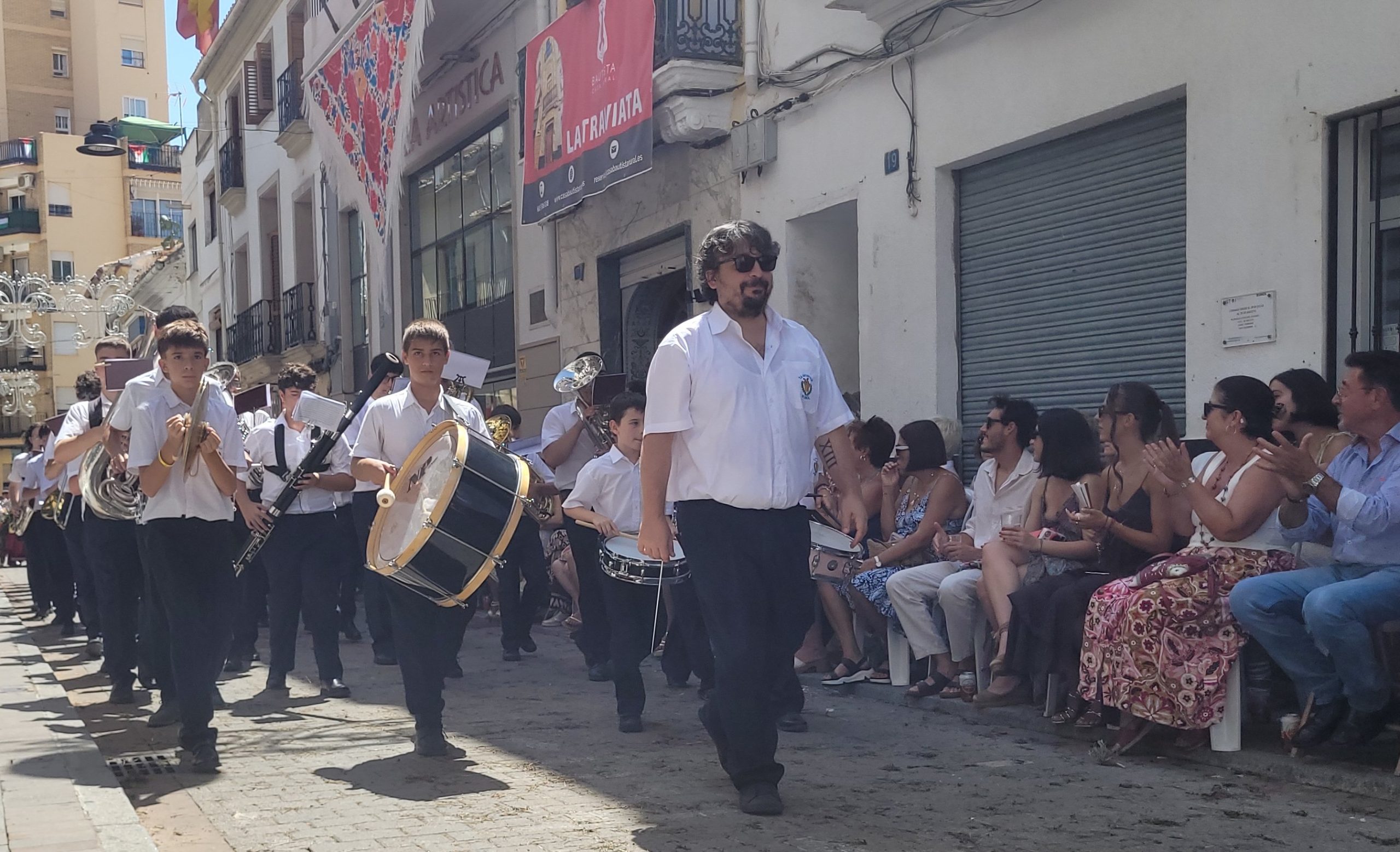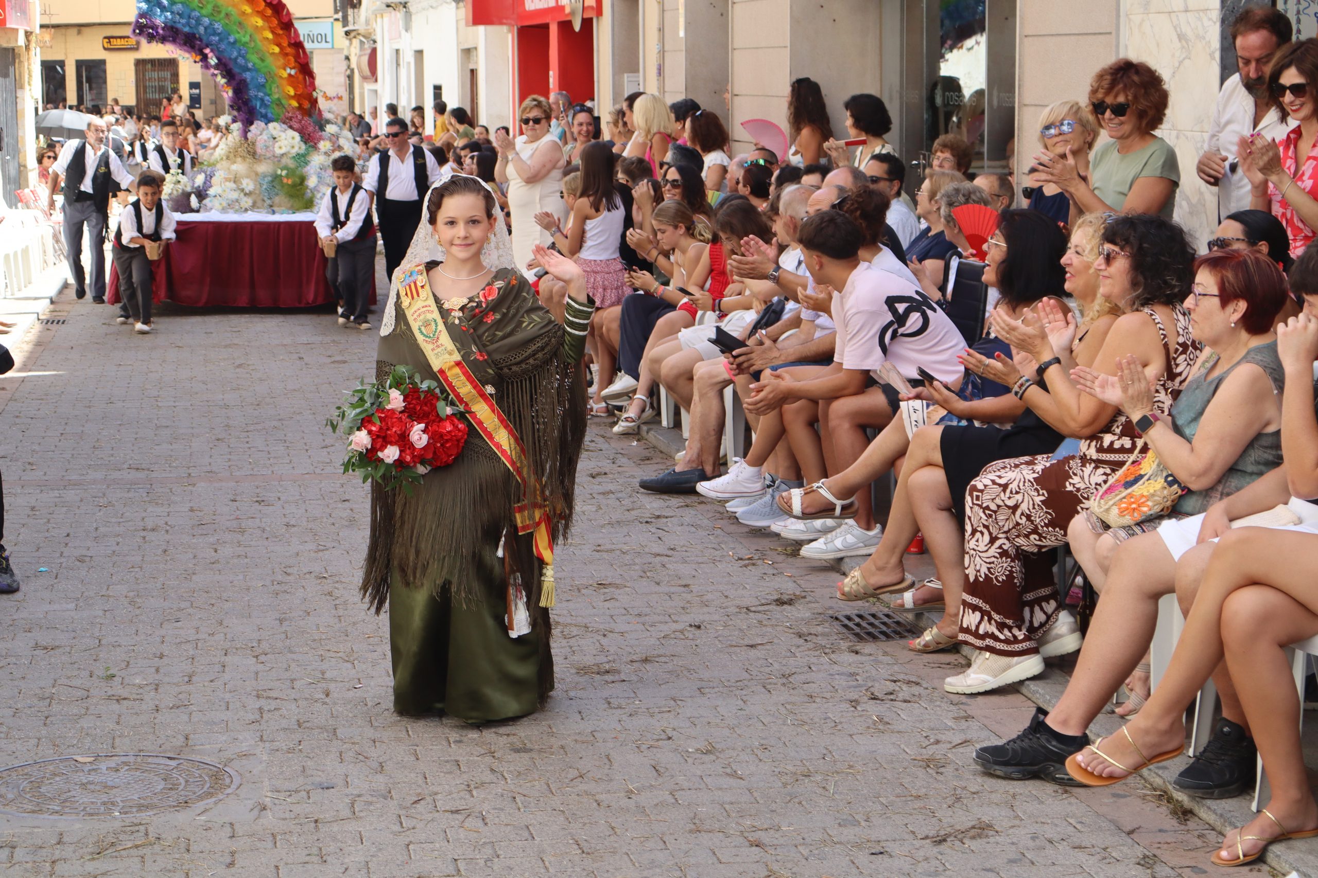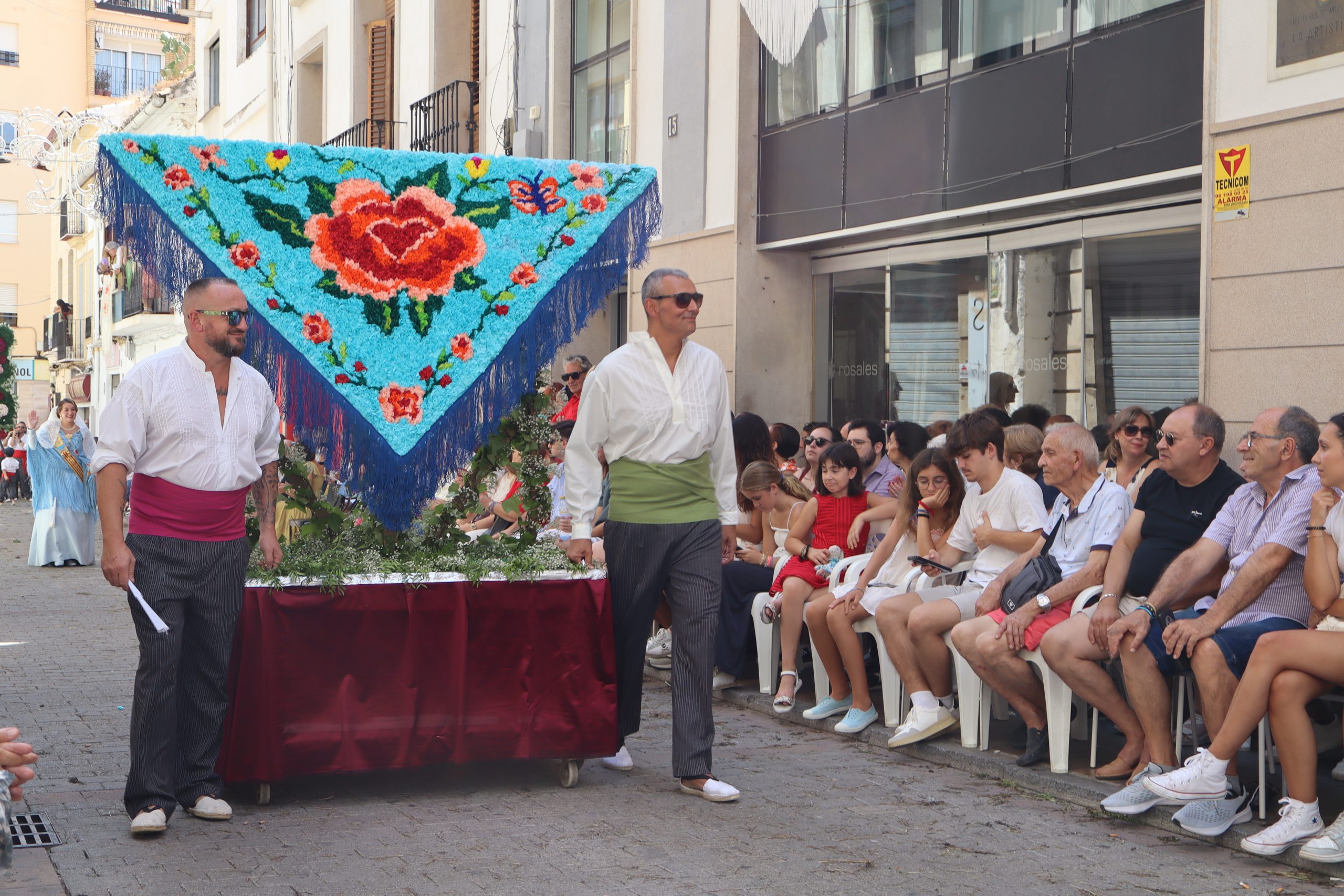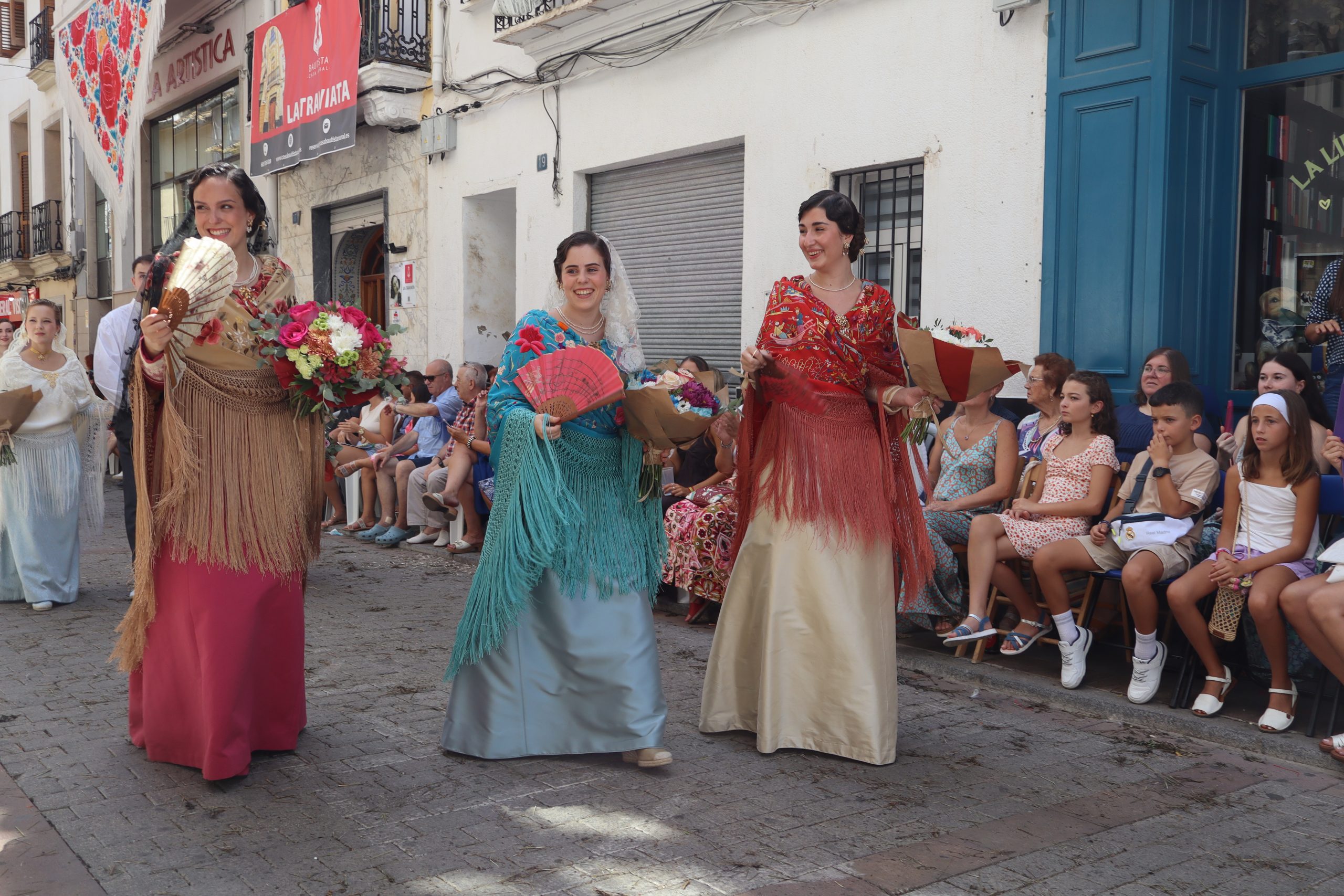 Previamente a que arrancara la Ofrenda, la Banda Sinfónica fue a recoger a sus domicilios a la Representante de La Artística, Rocío Cervera, a Estela Iniesta, Reina del Mantón 2025, y a la Reina Infantil, Claudia Olius. Las tres desfilaron preciosas y llegaron emocionadas hasta la imagen de la Virgen, a la que, tras la interpretación del Himno de «Los Feos» depositaron su ramo. Un aplauso unánime ha recorrido la plaza y las tres han saludado al respetable.