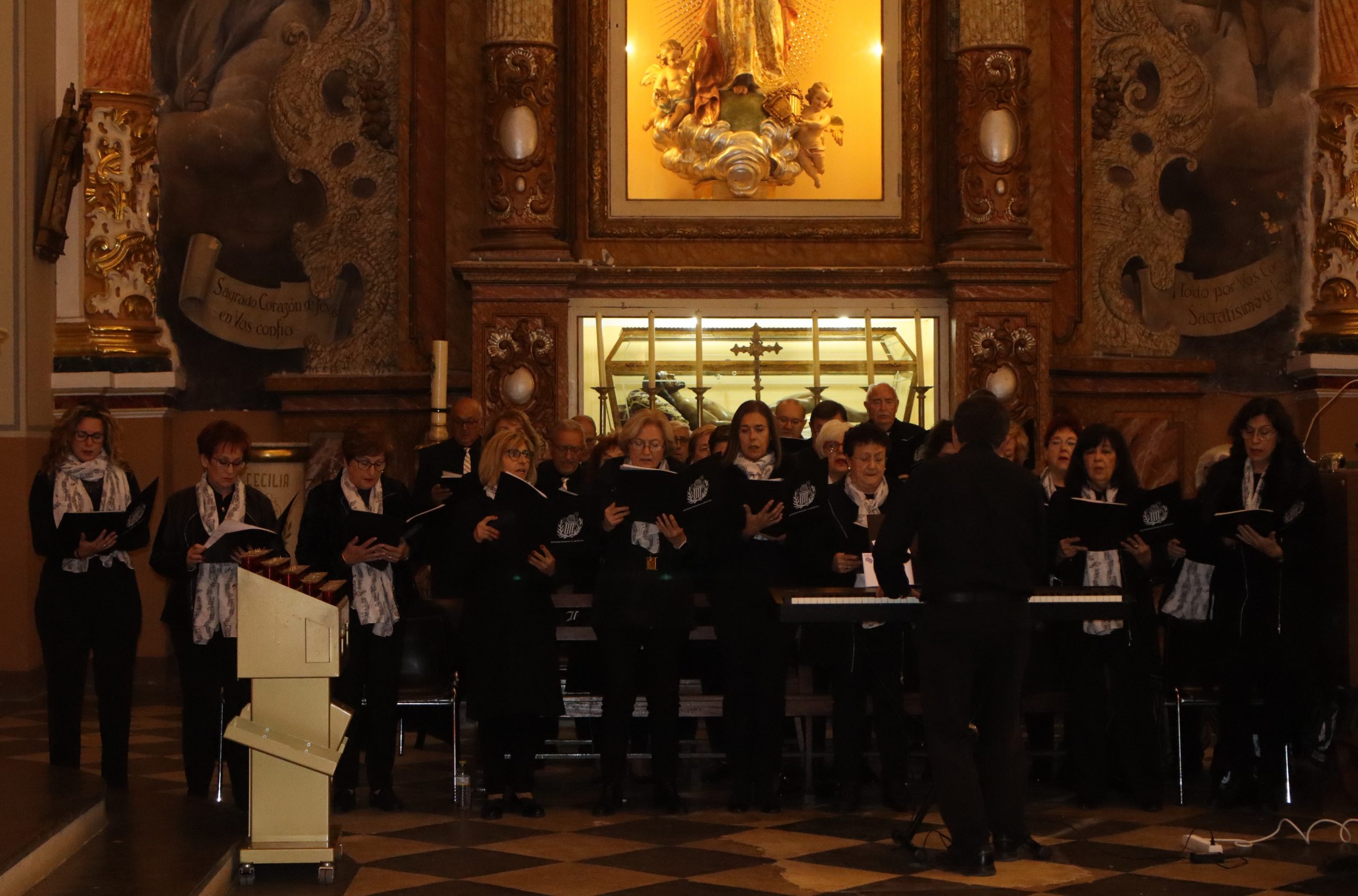 Por su parte, la Sociedad Musical «La Artística» no celebró ningún concierto, pero asistió a la tradicional misa el pasado día 22 de noviembre. Una misa en la parroquia San Pedro Apóstol, en la que también estuvieron miembros de la corporación municipal, encabezados por la alcaldesa, Virginia Sanz.