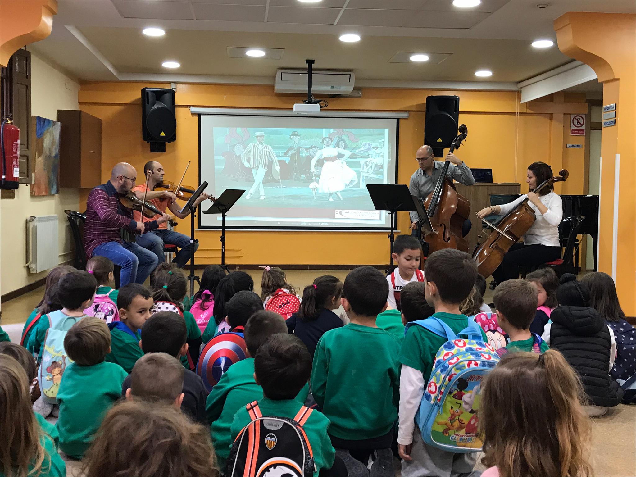 En dichas visitas los niños han podido ver y escuchar a los profesores de cuerda interpretando famosas canciones de Disney, así como conocer algunos instrumentos que esa mañana se encontraban impartiendo clase en el centro como Fagot y Piano.