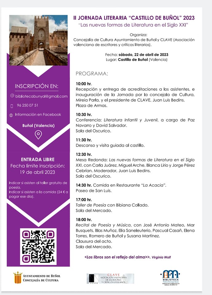 Además también se celebrará la II Jornadas literarias de la mano de Emi Zanón como coordinadora. la sjornadas comenzarán a las 10H y acabarán a las 18H