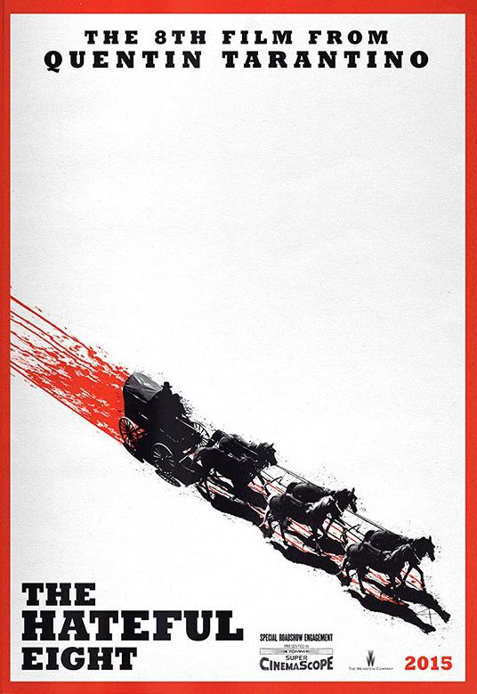 Sinopsis: pocos años después de la Guerra de Secesión, una diligencia avanza a toda velocidad por el invernal paisaje de Wyoming. Los pasajeros, el cazarrecompensas John Ruth (Kurt Russell) y su fugitiva Daisy Domergue (Jennifer Jason Leigh), intentan llegar rápidamente al pueblo de Red Rock, donde Ruth entregará a Domergue a la justicia. Por el camino, se encuentran con dos desconocidos: el mayor Marquis Warren (Samuel L. Jackson), un antiguo soldado de la Unión convertido en cazarrecompensas de mala reputación, y Chris Mannix (Walton Goggins), un renegado sureño que afirma ser el nuevo sheriff del pueblo. Como se aproxima una ventisca, Ruth, Domergue, Warren y Mannix se refugian en la Mercería de Minnie, una parada para diligencias de un puerto de montaña. Cuando llegan al local se topan con cuatro rostros desconocidos. Bob (Demian Bichir), que se encuentra allí refugiado junto con Oswaldo Mobray (Tim Roth), verdugo de Red Rock, el vaquero Joe Gage (Michael Madsen) y el general confederado Sanford Smithers (Bruce Dern). Mientras la tormenta cae sobre la parada de montaña, los ocho viajeros descubren que tal vez no lleguen hasta Red Rock después de todo… (FILMAFFINITY)