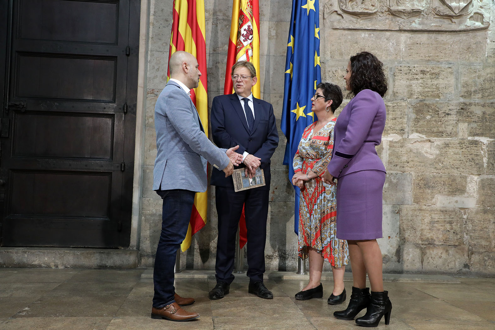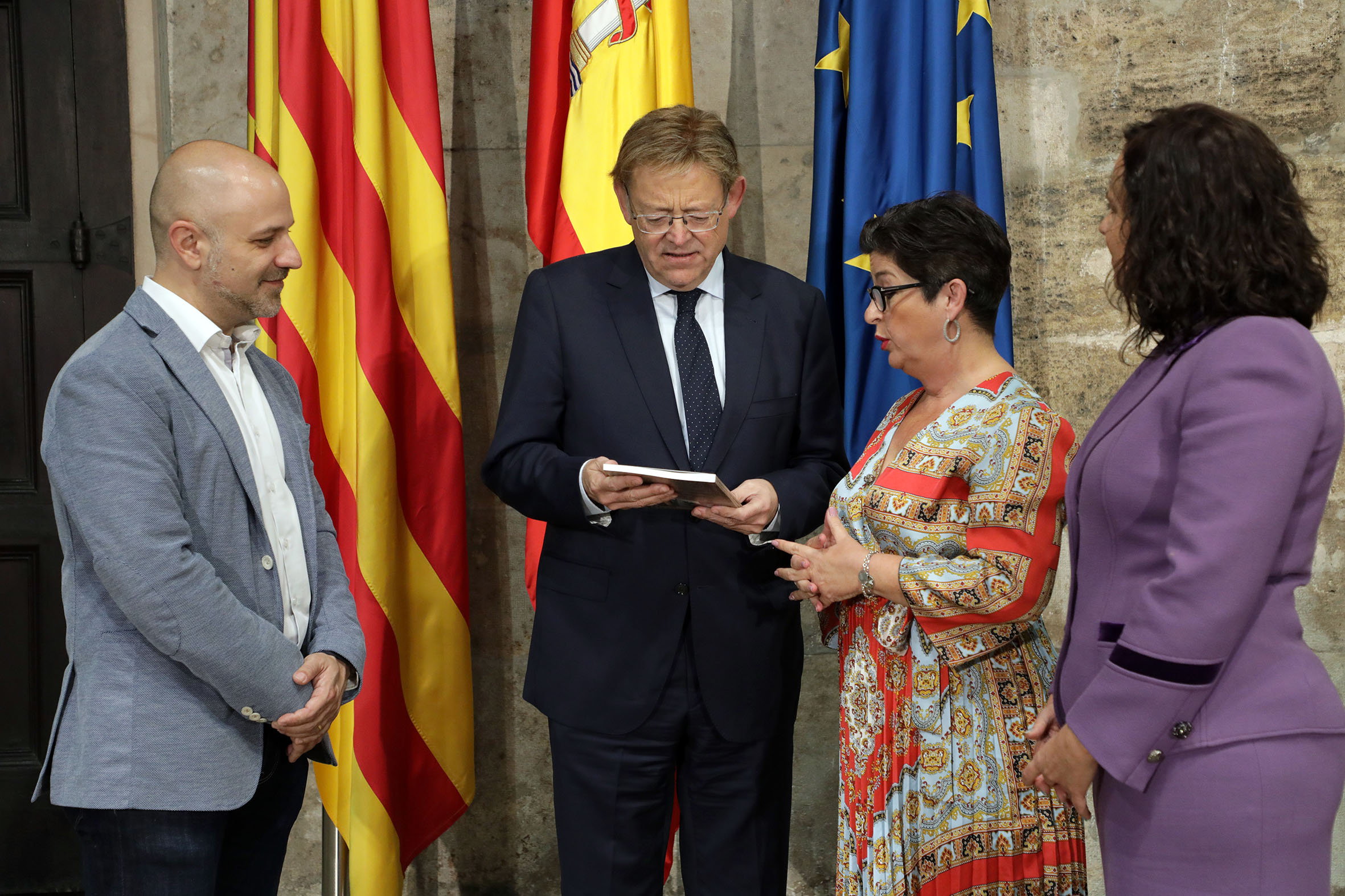Redacción.- El president de la Generalitat Valenciana, Ximo Puig ha recibido a los tres alcaldes del ciclo musical «A Tres Bandes» y a los representantes de la Asociación Buñol-Cullera-Llíria. Manolo Civera, primer edil de Llíria, Juncal Carrascosa, alcaldesa de Buñol y Jordi Mayor, de Cullera, junto con representantes de las bandas de música, mantuvieron un encuentro con el president Puig con motivo de la clausura de ‘A tres bandes’.