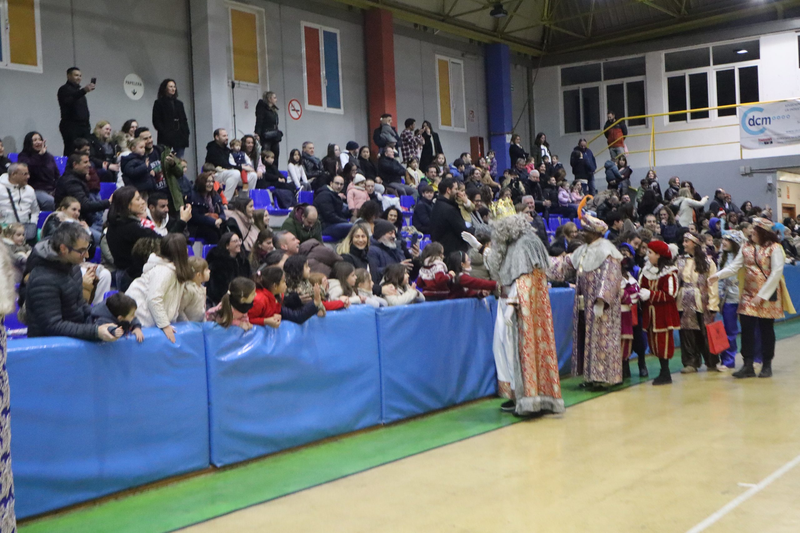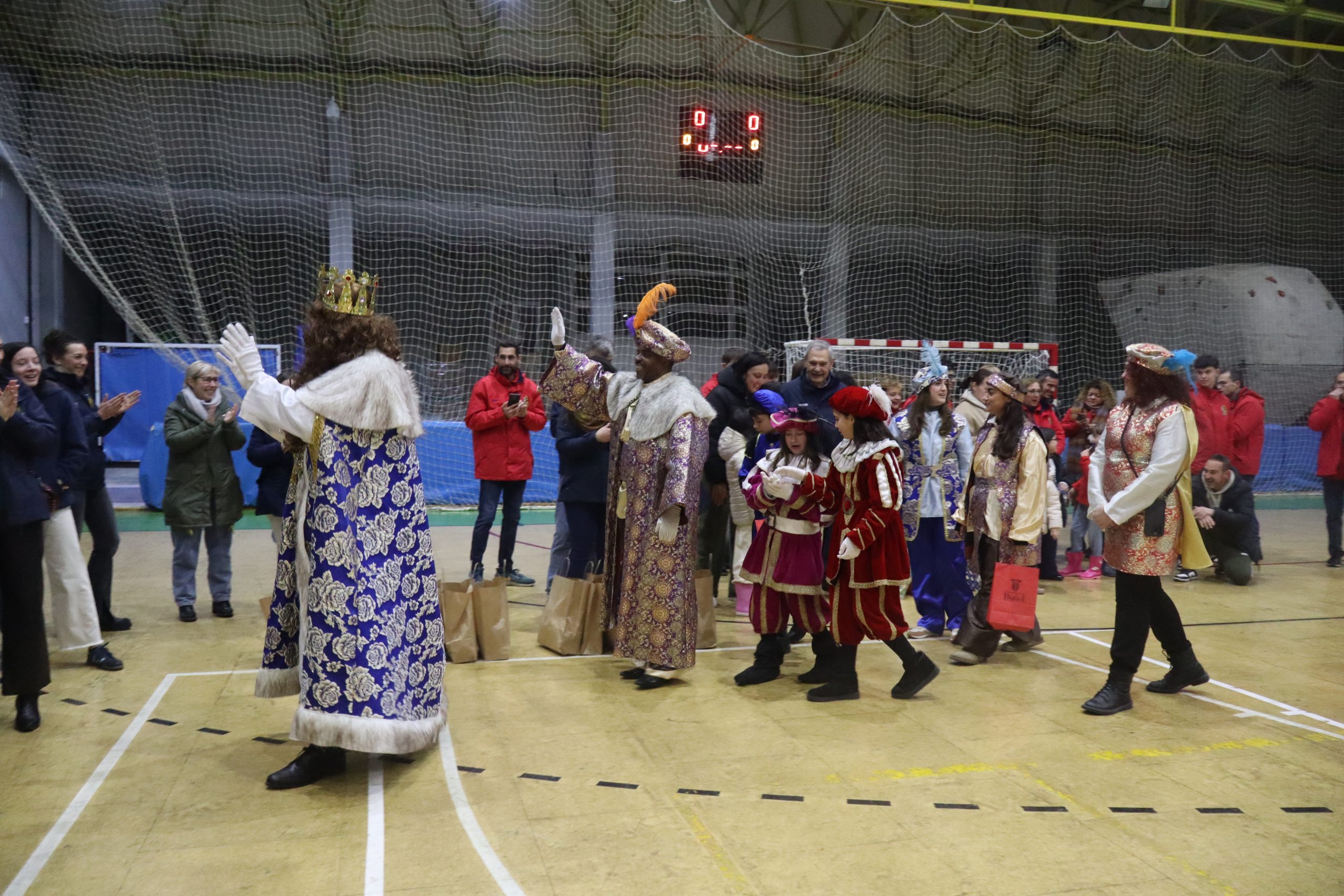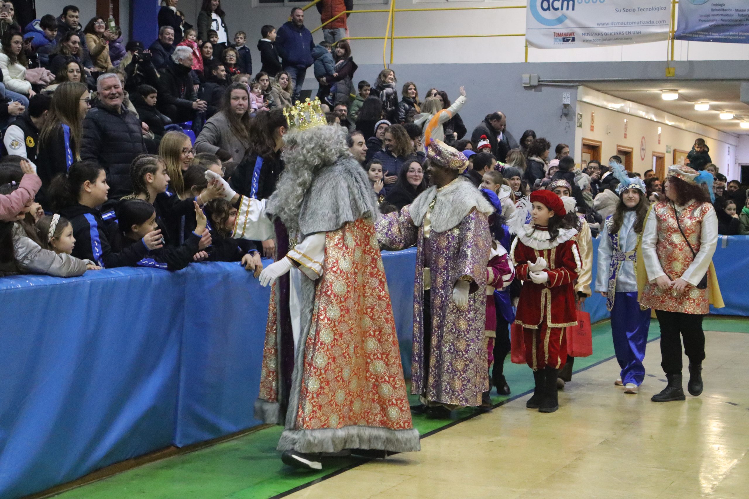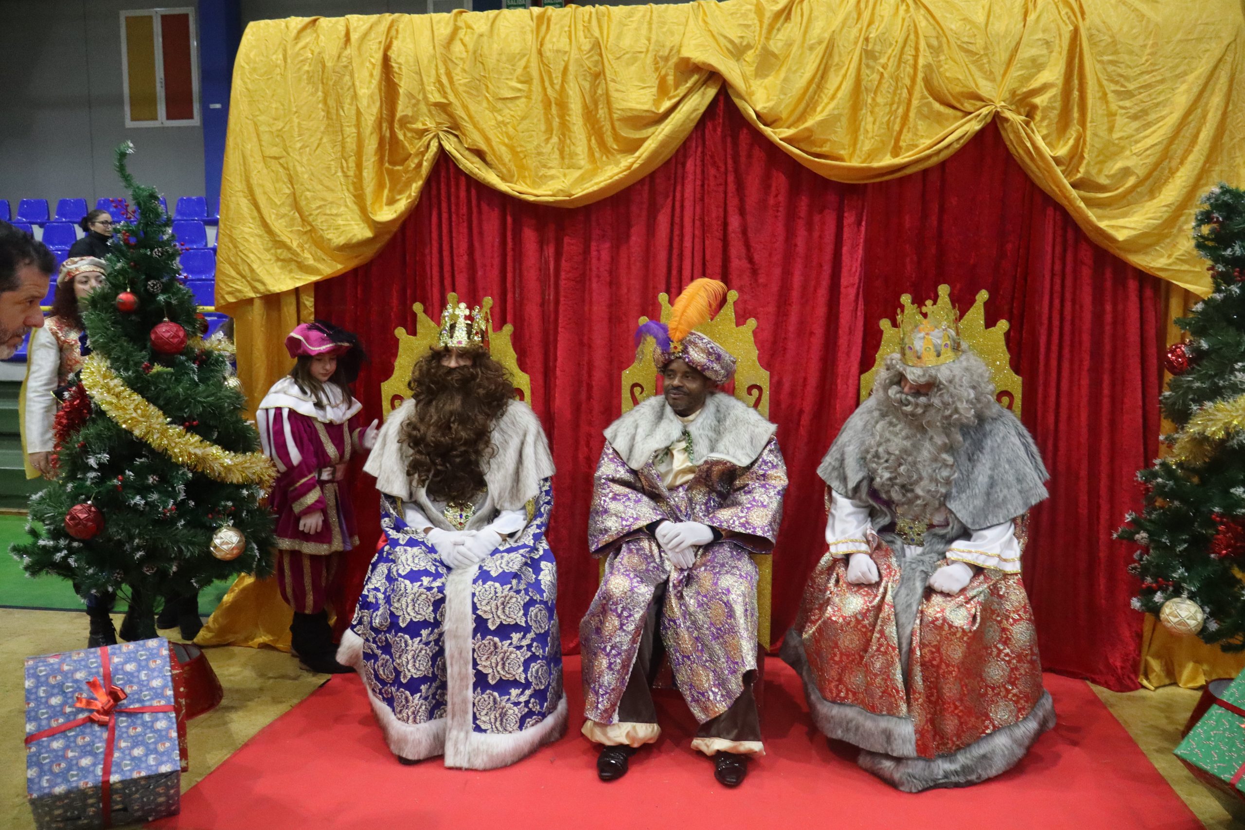 En el pabellón, los Reyes Magos repartieron alegría, regalos y sonrisas, además de escuchar con atención las cartas y peticiones de los más pequeños
