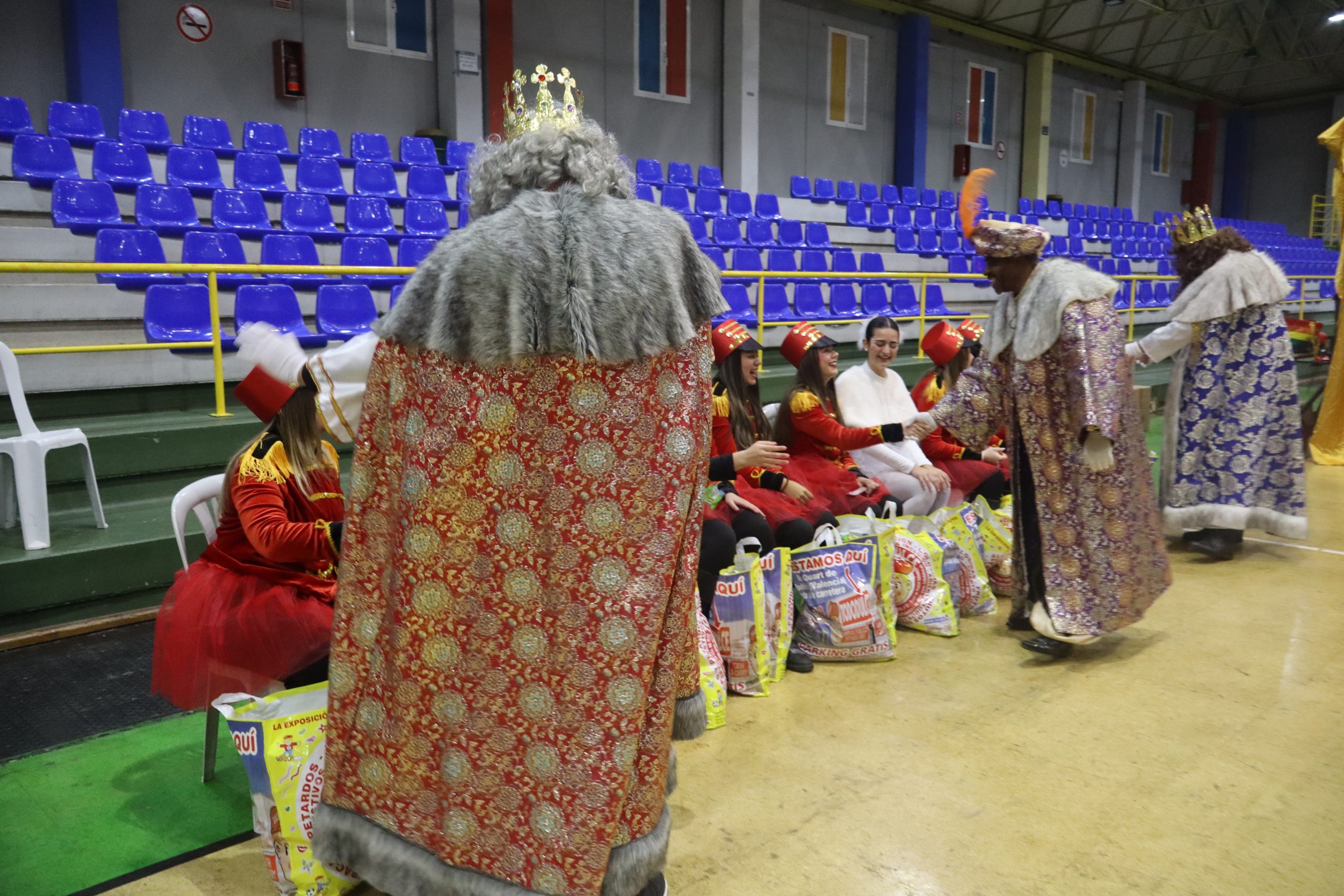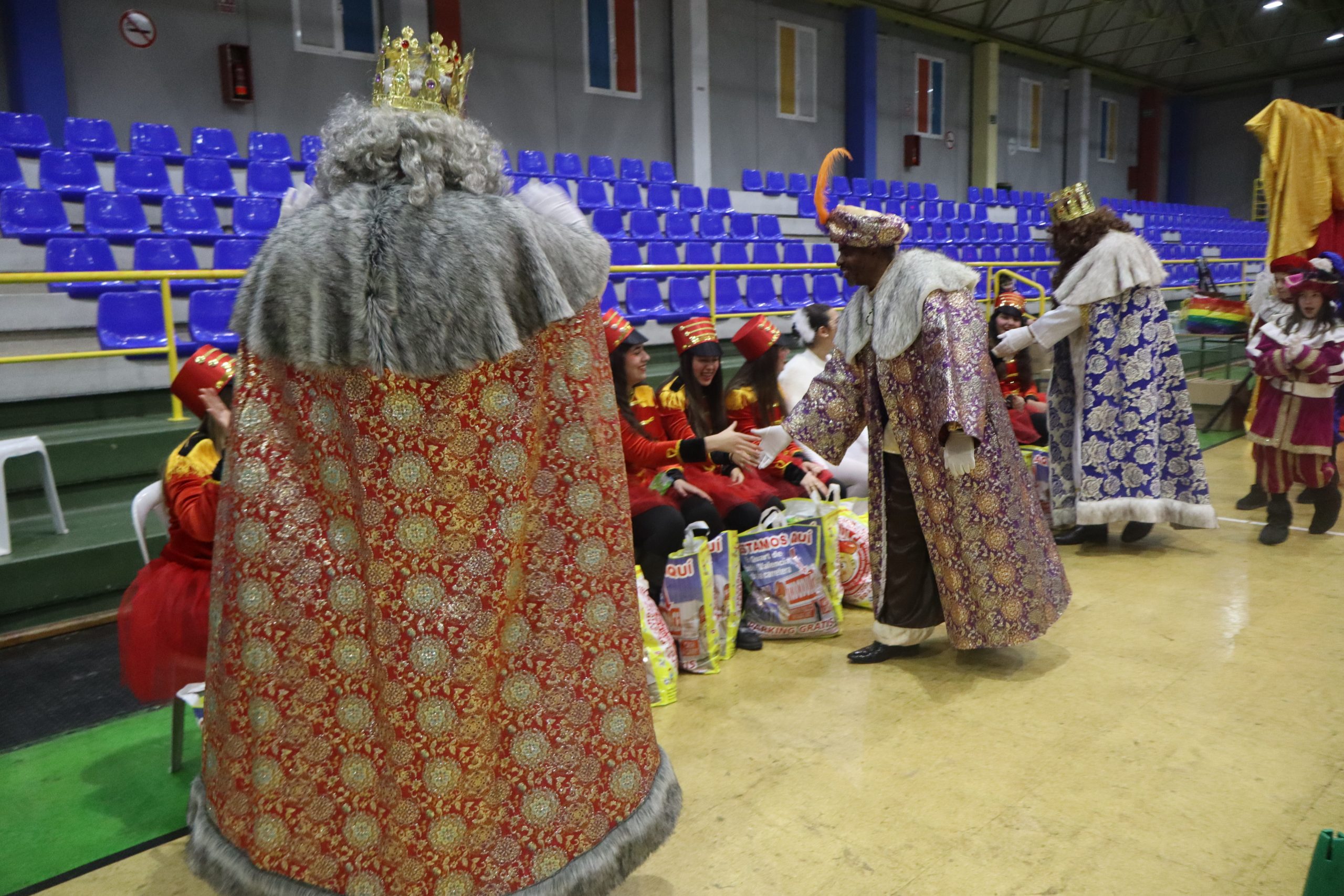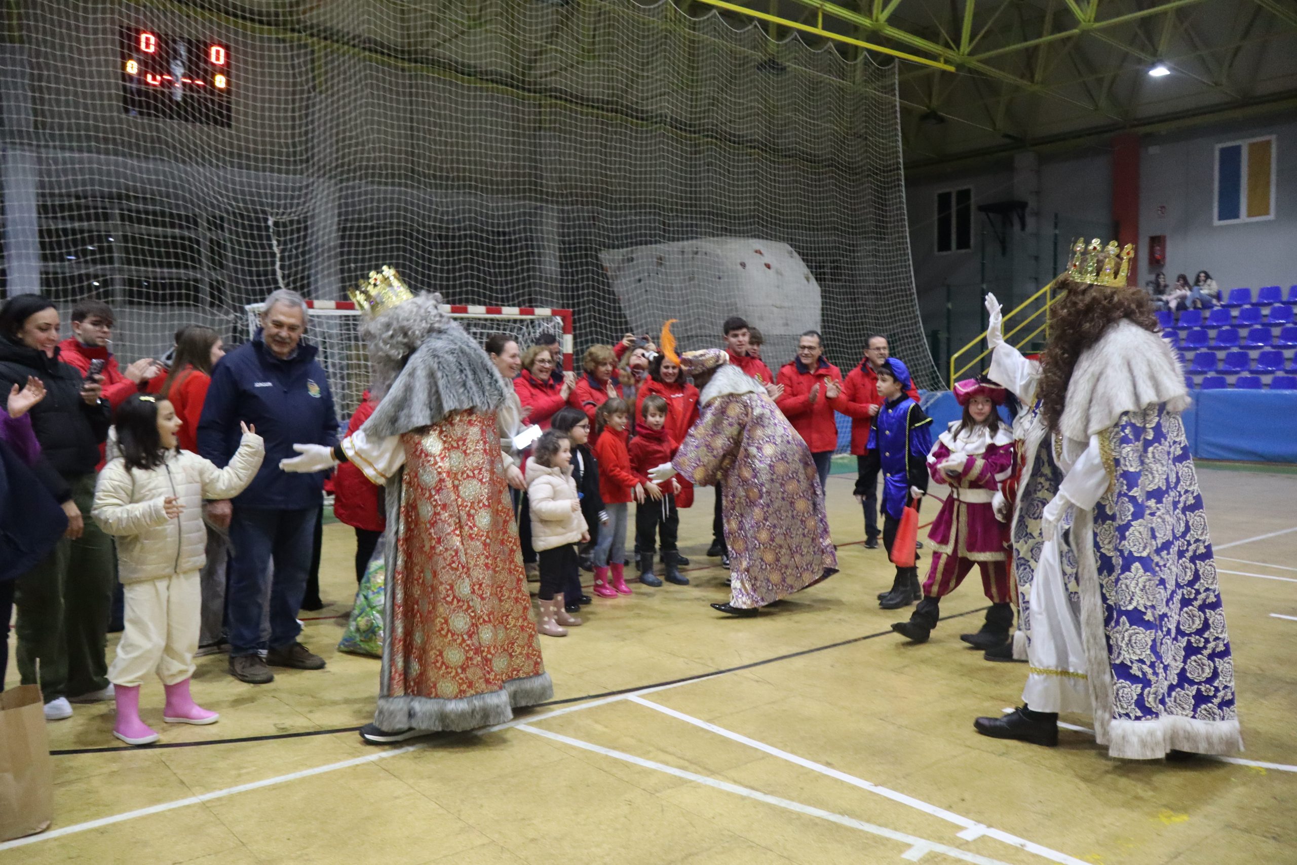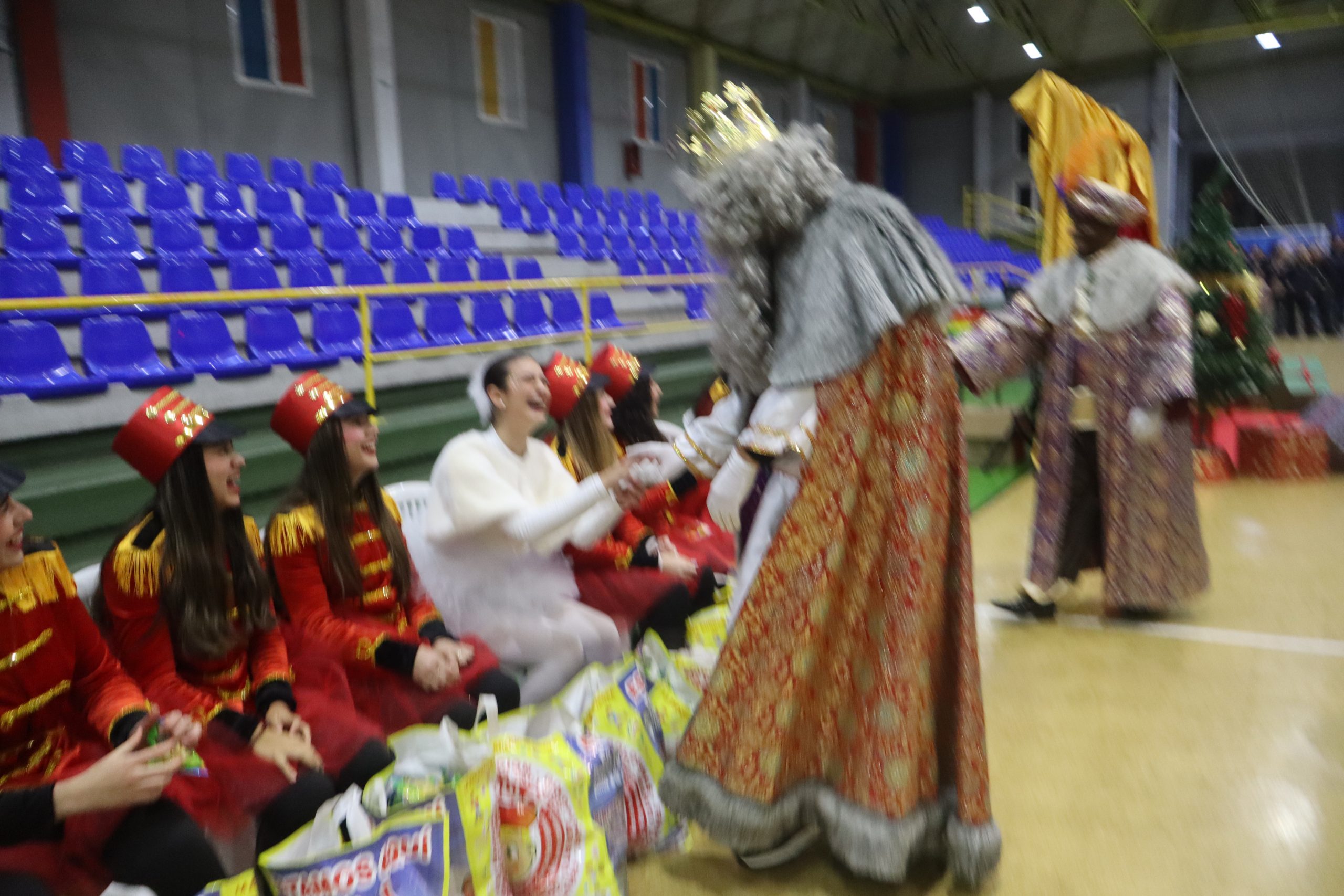 En el pabellón, los Reyes Magos repartieron alegría, regalos y sonrisas, además de escuchar con atención las cartas y peticiones de los más pequeños