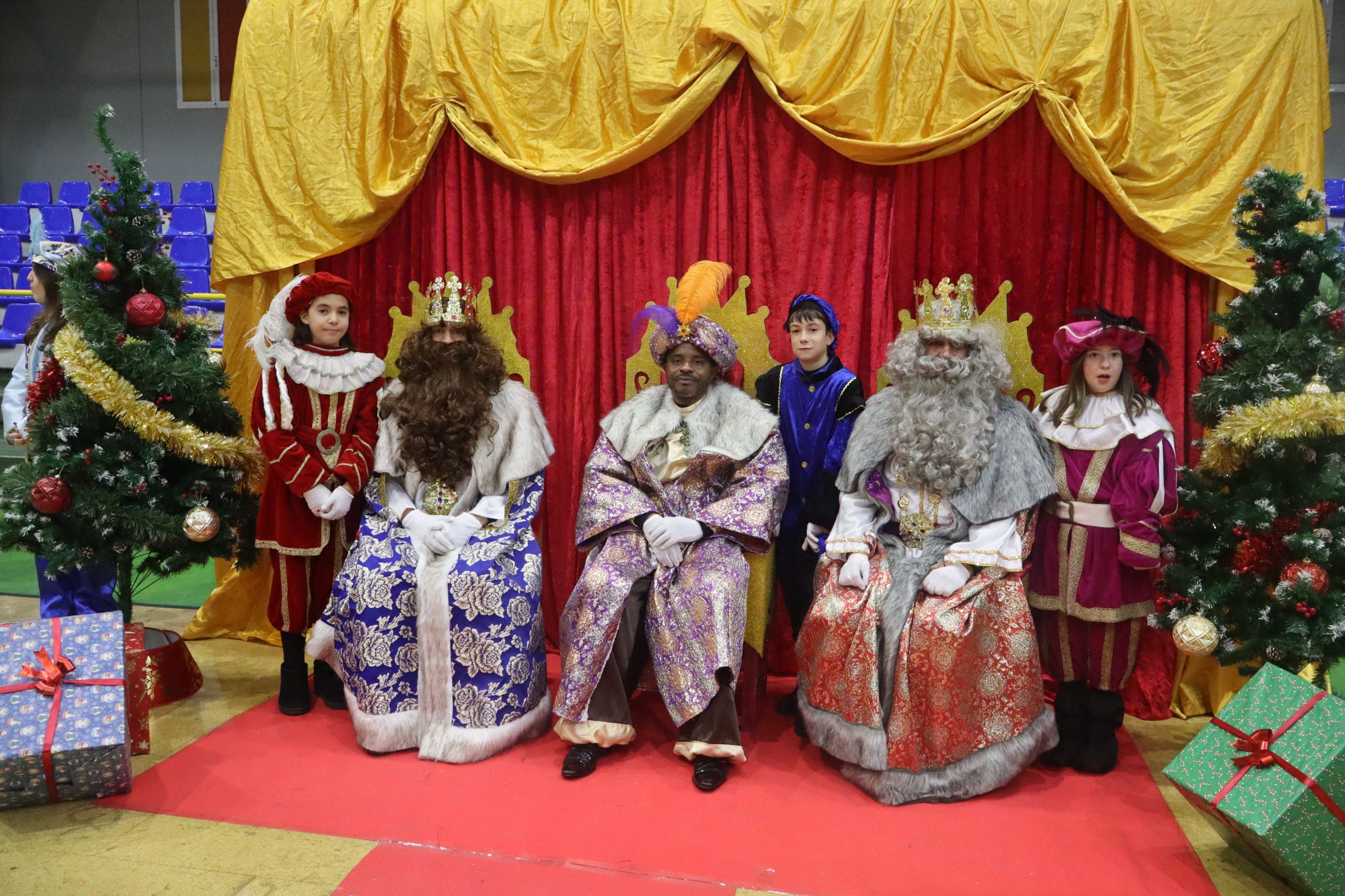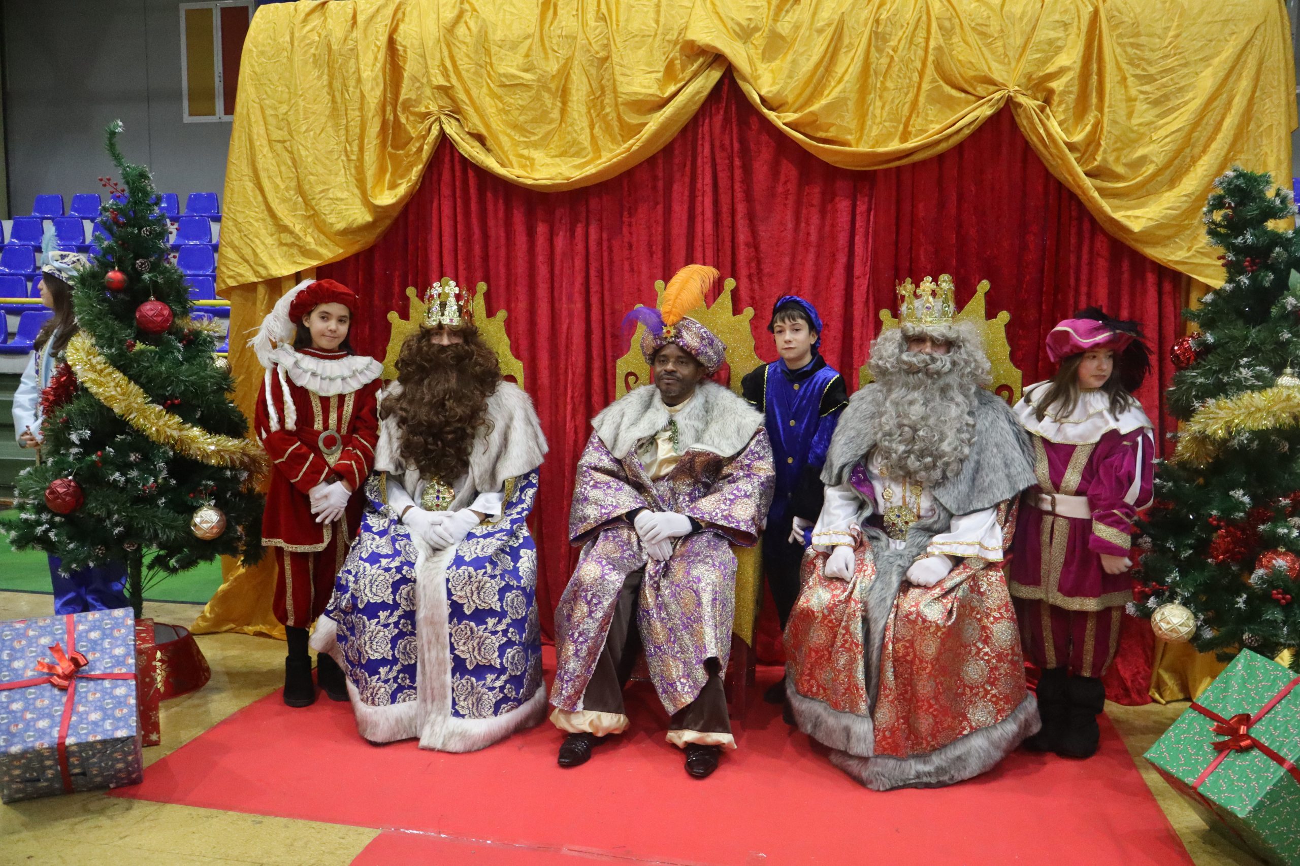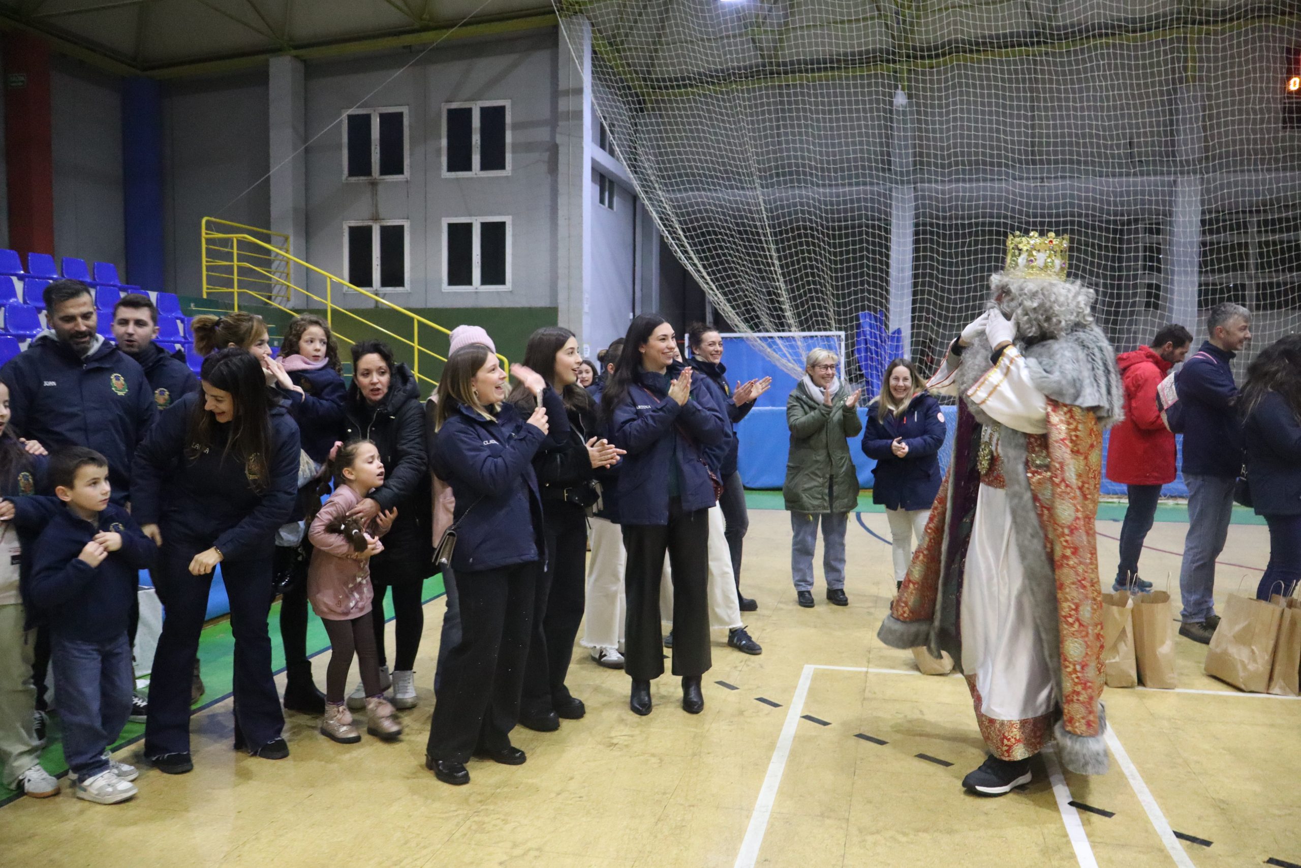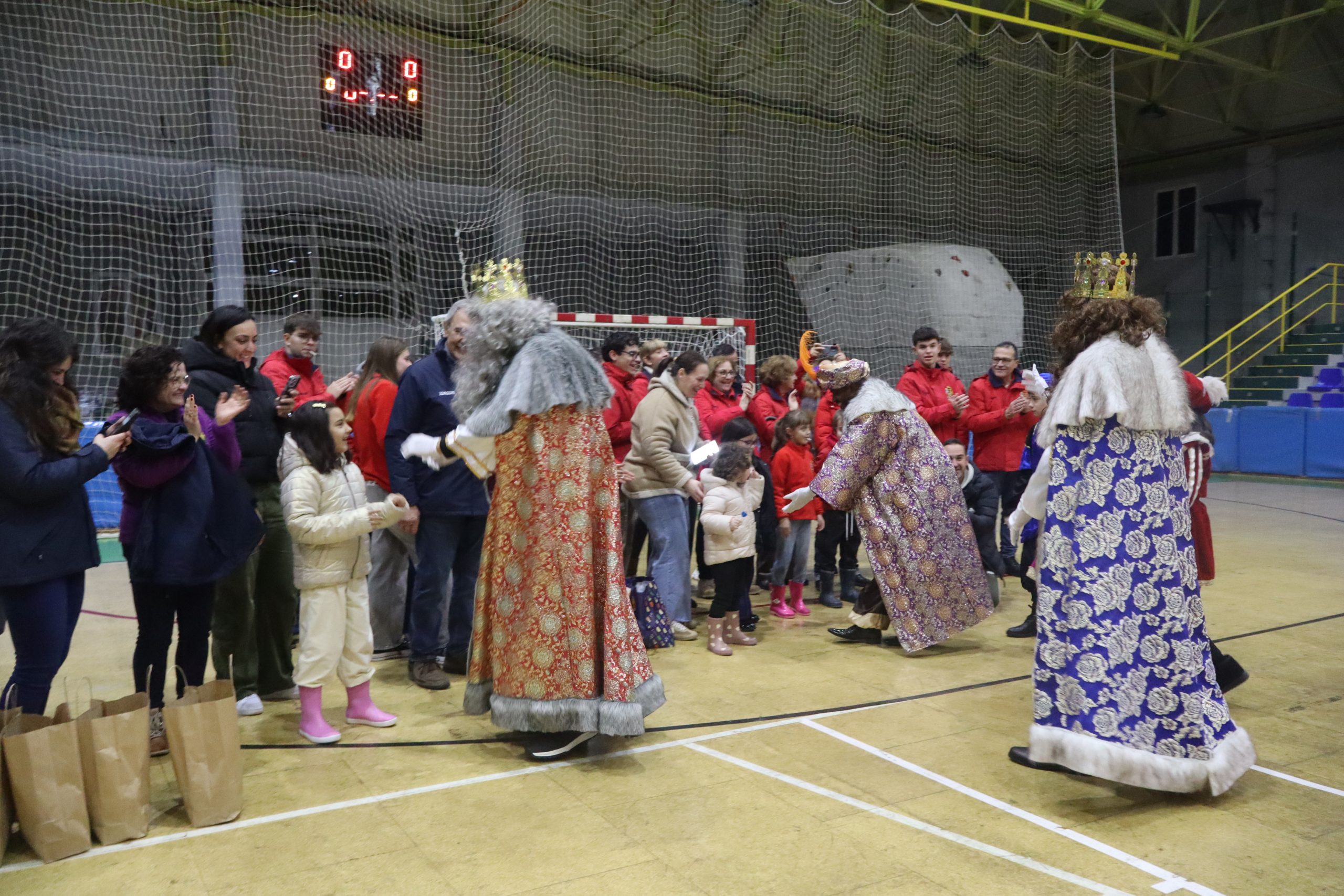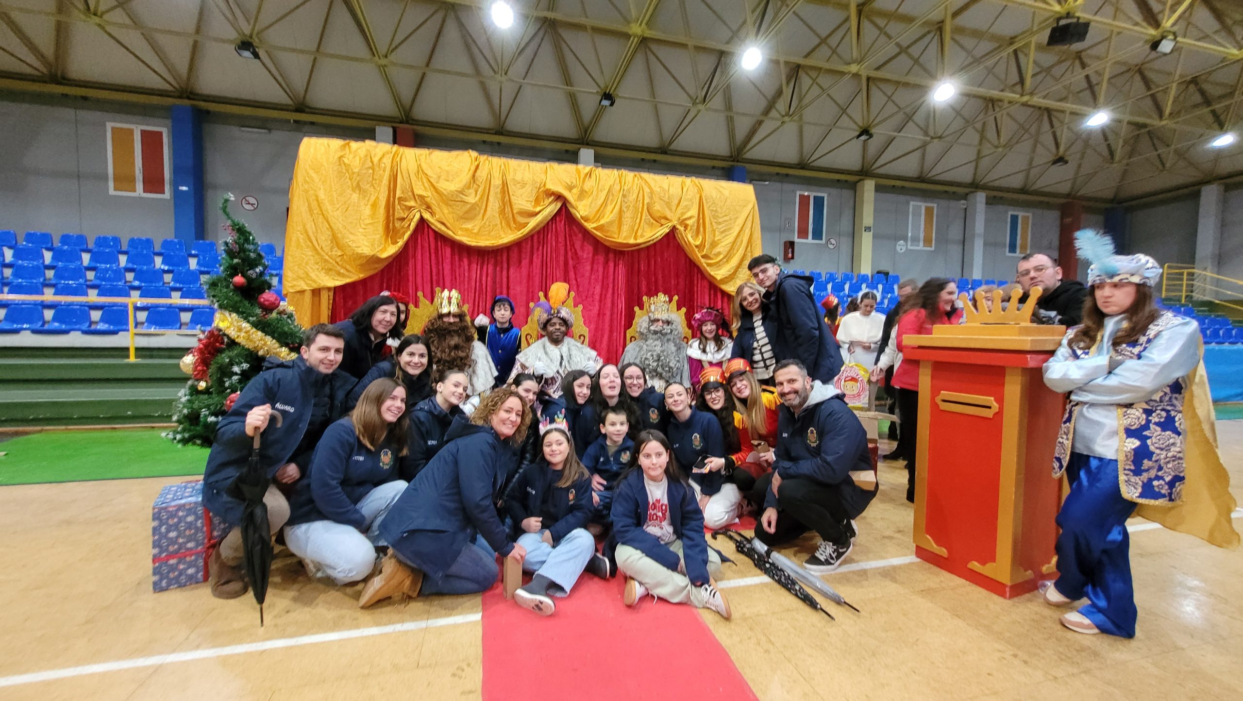 En el pabellón, los Reyes Magos repartieron alegría, regalos y sonrisas, además de escuchar con atención las cartas y peticiones de los más pequeños