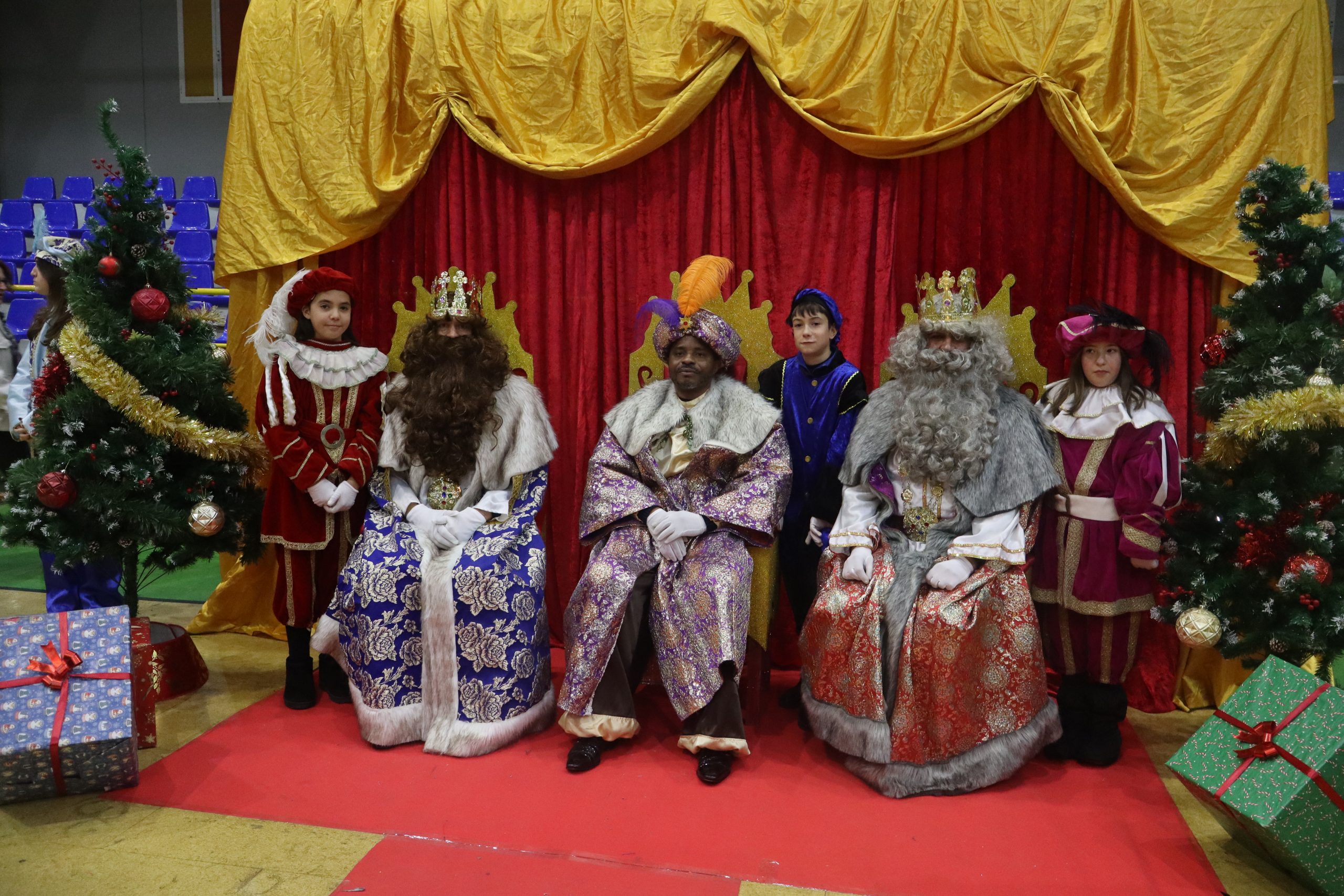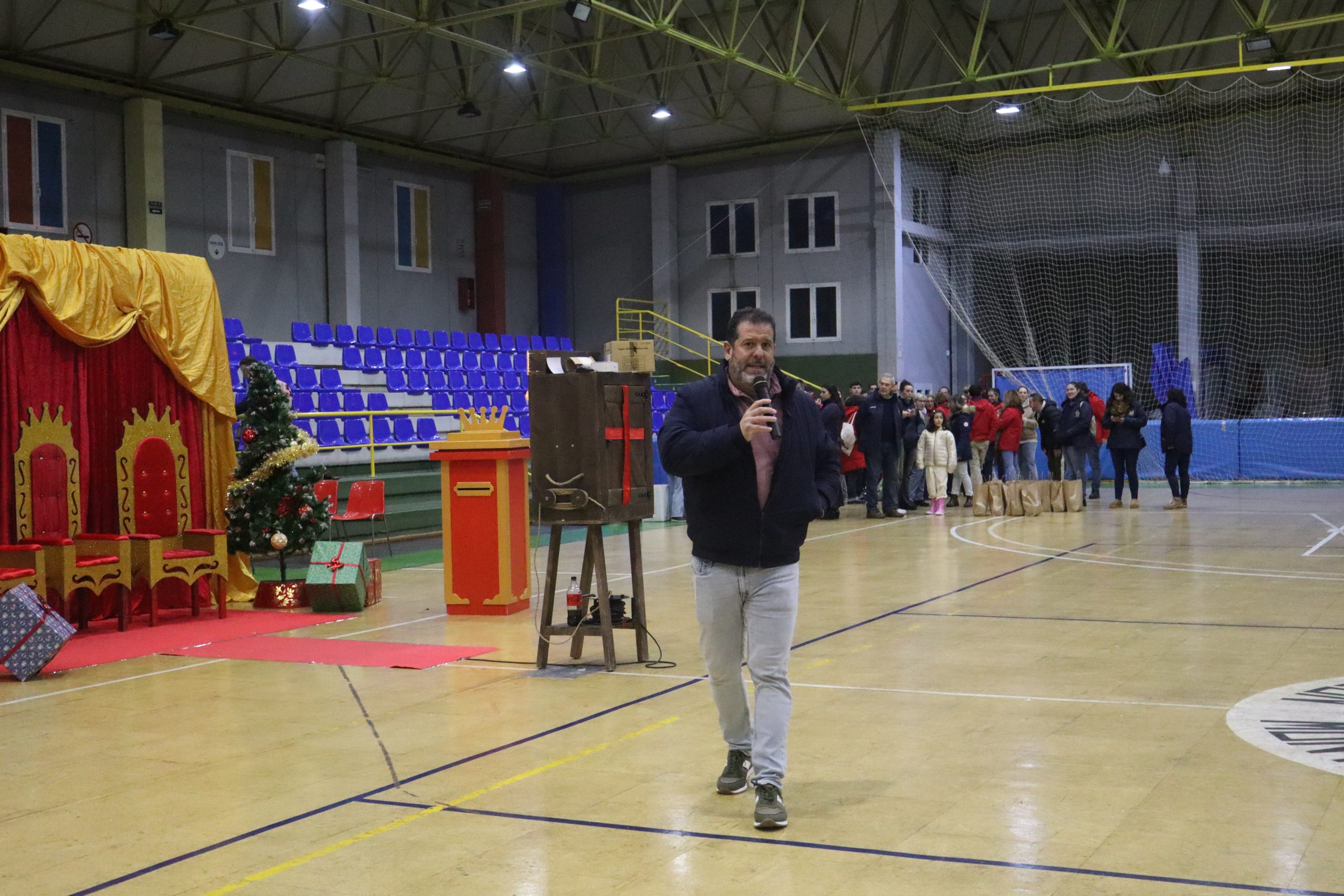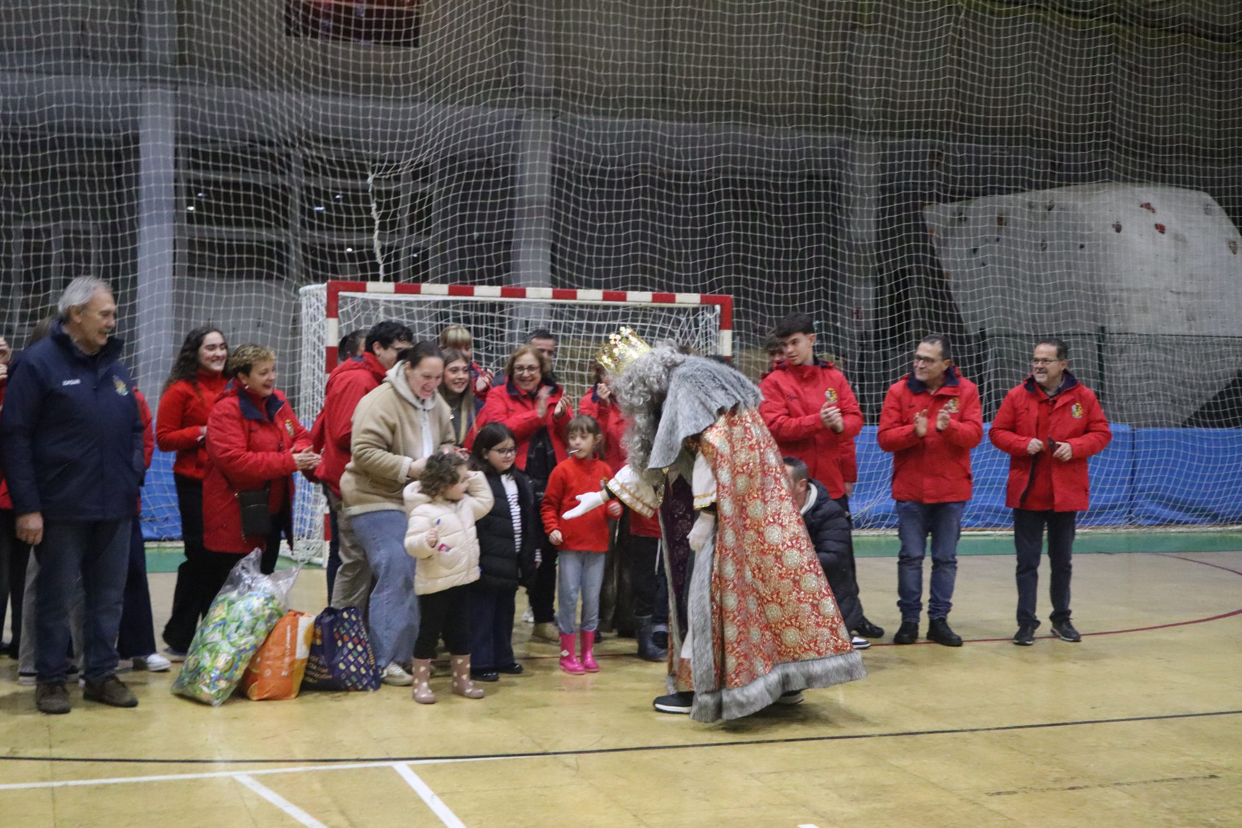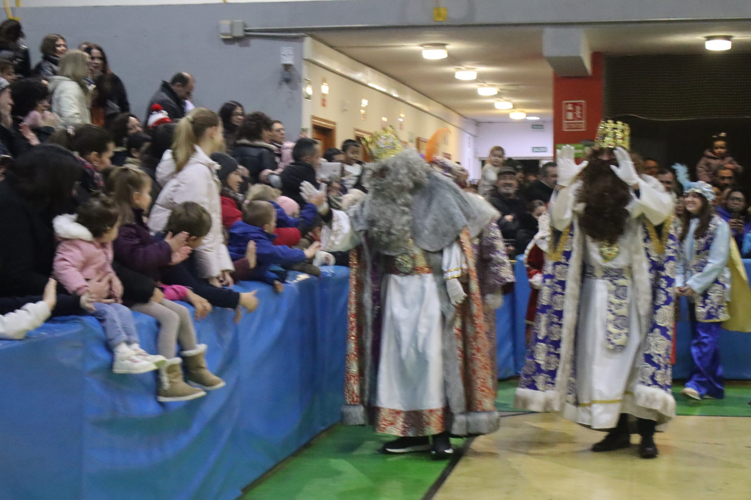En el pabellón, los Reyes Magos repartieron alegría, regalos y sonrisas, además de escuchar con atención las cartas y peticiones de los más pequeños