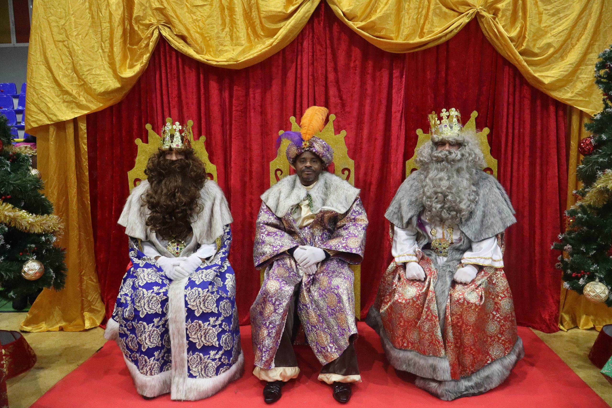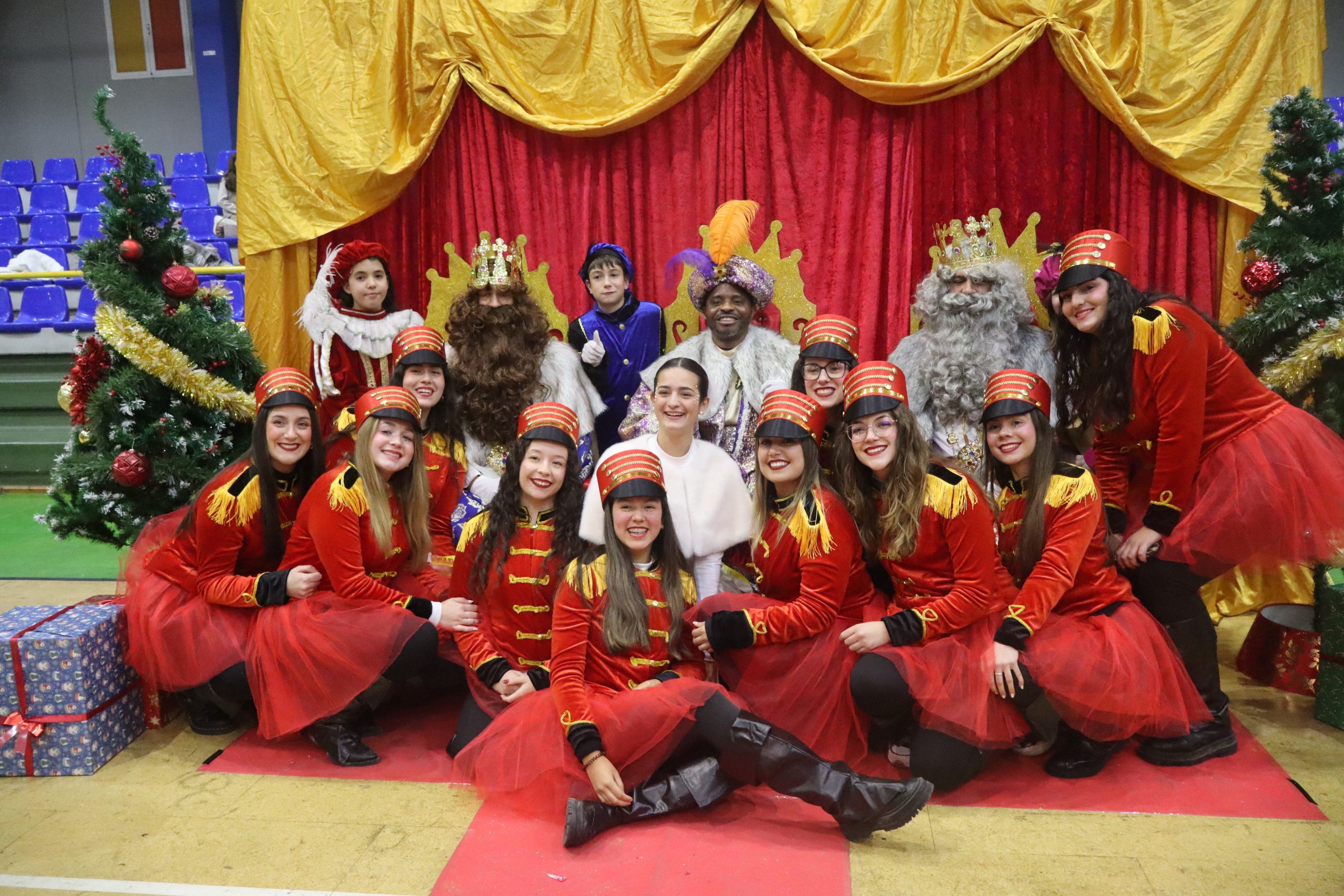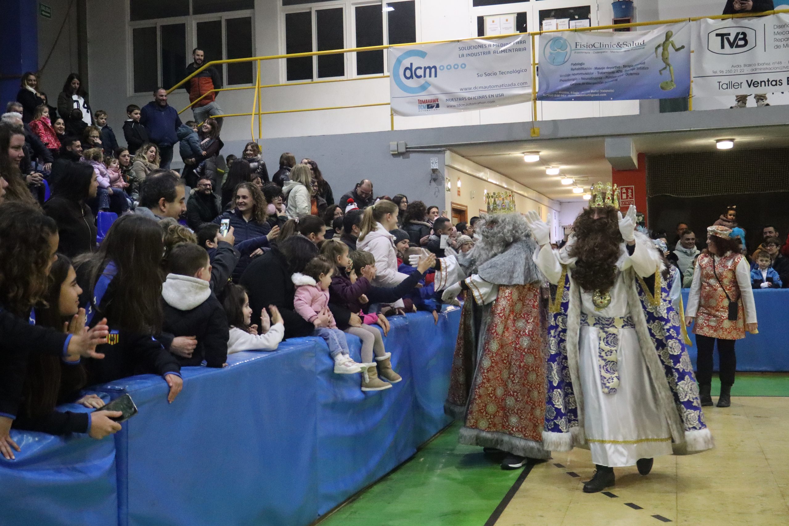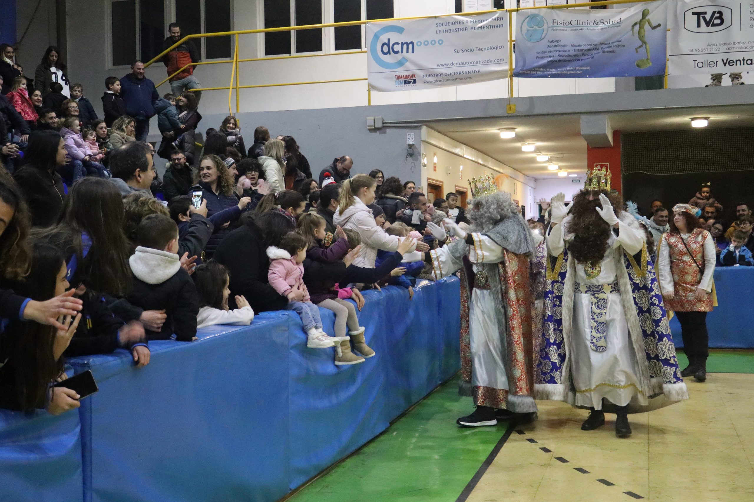 En el pabellón, los Reyes Magos repartieron alegría, regalos y sonrisas, además de escuchar con atención las cartas y peticiones de los más pequeños