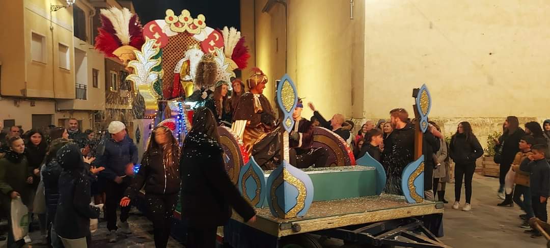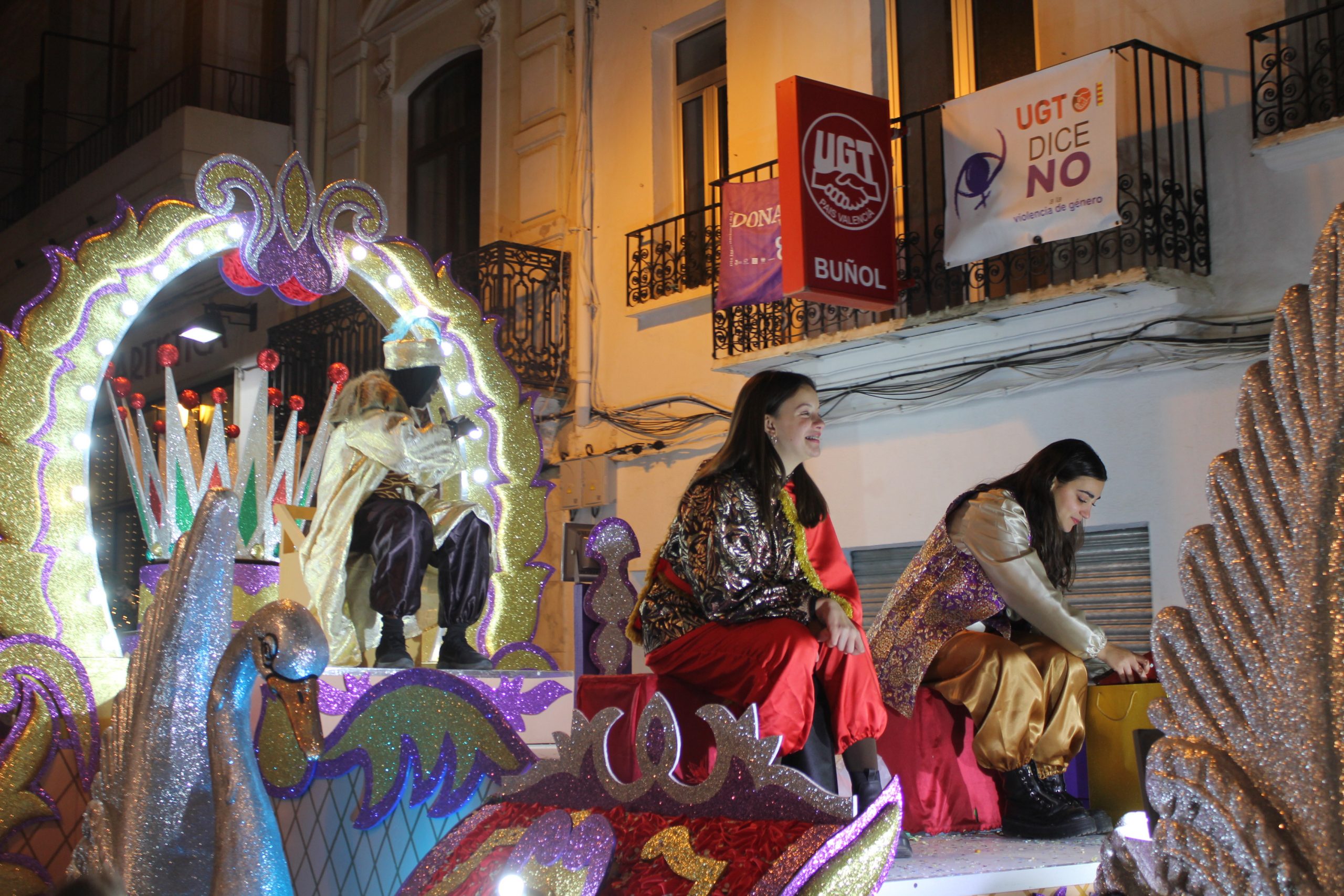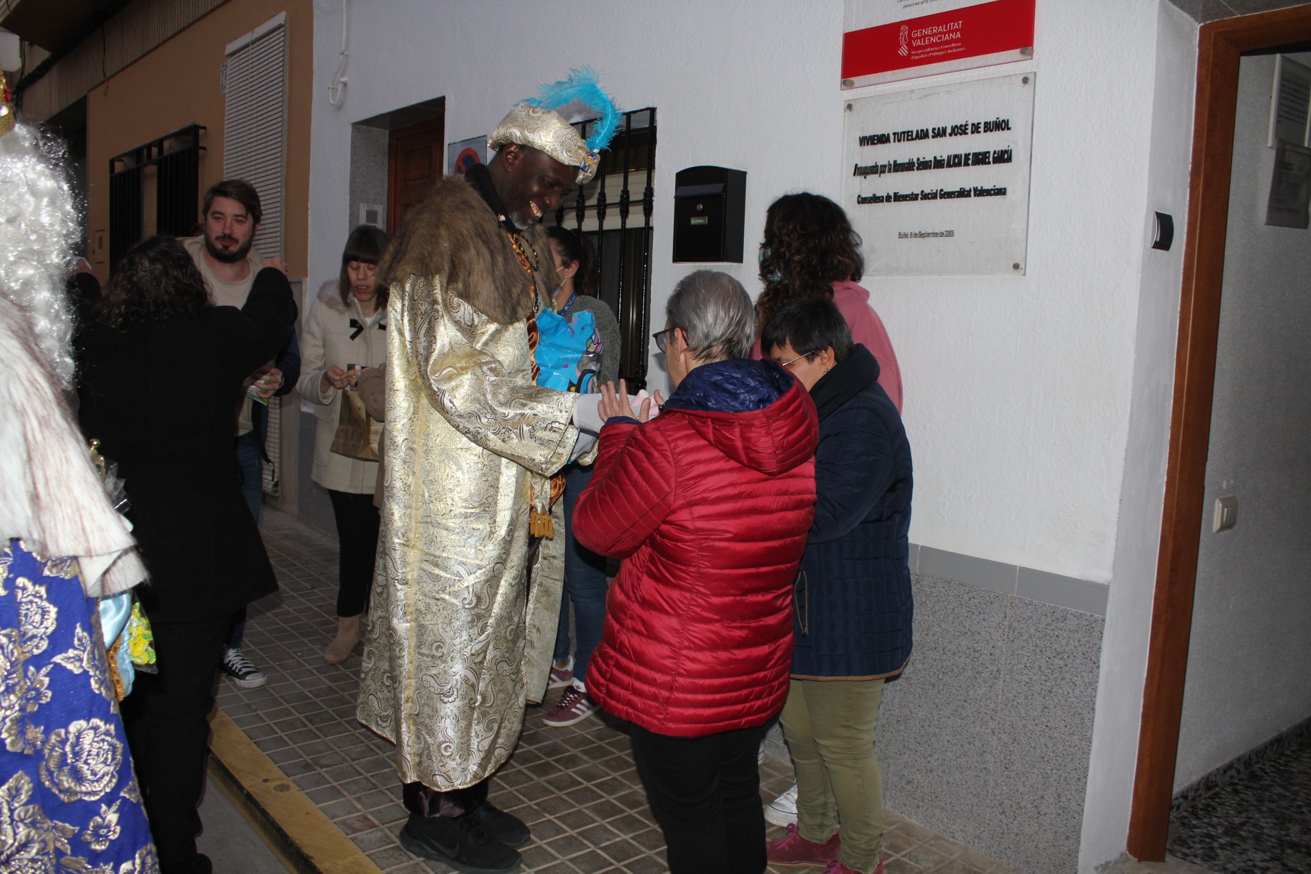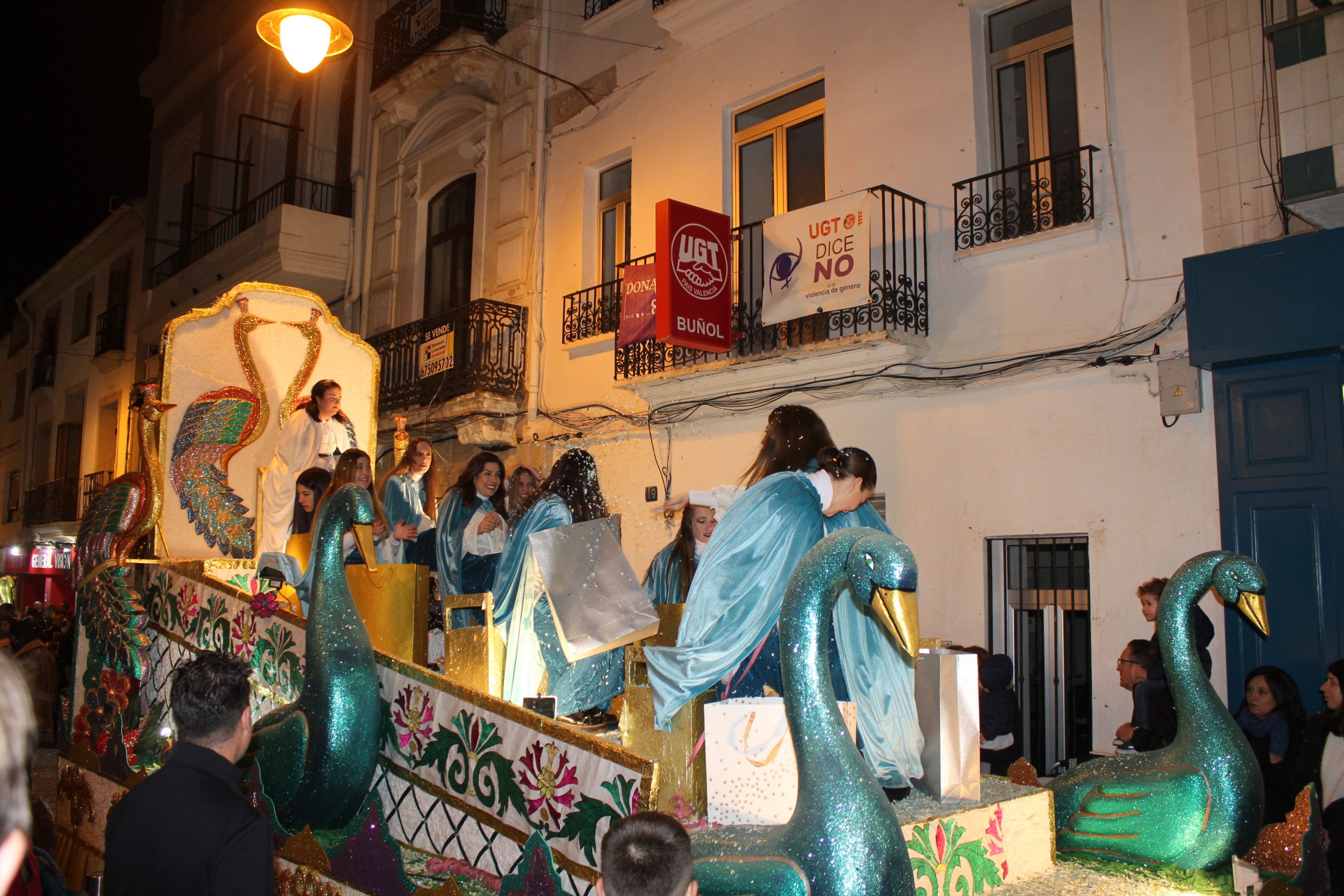 En Buñol, por ejemplo, sus Majestades llegaron en tren a la estación, donde fueron recibidos por sus pajes y por numerosos niños y niñas. Más tarde, se sumaron a la cabalgata que discurrió desde la Avenida de la Violeta hasta la Plaza del Pueblo. Allí Melchor, Gaspar y Baltasar recibieron a los innumerables pequeños que quisieron acercarse con sus familiares. Además, luego acudieron a varios domicilios a entregar regalos. Hay que destacar, la enorme colaboración de las entidades falleras en esta cabalgata.