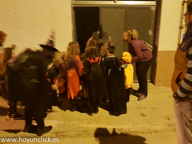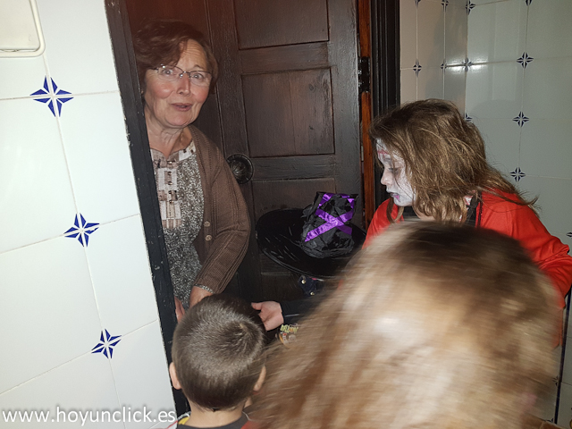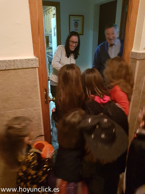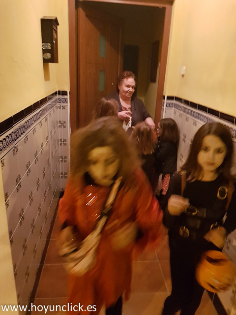 Aunque la fiesta estaba en la plaza de las Ventas con el Survival Infantil, muchos de los más pequeños, acudieron al barrio a llamar a las puertas, y allí estaban los vecinos preparados para llenar las calabazas de chuches.