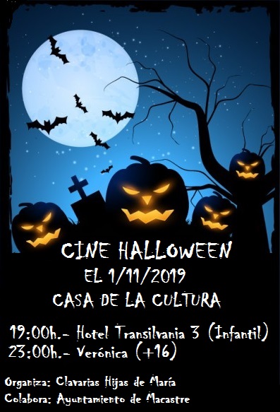 Por su parte, las Clavarias Hijas de María han preparado para mañana viernes una doble sesión de cine de terror también el la Casa de la Cultura. Se proyectará a las 19h la película «Hotel Transilvania 3» para los más pequeños, y a las 23h se podrá ver el film de terror «Verónica», para mayores de 16 años.