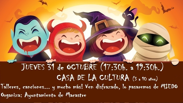 Redacción.- Macastre ha organizado diversas actividades para celebrar la fiesta de «Halloween». El Ayuntamiento por un lado organiza esta tarde, desde las 17:30 y las 19:30h, diversos talleres para niñas y niños de entre 3 a 10 años, que podrán ir disfrazados. Las actividades se desarrollarán en la Casa de la Cultura y la asistencia es totalmente gratuita.