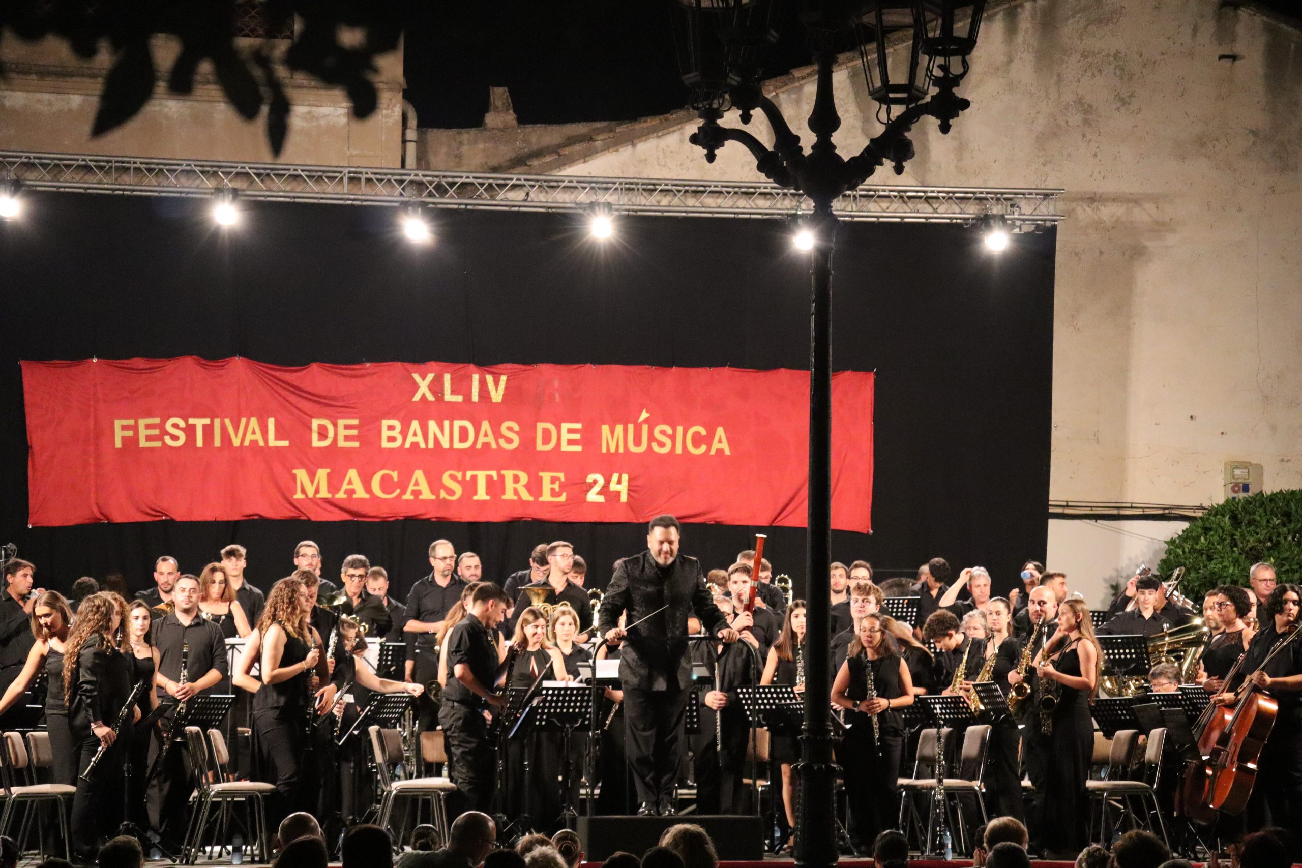 Redacción.- La Plaza de Toros de Macastre se volvió a vestir de gala este pasado viernes en su ya tradicional Festival de Bandas, que llegaba a su XLIV edición. En esta ocasión la banda invitada fue el Centro Instructivo Musical «Santa Cecilia» de Yátova, quien ofreció un gran espectáculo ante un público que llenó la Plaza de Toros y aplaudió a rabiar a los músicos del pueblo vecino. El festival se cerró con la actuación de la banda de la Sociedad Musical «Santa Cecilia» de Macastre, bajo la batuta de Francisco Carrascosa. La interpretación de las obras, hizo levantarse al respetable en varias ocasiones de sus asientos para vitorear y ovacionar a una banda entregada a su pueblo.