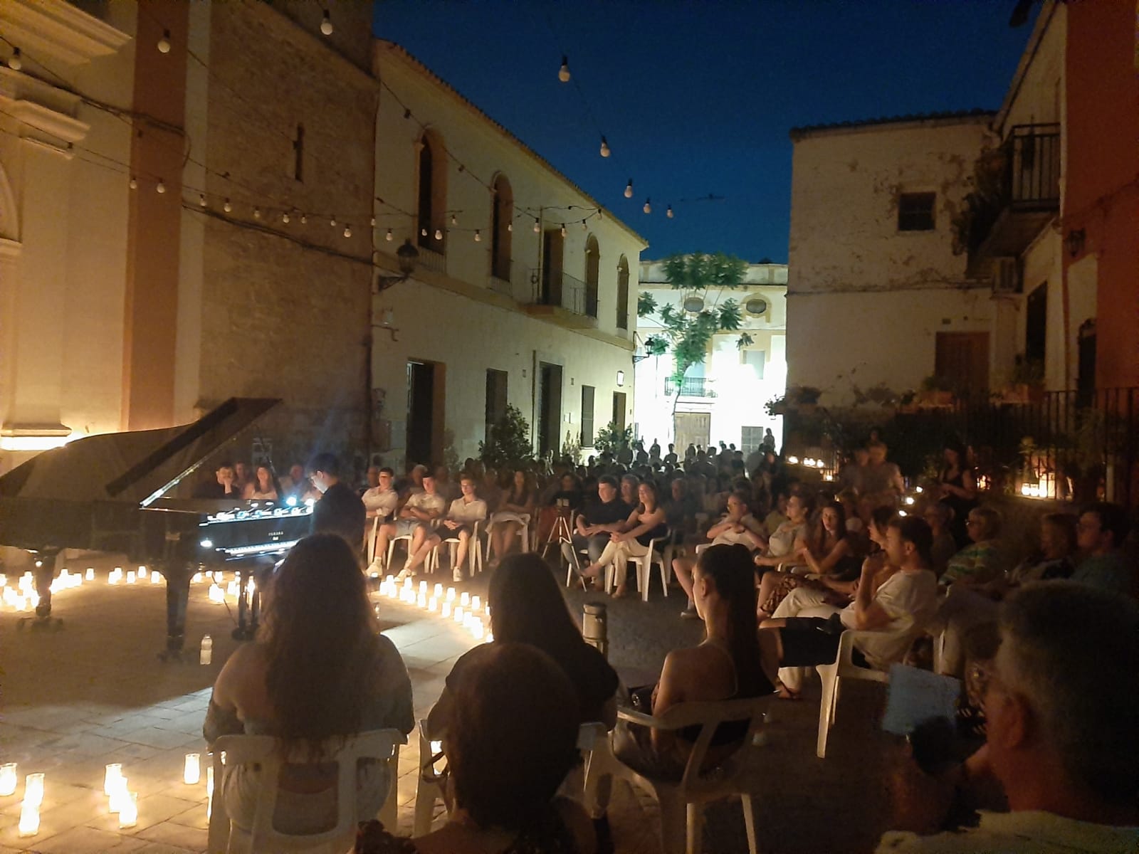 El domingo, la citada plaza volvió a vestirse de gala para acoger el esperado concierto del joven pianista macastrero Isaías Romero Martínez, quien refrendó una vez más su enorme calidad musical con un exigente programa interpretado de memoria a la luz de las velas. Llenazo durante este acto que finalizó en el interior de la iglesia debido a la amenaza climatológica. El público, que no quiso perderse esta cita y que aguantó hasta la última nota, agasajó al talentoso músico con una más que merecida y prolongada ovación.