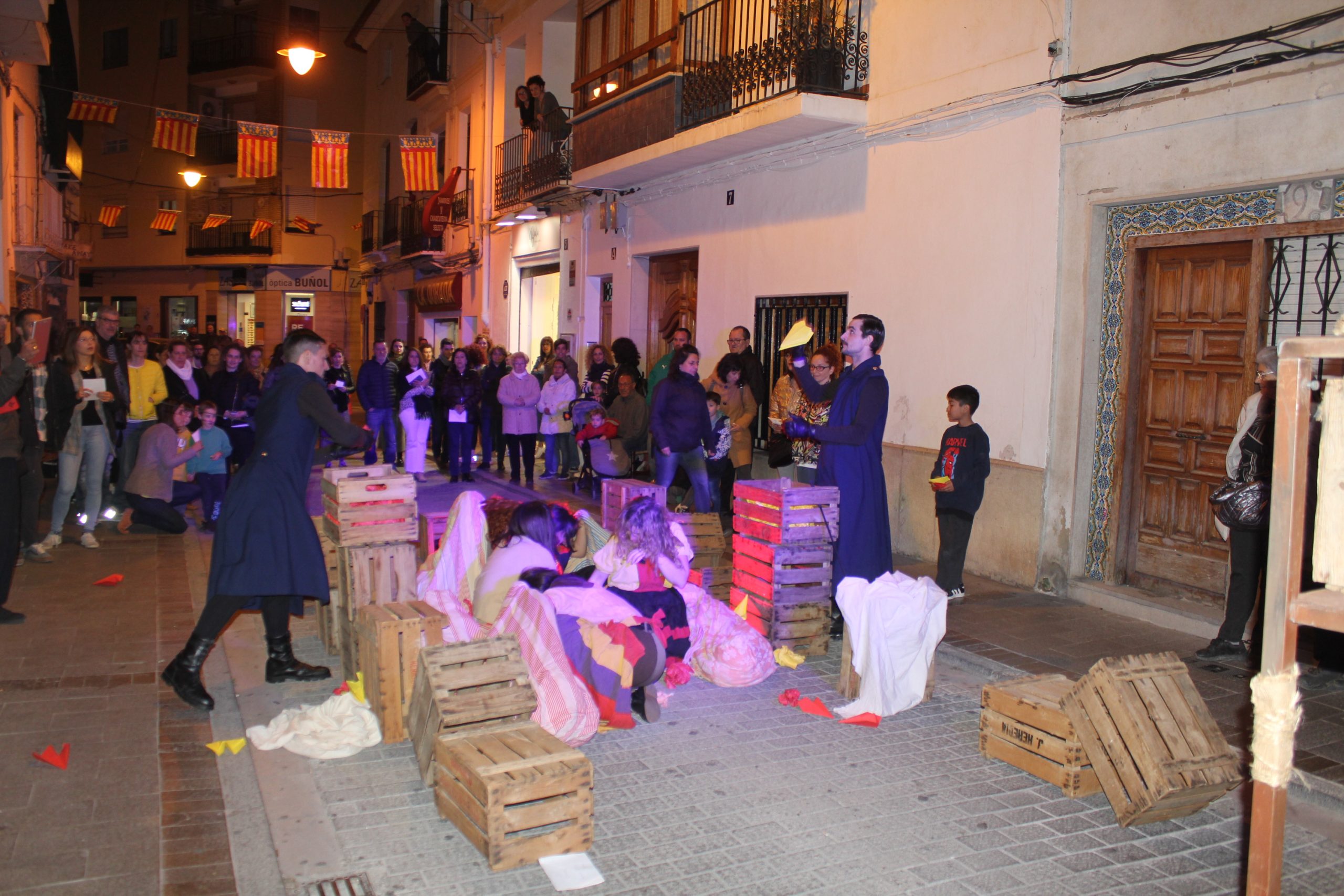 Redacción.- El teatro callejero se apoderó ayer de Buñol con la obra «Maletas de Tierra». Es un espectáculo incluido en los actos de la Semana de la Mujer organizados por la Concejalía de Igualdad del consistorio. La obra comenzó en la Plaza Layana y llegó hasta la Plaza del Pueblo. Hizo las delicias de todas las vecinas y vecinos que recorrían en ese momento el trayecto por el que transcurrió la representación.