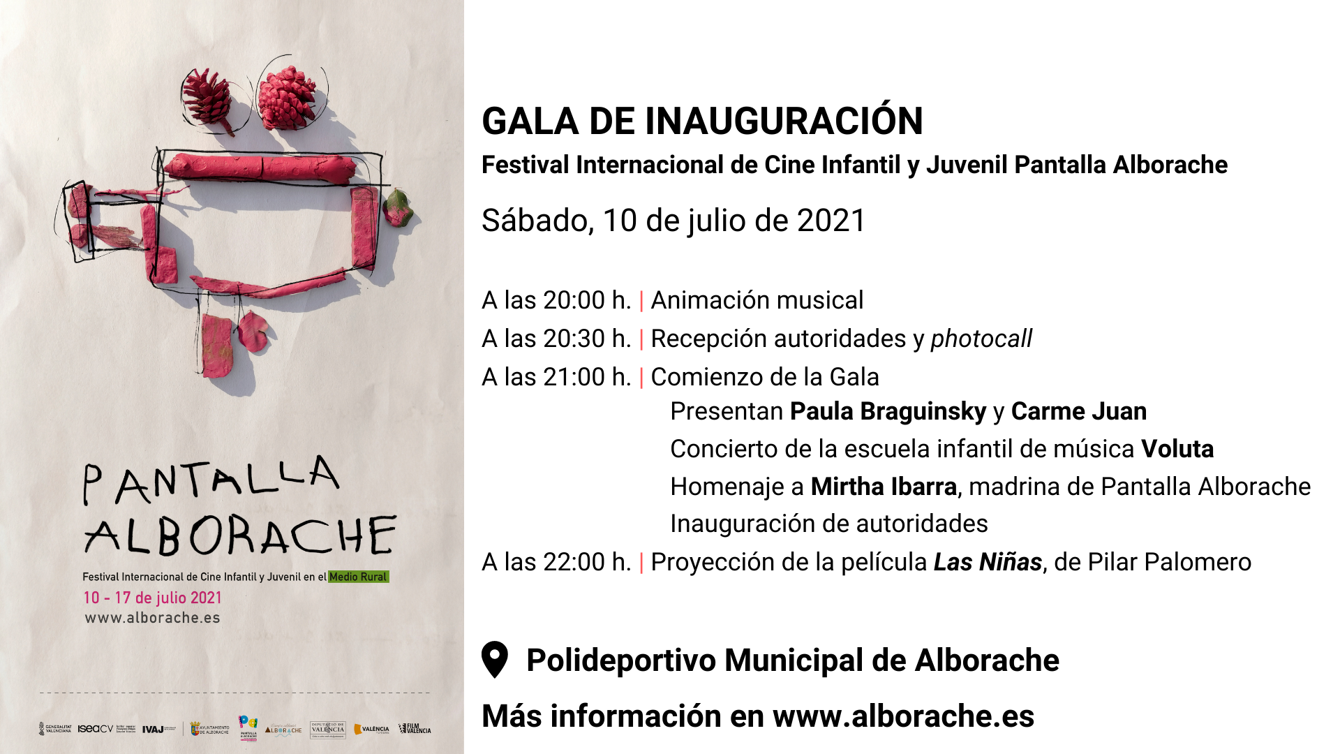 El evento de inauguración del Festival tendrá lugar en el Polideportivo Municipal y contará con la participación de la Alcaldesa de Alborache, Paqui Collado; la Delegada del Gobierno, Gloria Calero, y de la Secretaria autonómica de Modelo Económico y Financiación de la Conselleria de Hacienda y Modelo Económico, Mª José Mira. Además del concejal de Cultura, Vicente Darder; y el Director Artístico del Festival, Josep Arbiol, entre otras autoridades. También asistirá la Madrina del Festival y presidenta del Jurado, la gran artista cubana Mirtha Ibarra, co-protagonista de Fresa y Chocolate, película nominada al Oscar a mejor película de habla no inglesa en 1994. La presentación correrá a cargo de las actrices Paula Braguinsky y Carme Juan y con una interpretación de la Escuela Infantil de Música Voluta.