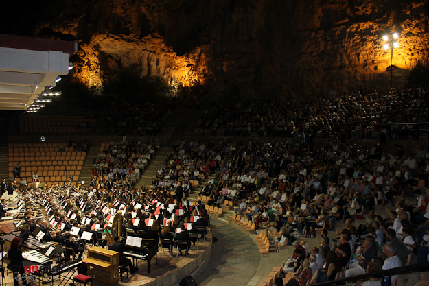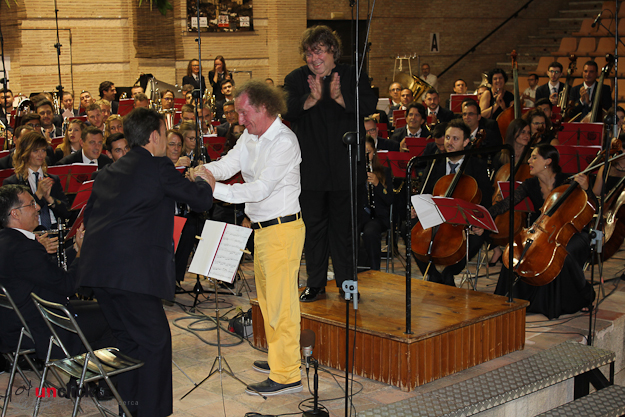 “Los Feos” y “El Litro” volvieron a ofrecer un espectáculo único e irrepetible. En esta 45ª edición abrió fuego “La Artística” bajo la batuta del ya veterano Henrie Adams. El holandés cumplía 30 años dirigiendo a “Los Feos” en el “Mano a Mano”. Para celebrar esa efeméride preparó un programa al nivel del concierto. Comenzó con “El Simposio”, una obra encargada por la sociedad musical al compositor Robert Groslot, que contó con cuatro movimientos. Esta obra fue un estreno mundial en exclusiva en el “Mano a Mano” y tras su interpretación el propio Groslot, presente en el auditorio, subió al escenario y recibió un caluroso aplauso del público. La grandiosidad de la interpretación de La Artística, fue premiada por el respetable, que se levantó de sus asientos para rendir una amplia ovación a Adams y a “Los Feos”. Continuó “La Artística” con “Traveler” de David Maslanka. Henrie Adams quiso rendir su particular homenaje al compositor estadounidense, desaparecido hace ya un año. La banda concluyó con “Music for Prague 1968” de Karel Husa, que también contó con cuatro tiempos. Tras el último acorde, el público reconoció el gran trabajo de director y músicos y lo premió con un unánime aplauso, que rompió el silencio reinante durante la actuación.
