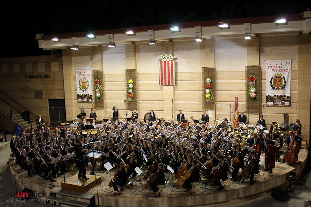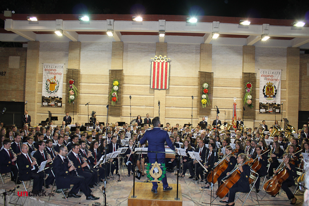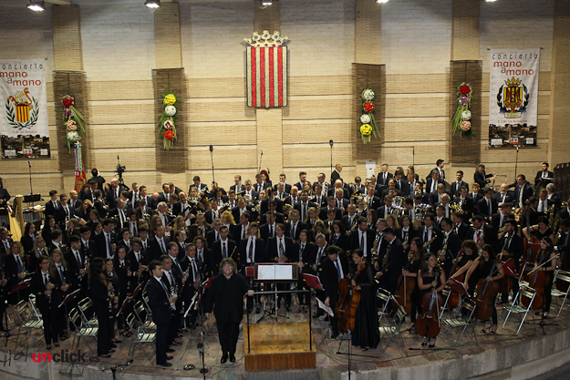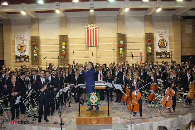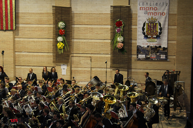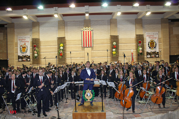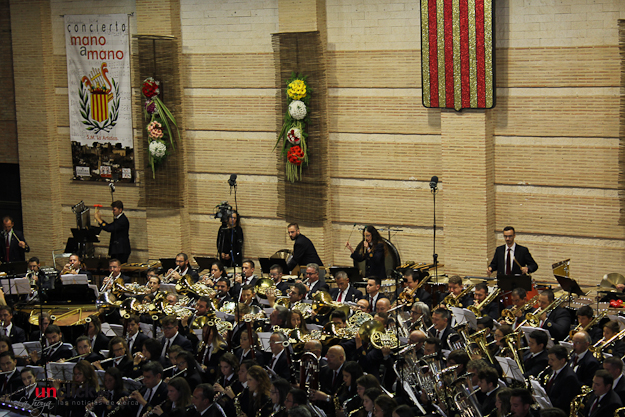 La 45ª edición del concierto “Mano a Mano” de Buñol volvió a reunir encima del escenario a casi 400 músicos integrantes de las dos sociedades: “La Artística” y “La Armónica”. El Auditorio Municipal a rebosar, el silencio y la magia que envuelve a este evento, lo convierten en un espectáculo único dentro del mundo bandístico en la comunidad.