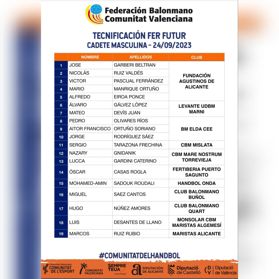 El proyecto Fer Futur de la Federación de Balonmano de la Comunidad Valenciana reúne a los jóvenes más destacados de los equipos de toda la región
