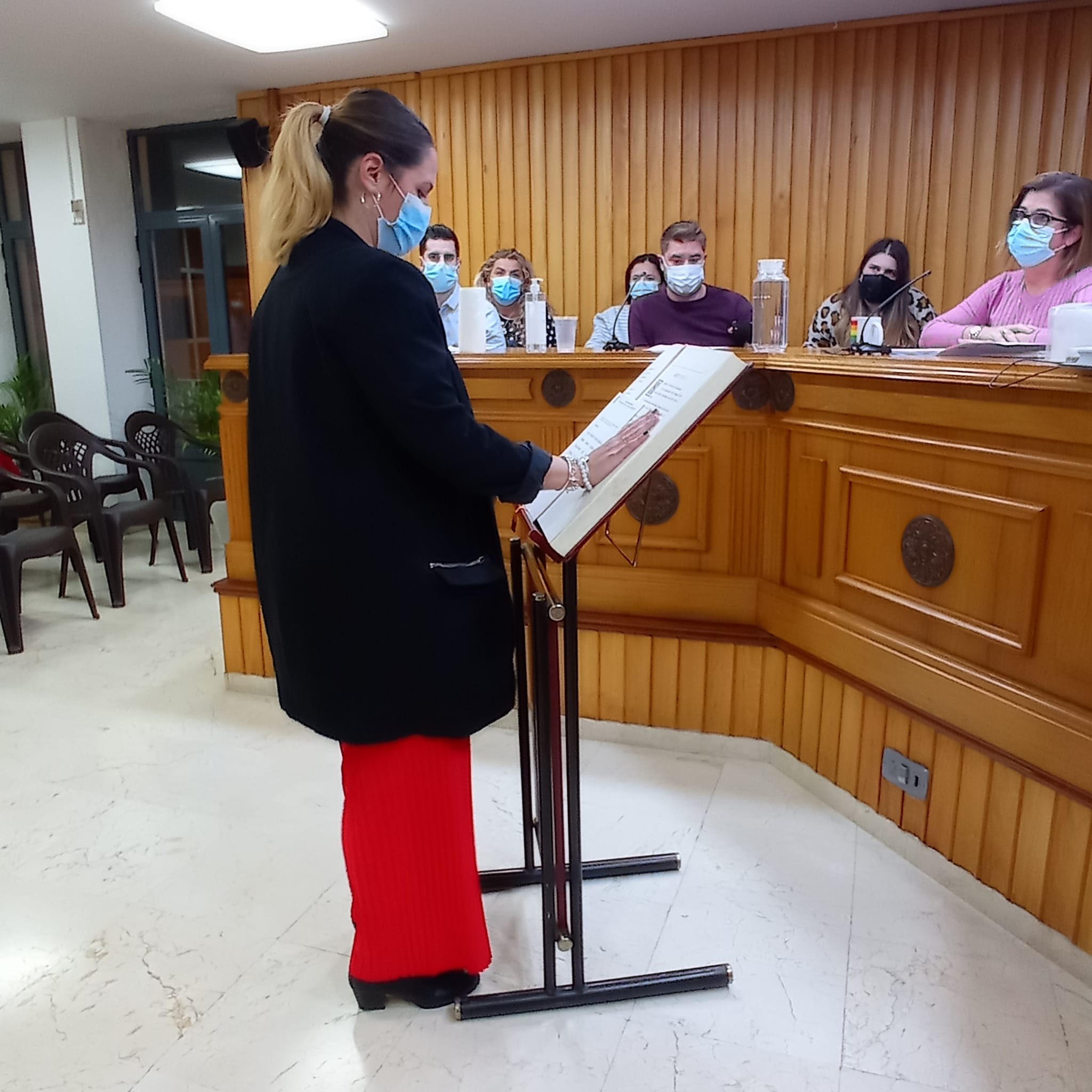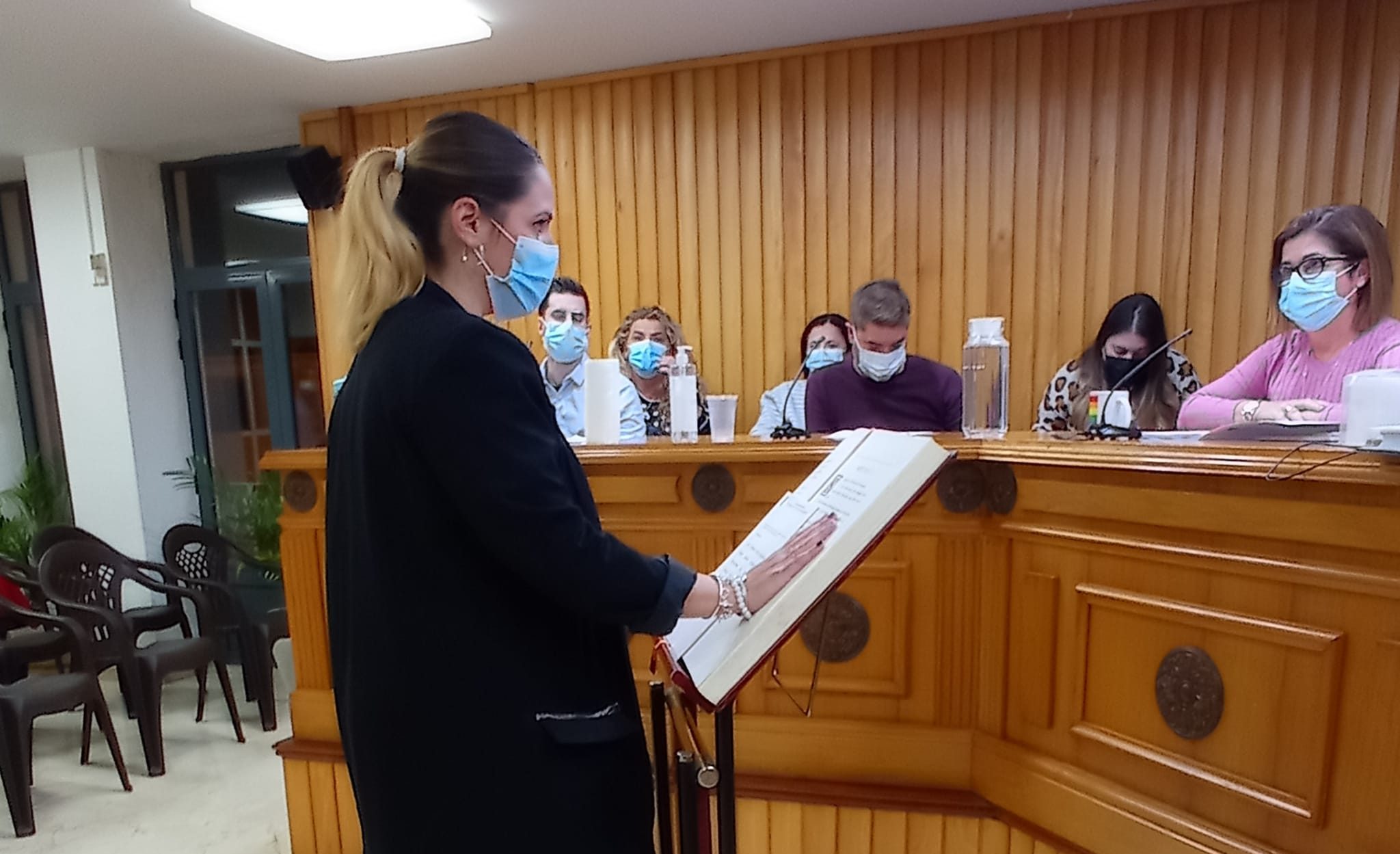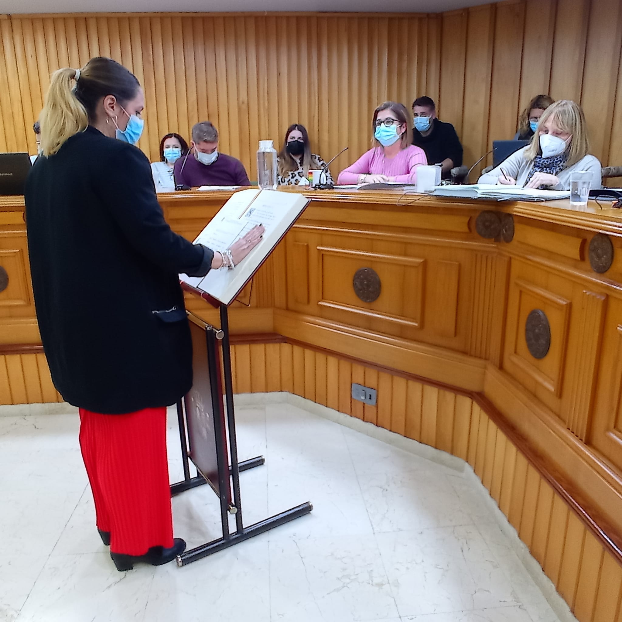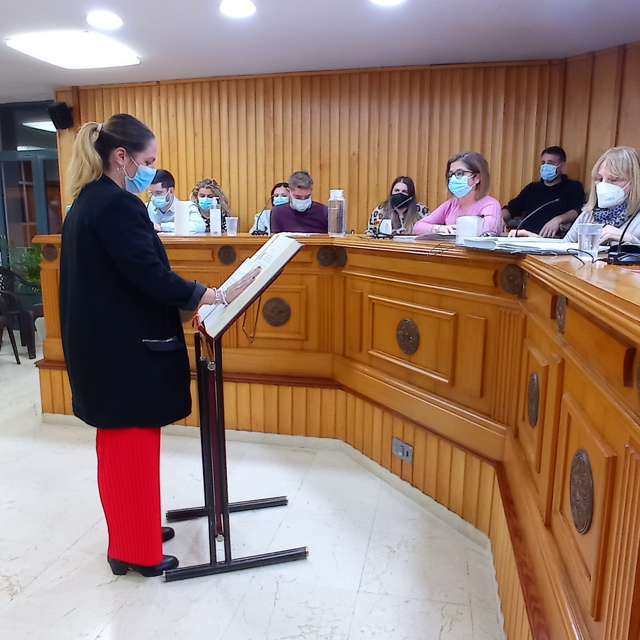 Tras la aprobación del acta anterior fue el momento de que tomara posesión la nueva concejal, que asumirá en el Gobierno el área de Cultura. Todos los grupos municipales le dieron la bienvenida y la enhorabuena.