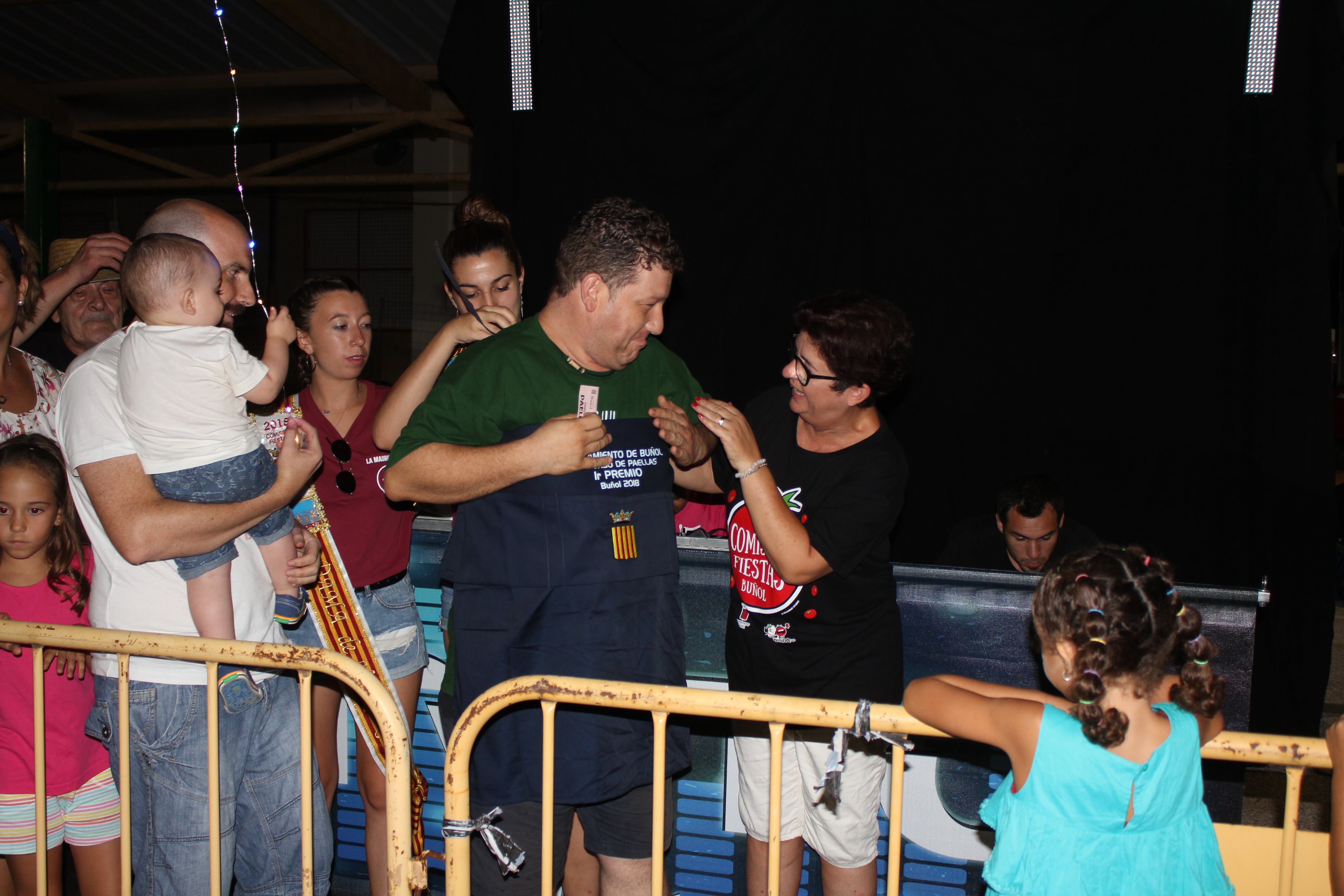 Una vez terminada la elaboración de la paella, se procedió a la entrega de premios tanto de las paellas, como del concurso de camisetas a cargo de la Reina de la Feria y Fiestas, Pepa Sierra y de la Alcaldesa de Buñol, Juncal Carrascosa. Y esto dio paso a una gran discomóvil que se alargó hasta altas horas de la madrugada.