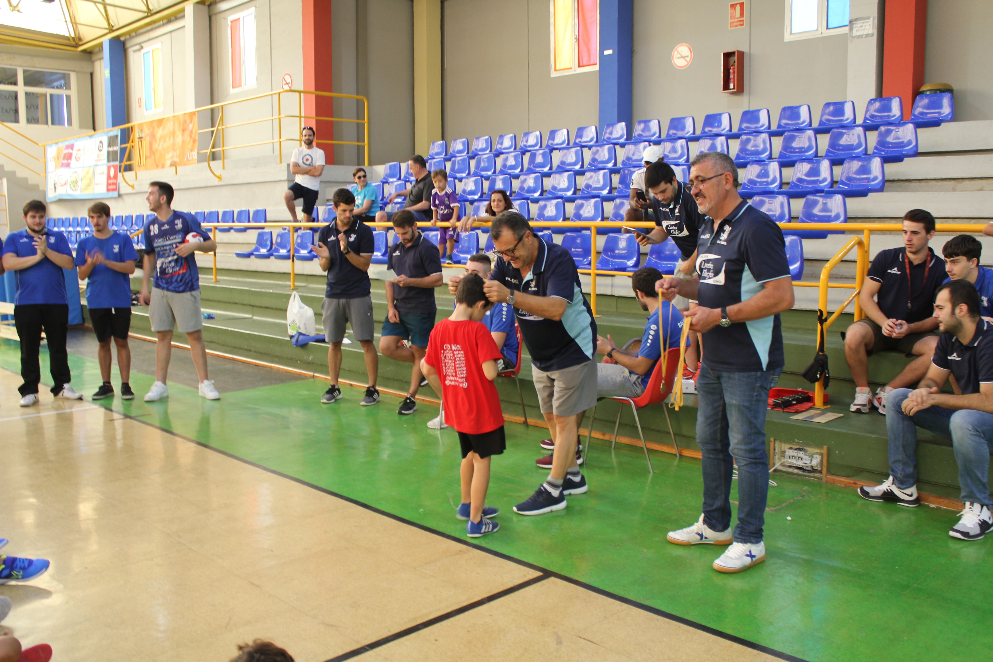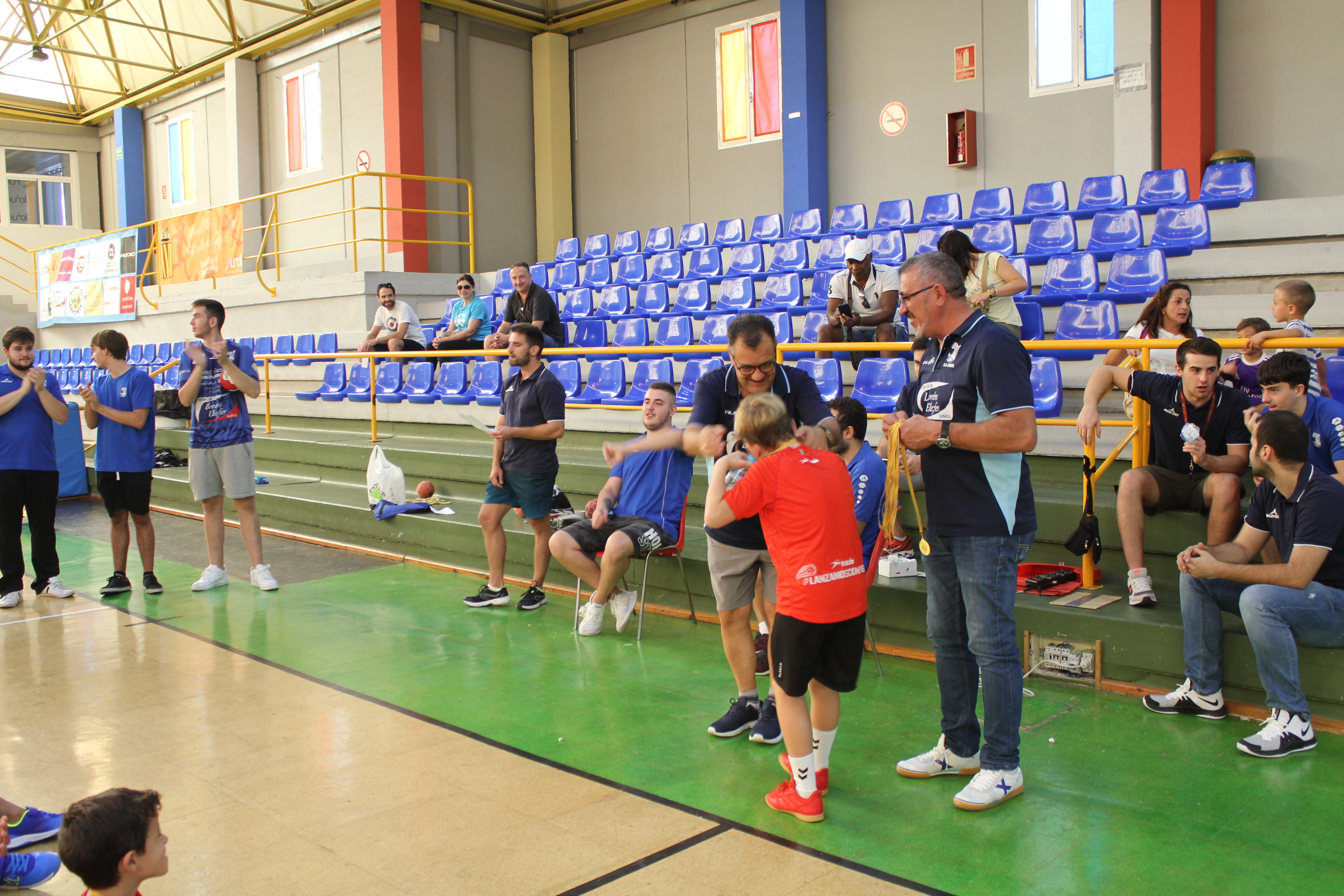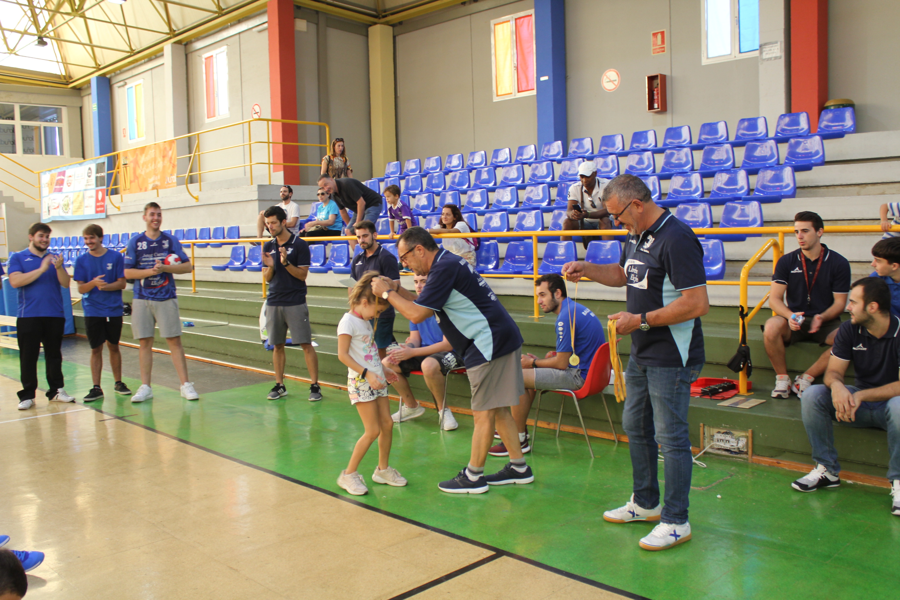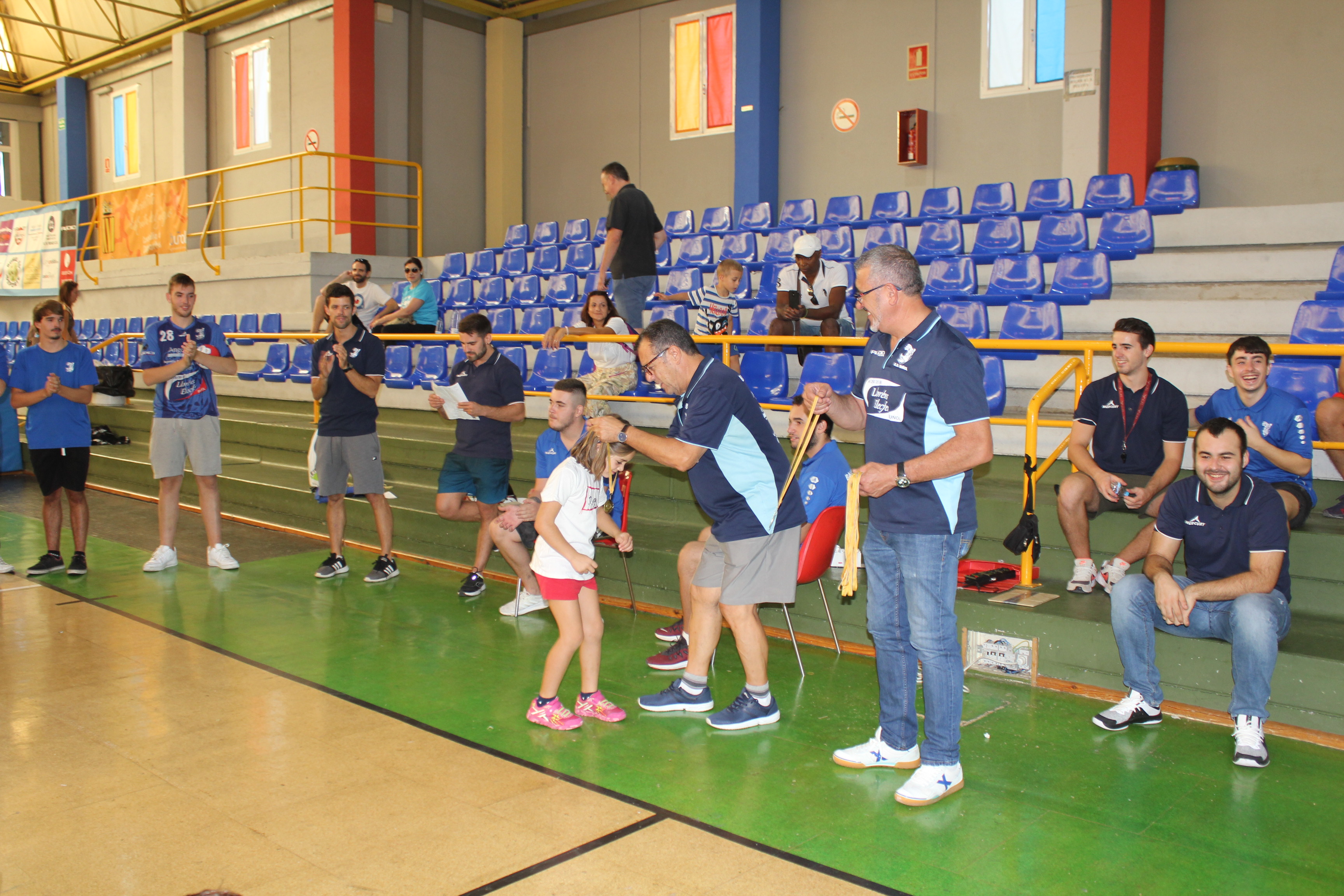 Al término del campeonato, el presidente del Club, Pedro Vallés, junto a Venancio Galarza, miembro de la Junta Directiva, les hicieron entrega de las medallas a todos los participantes de esta nueva edición del Mini-Handball.